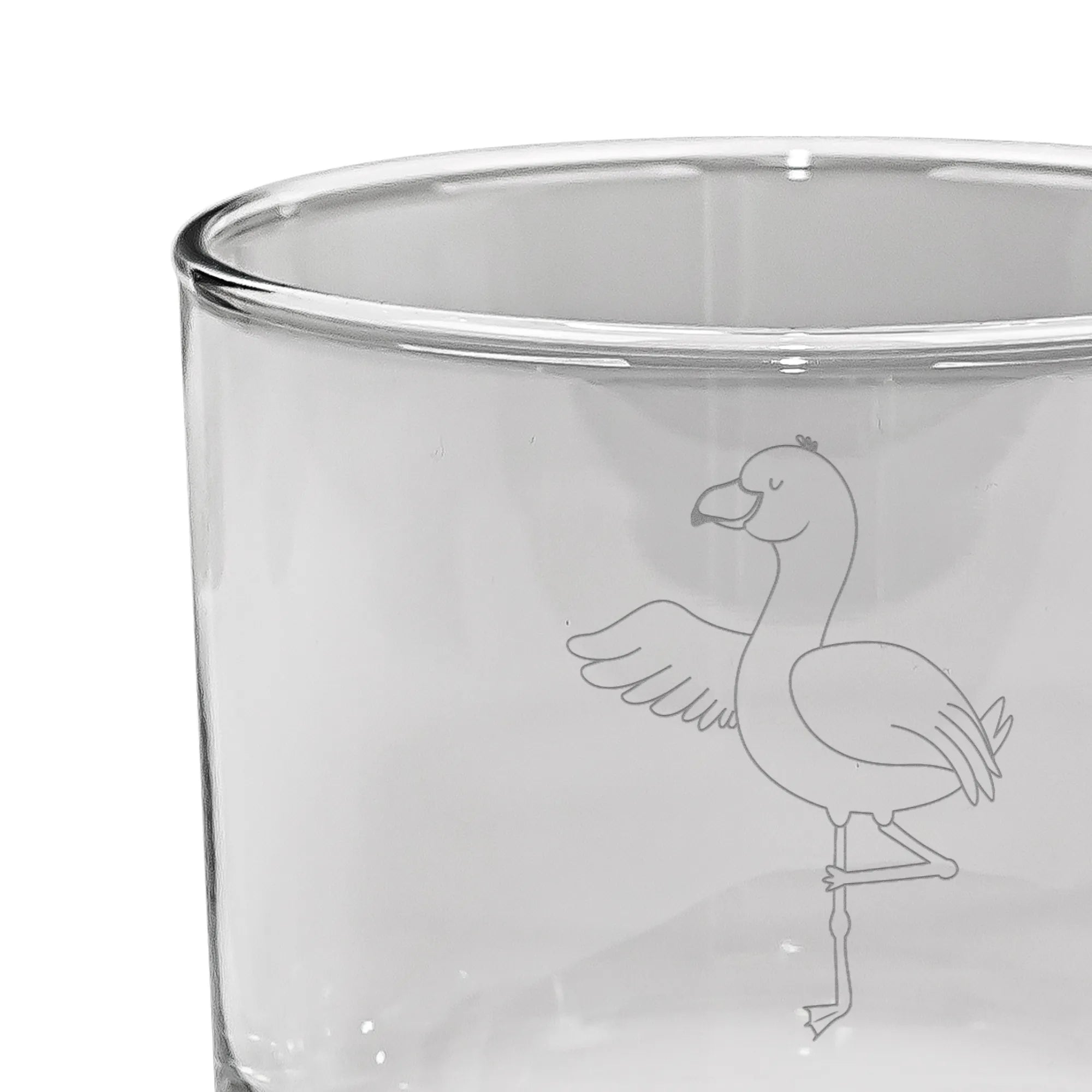 Durch die hochwertige Lasergravur erhält das Glas eine matte Oberfläche, die es zu einem echten Hingucker macht. Der fröhliche Flamingo in Yoga-Pose symbolisiert Leichtigkeit und Entspannung – perfekt für all jene, die nach dem Alltag abschalten möchten.