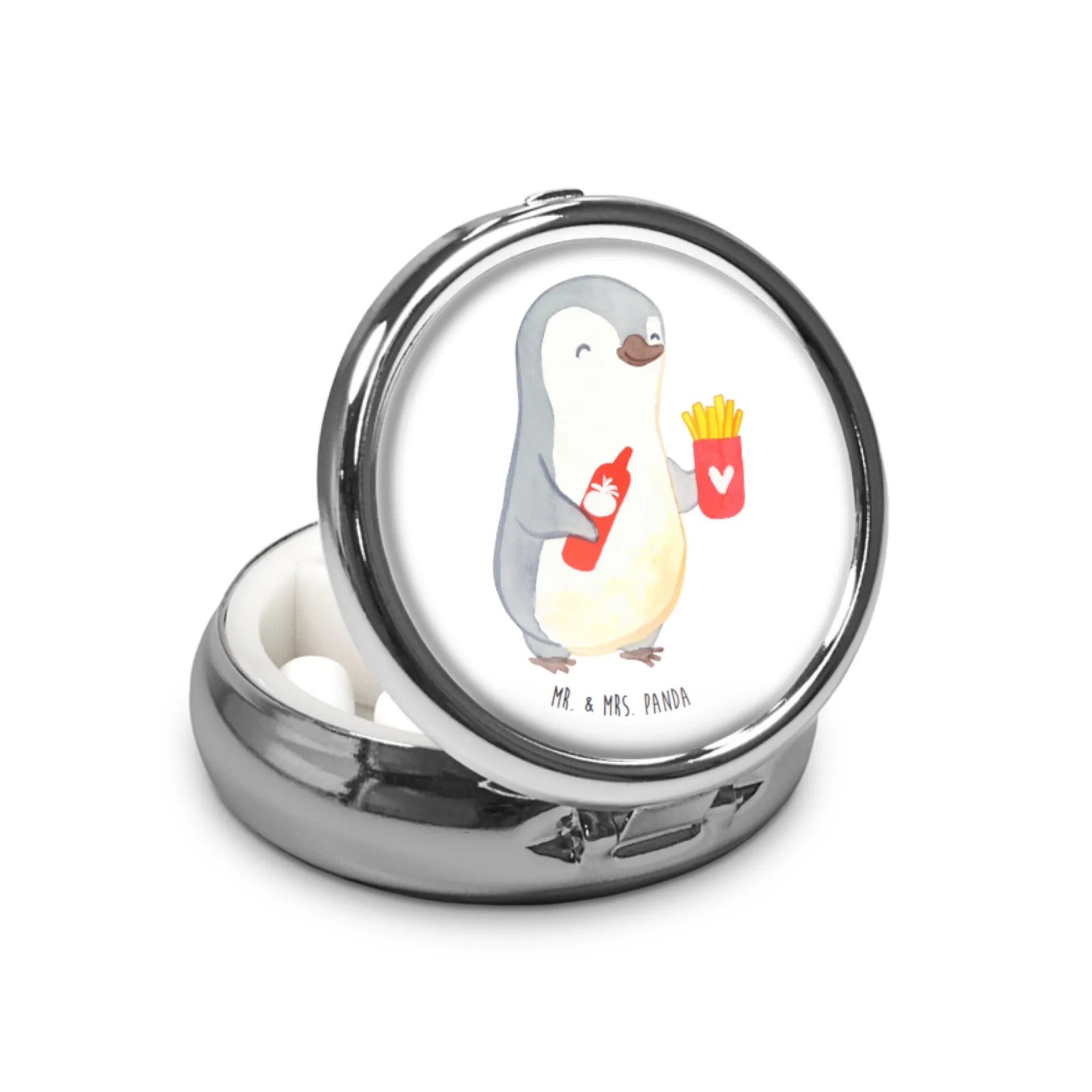 Mit der bezaubernden Pillendose von Mr. & Mrs. Panda bringst du Ordnung in dein Leben! Diese Dose mit einem Durchmesser von 50 mm und einer Höhe von 17 mm ist aus hochwertigem, verchromtem Metall gefertigt und wird schnell zu deinem praktischen Begleiter. Sie öffnet sich durch einen einfachen Knopfdruck und ermöglicht dir schnellen Zugriff auf deine Medikamente. Innen überzeugt sie mit einer cleveren 3er Aufteilung, damit du immer den Überblick behältst. Die schönen Motive und die brillanten Farben machen die Pillendose zum echten Highlight in deiner Tasche. Egal ob für den täglichen Gebrauch oder für unterwegs – diese Pillendose ist ideal für alle, die Wert auf Stil und Funktion legen. Sauber, praktisch und attraktiv – so macht die Medikamentenaufbewahrung Freude!