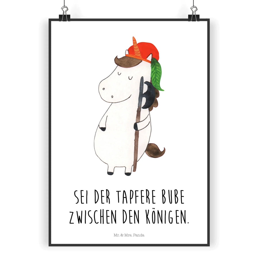 Einhörner Motiv – Einhorn Bube mit Helm & Stock von Mr. & Mrs. Panda, ideal als Geschenk