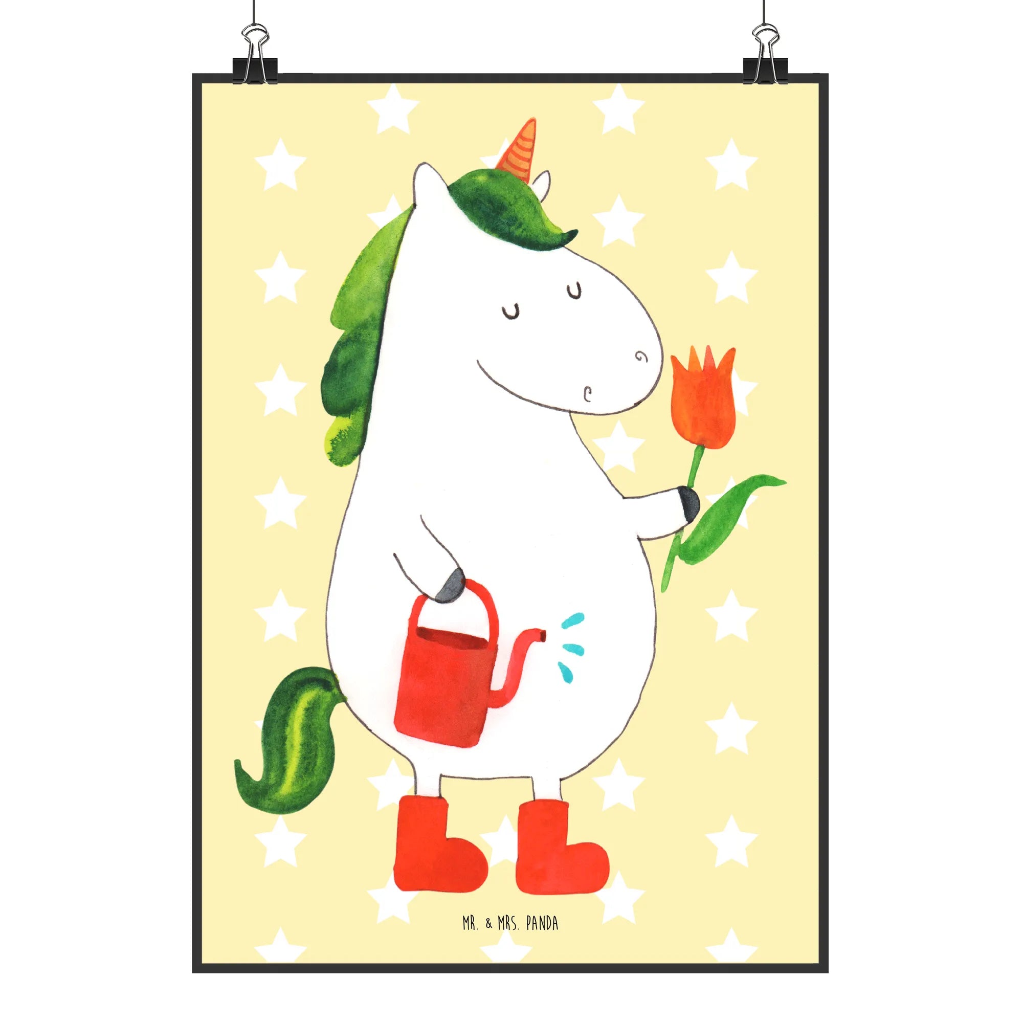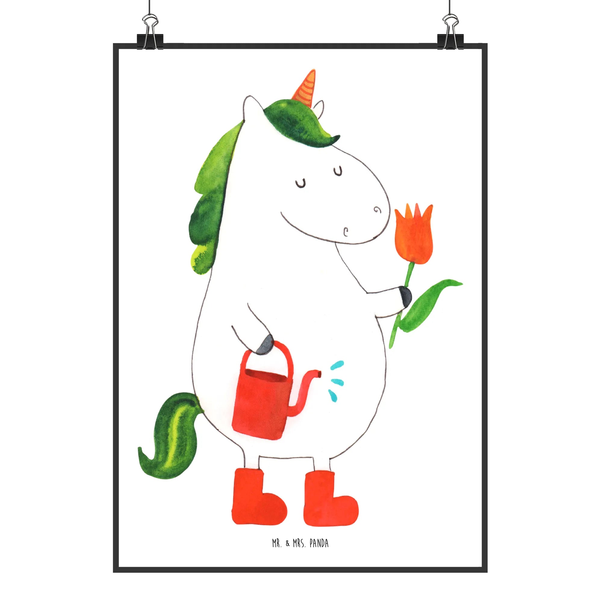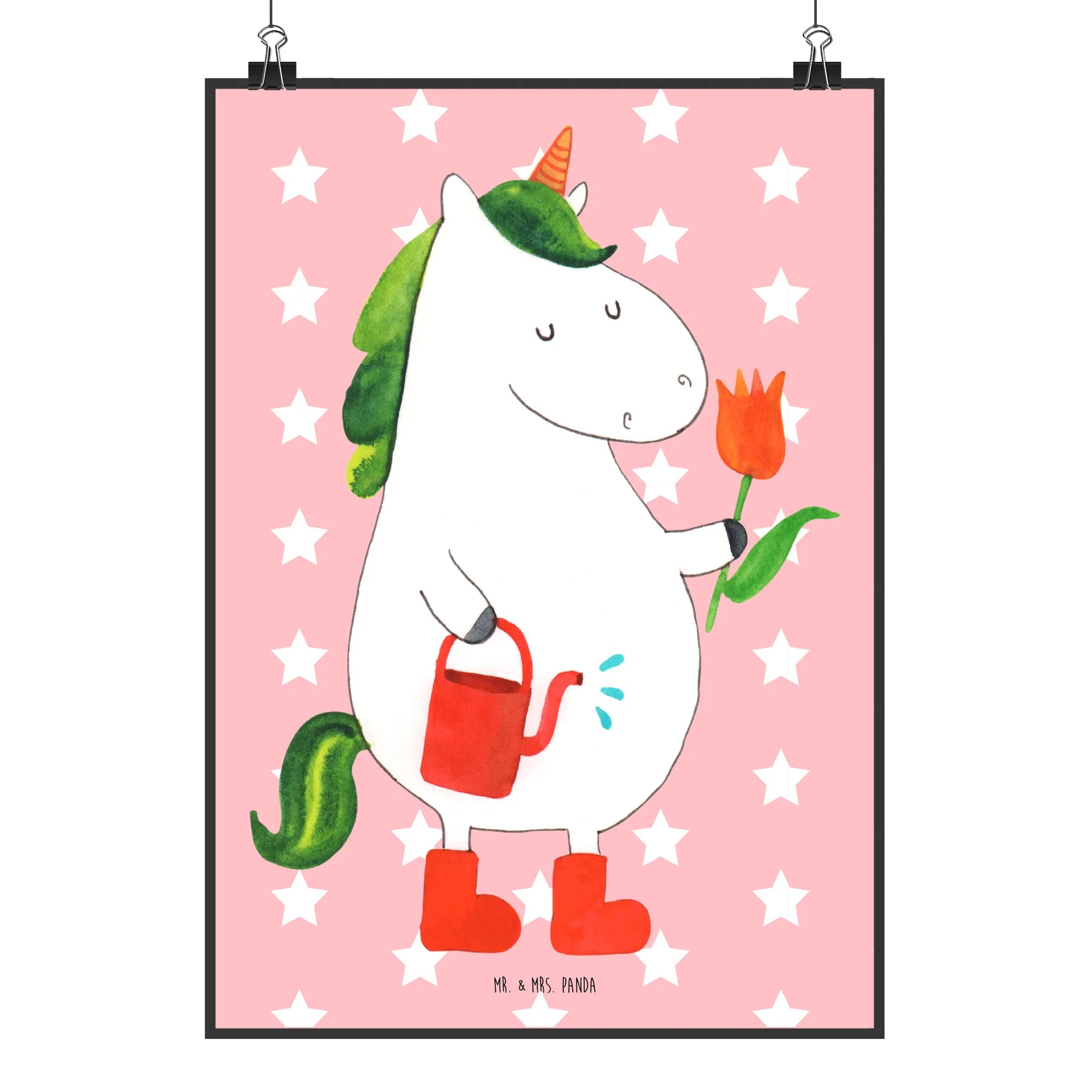 Entdecke das perfekte Geschenk für Einhornliebhaber: unser handgezeichnetes Poster "Einhorn Gärtner" aus der zauberhaften Einhorn-Kollektion von Mr. & Mrs. Panda!