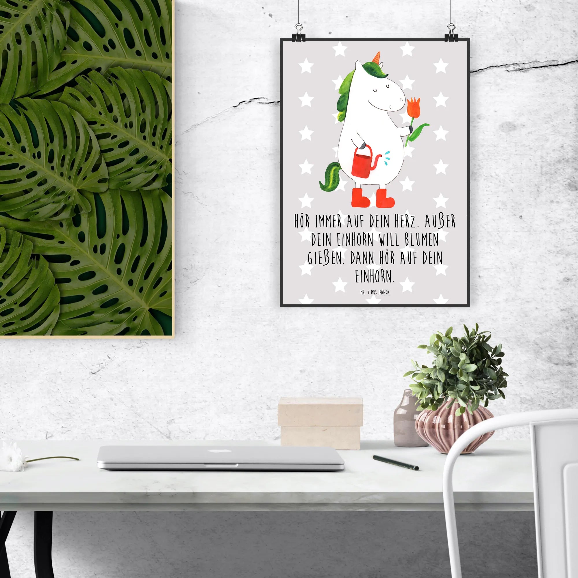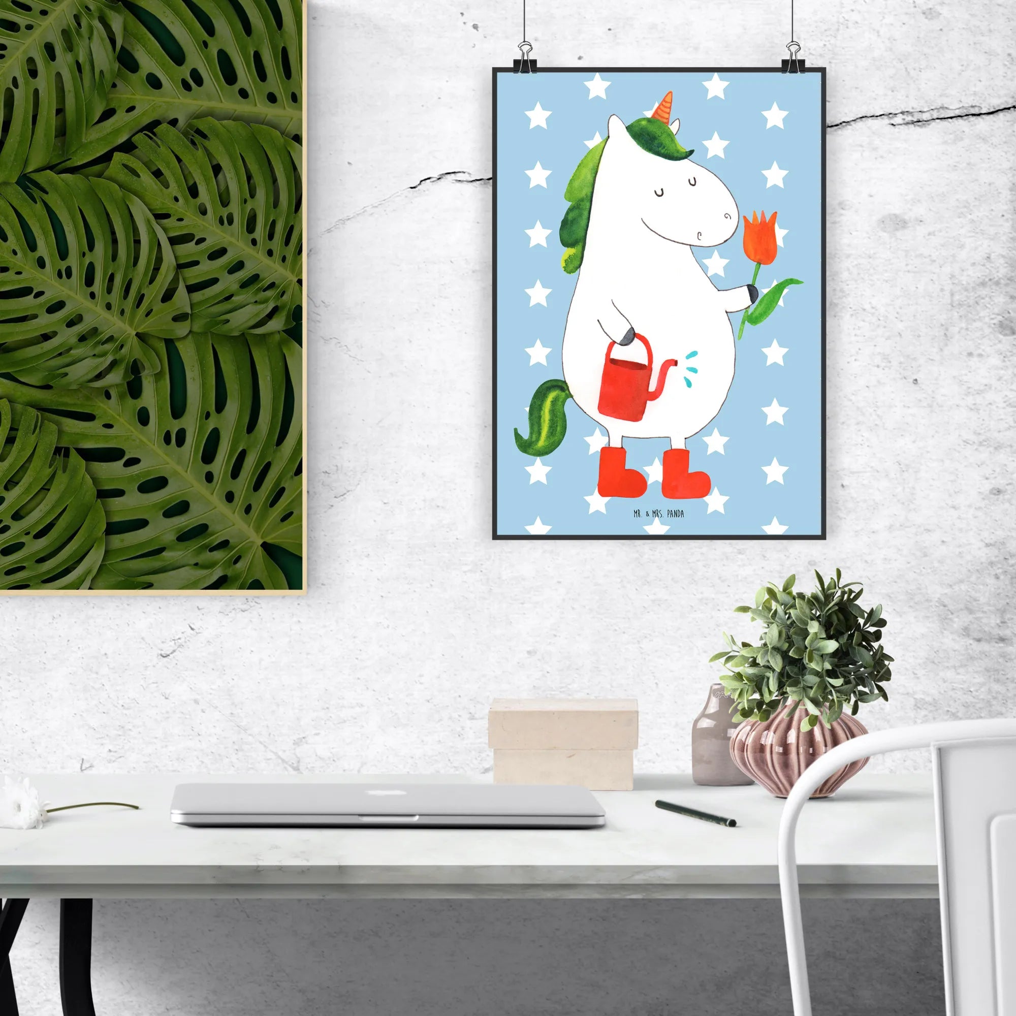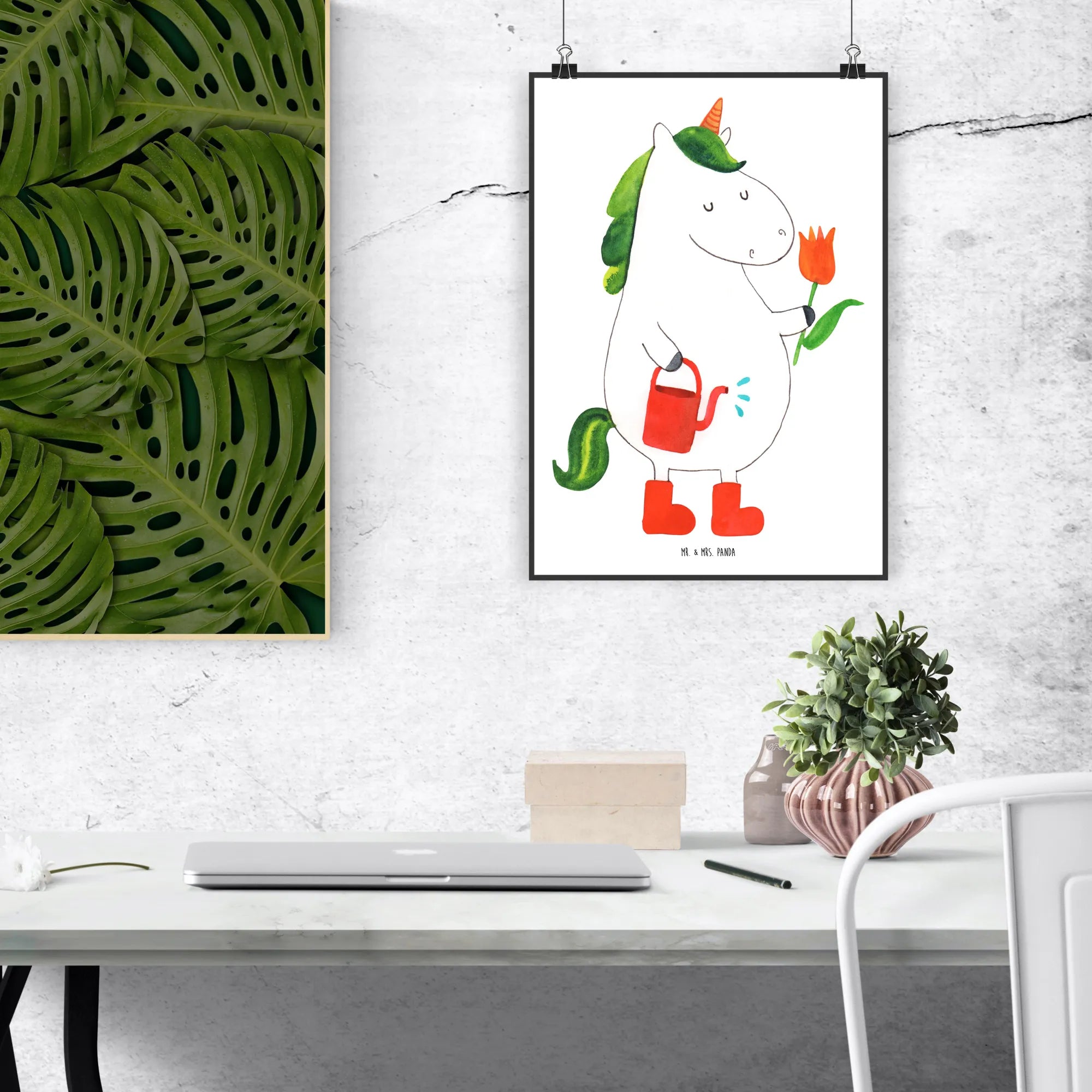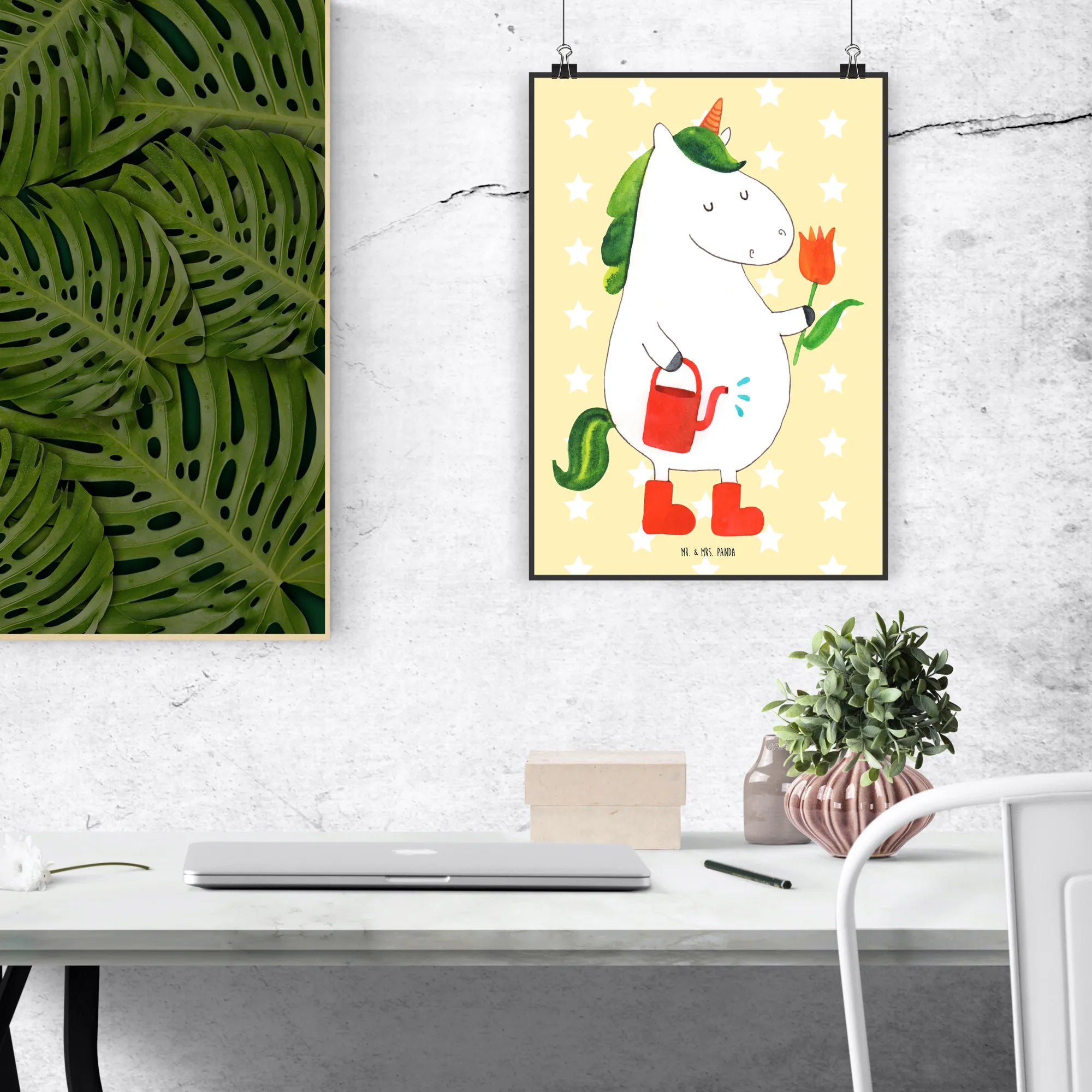 Entdecke das perfekte Geschenk für Einhornliebhaber: unser handgezeichnetes Poster "Einhorn Gärtner" aus der zauberhaften Einhorn-Kollektion von Mr. & Mrs. Panda!