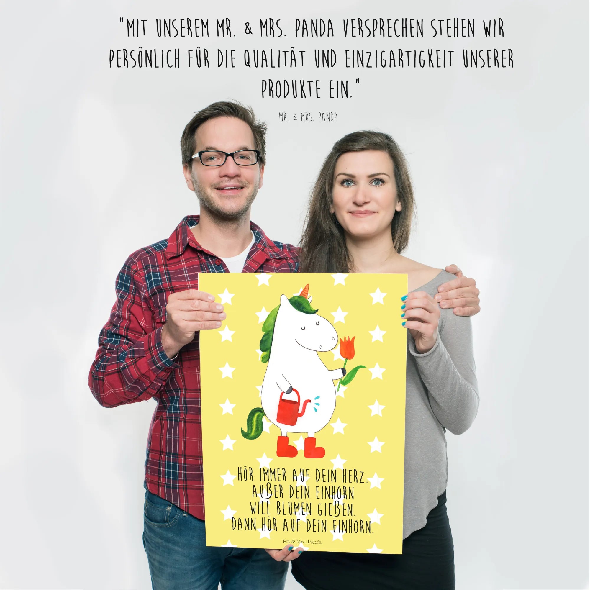 Entdecke das zauberhafte Mr. & Mrs. Panda Poster "Einhorn Gärtner" aus der beliebten Einhorn - Kollektion! Dieses wunderschöne und edle Poster ist nicht nur ein echter Blickfang, sondern auch das perfekte Geschenk für alle Einhornliebhaber. Mit seinem handgezeichneten Motiv, das ein niedliches Einhorn zeigt, das voller Lebensfreude die Blumen gießt, bringt es ein Stück Magie in jedes Zuhause. Die liebevollen Farben und der brillante Druck machen es zu einem Highlight in jedem Kinderzimmer, Klassenzimmer oder Schlafzimmer.