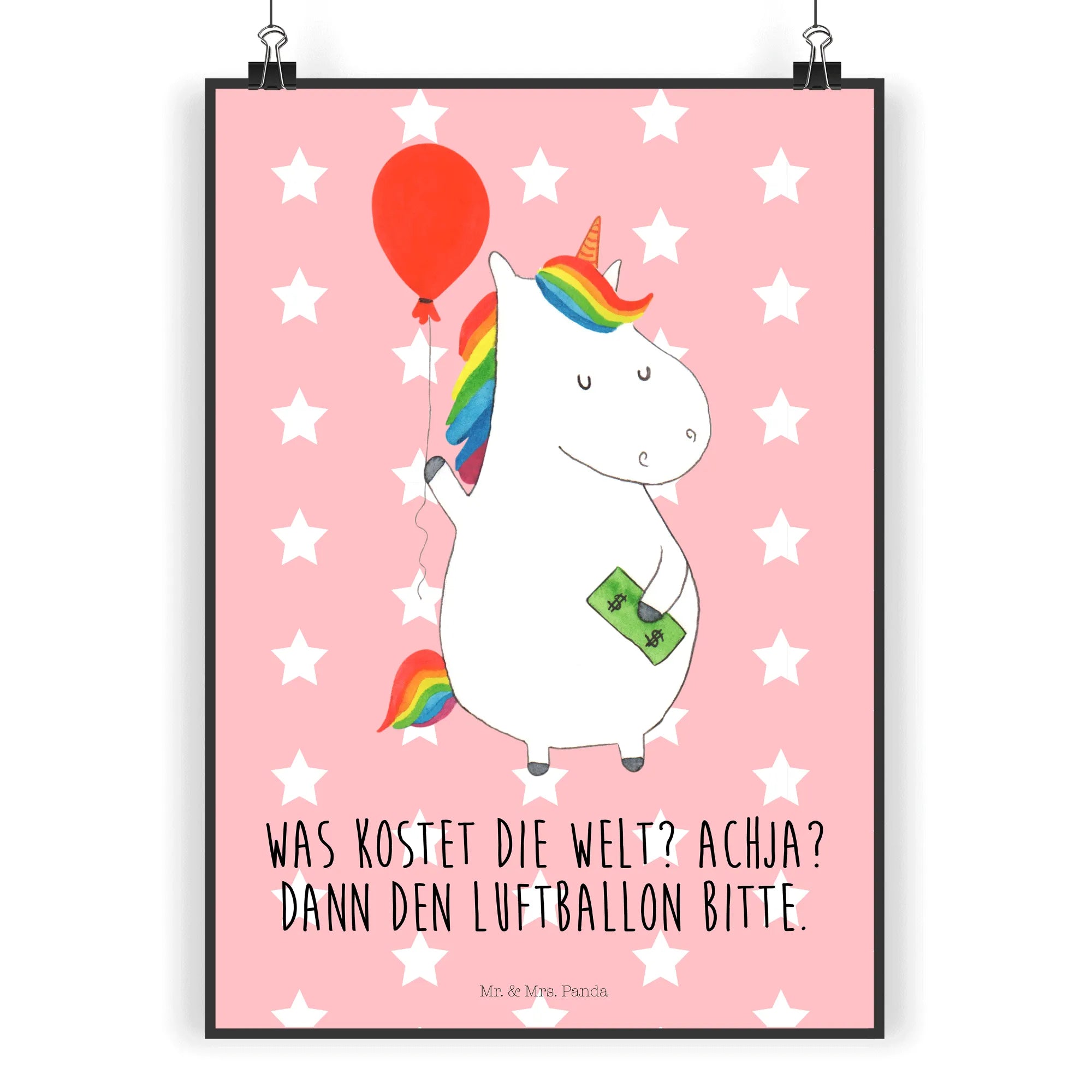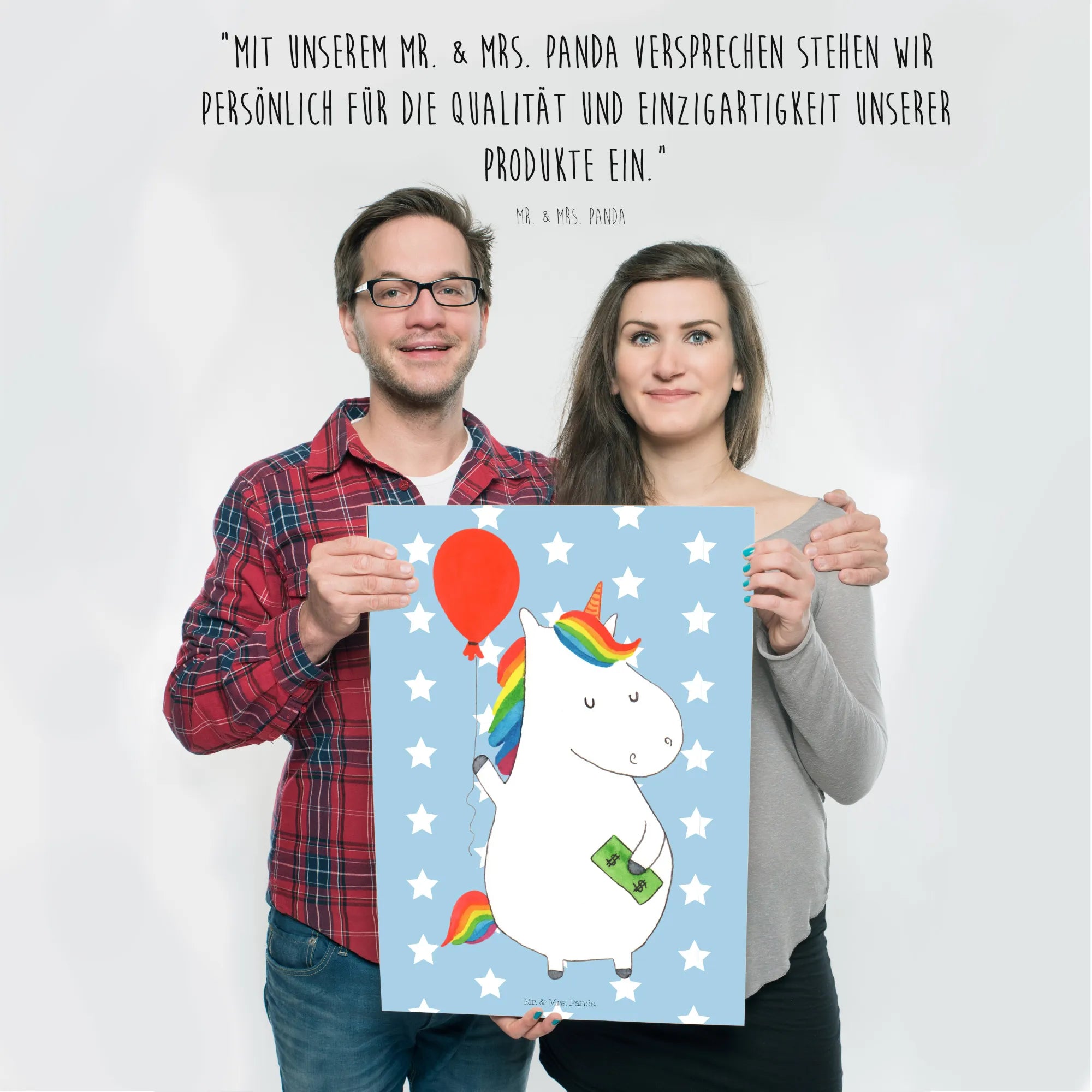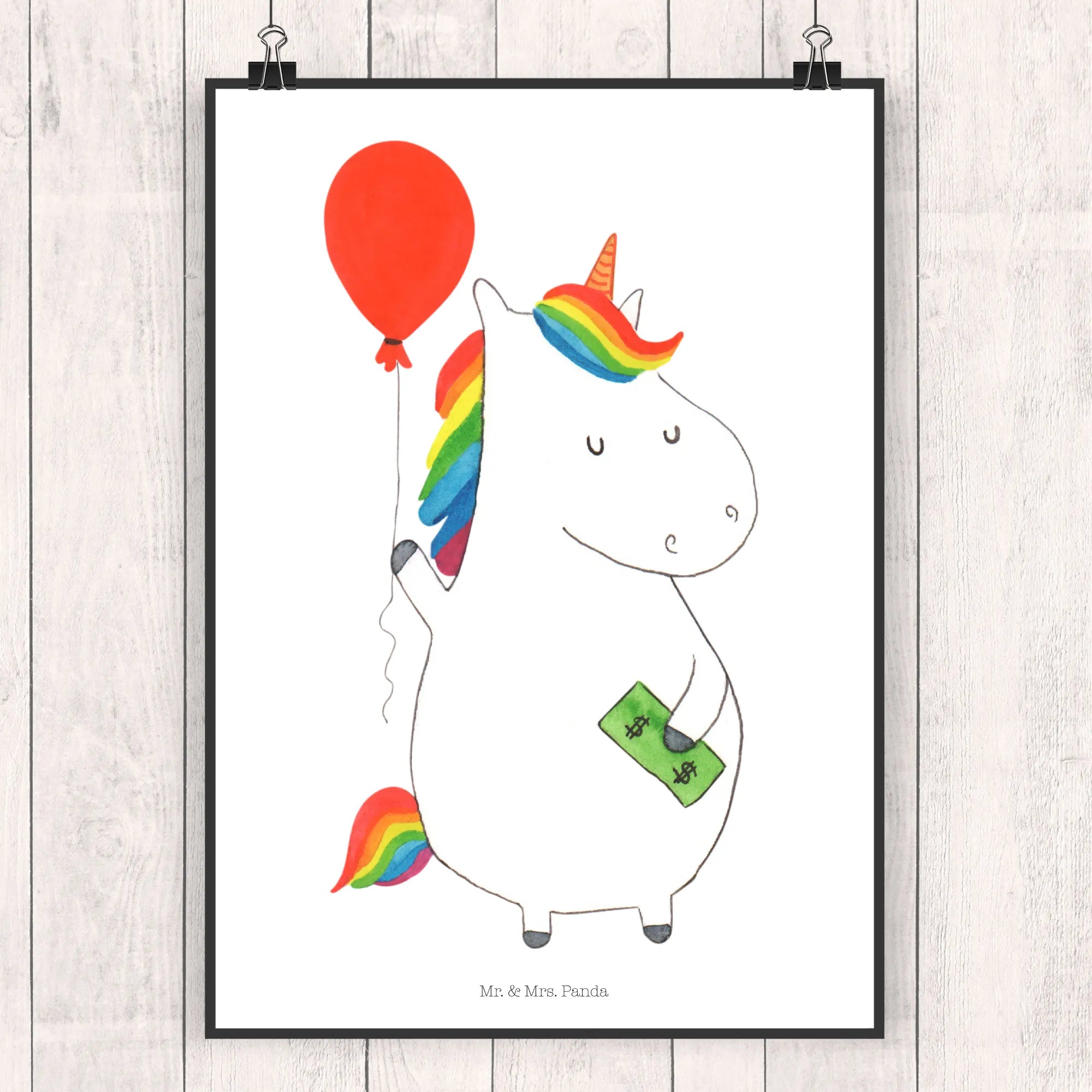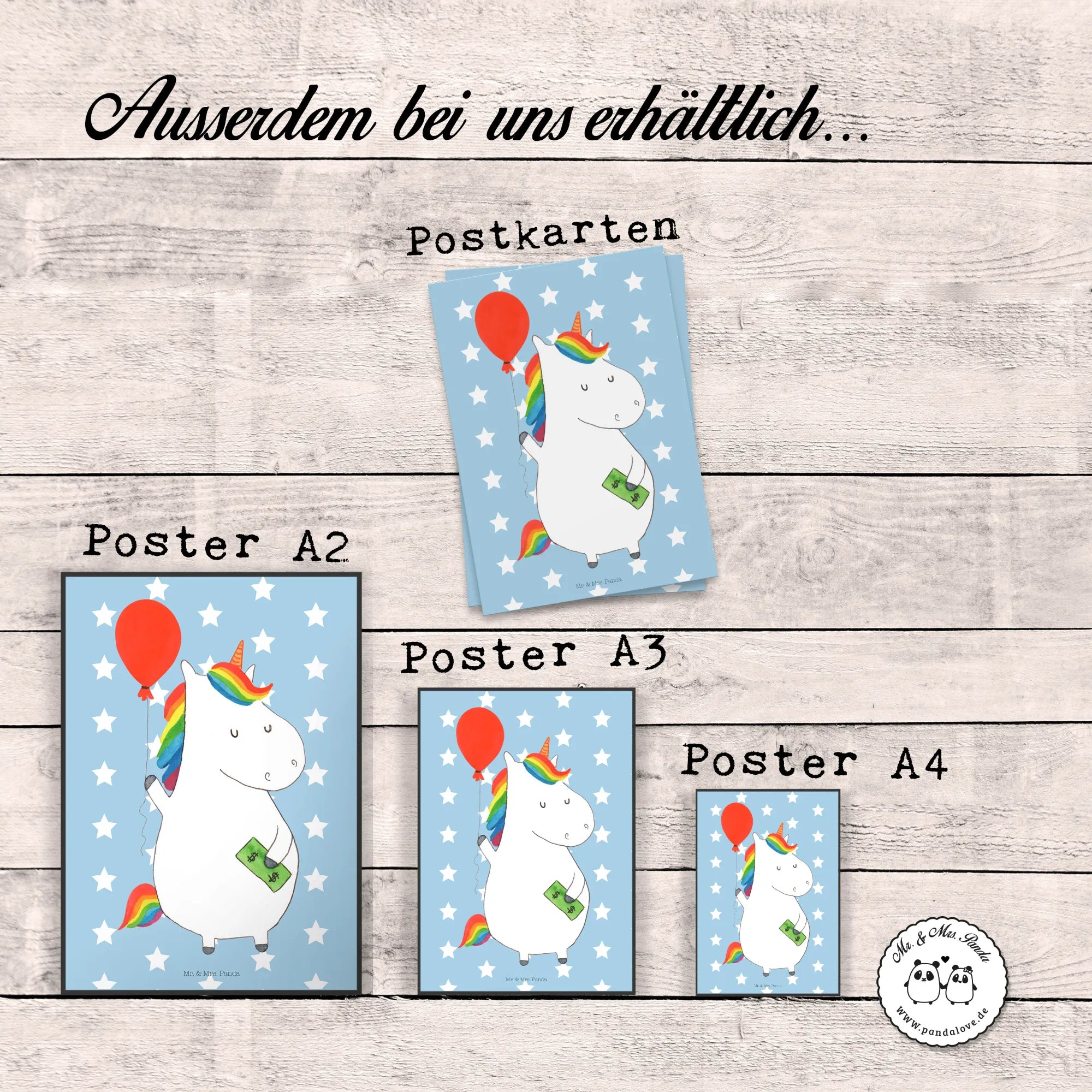 Das Einhorn Luftballon Poster aus der zauberhaften Einhorn - Kollektion von Mr. & Mrs. Panda ist das perfekte Geschenk für alle Einhornliebhaber da draußen! 🎈✨