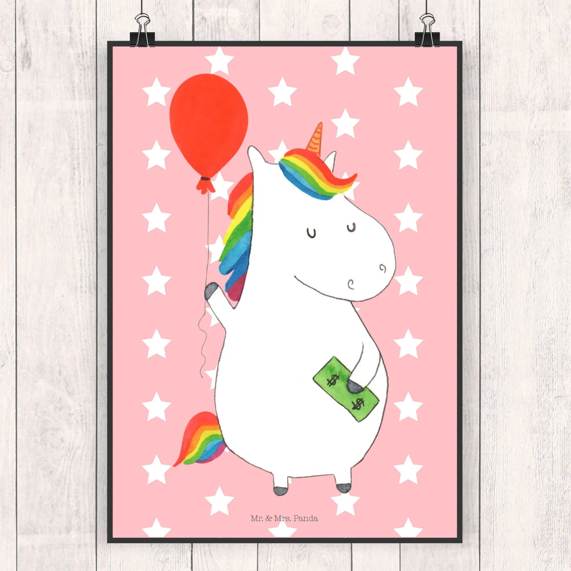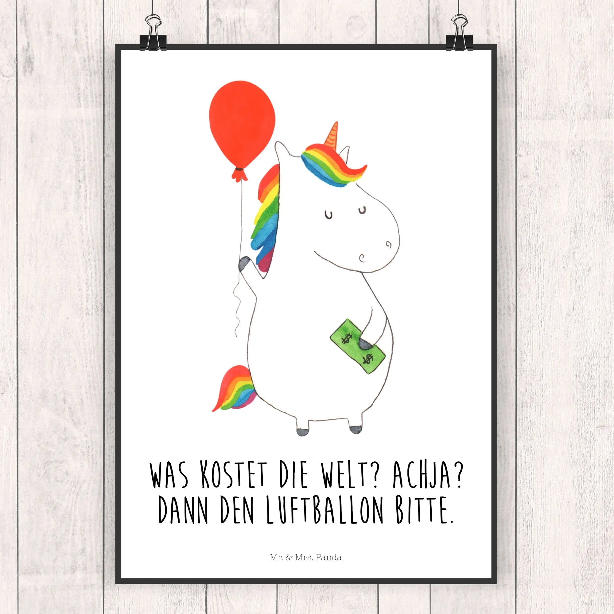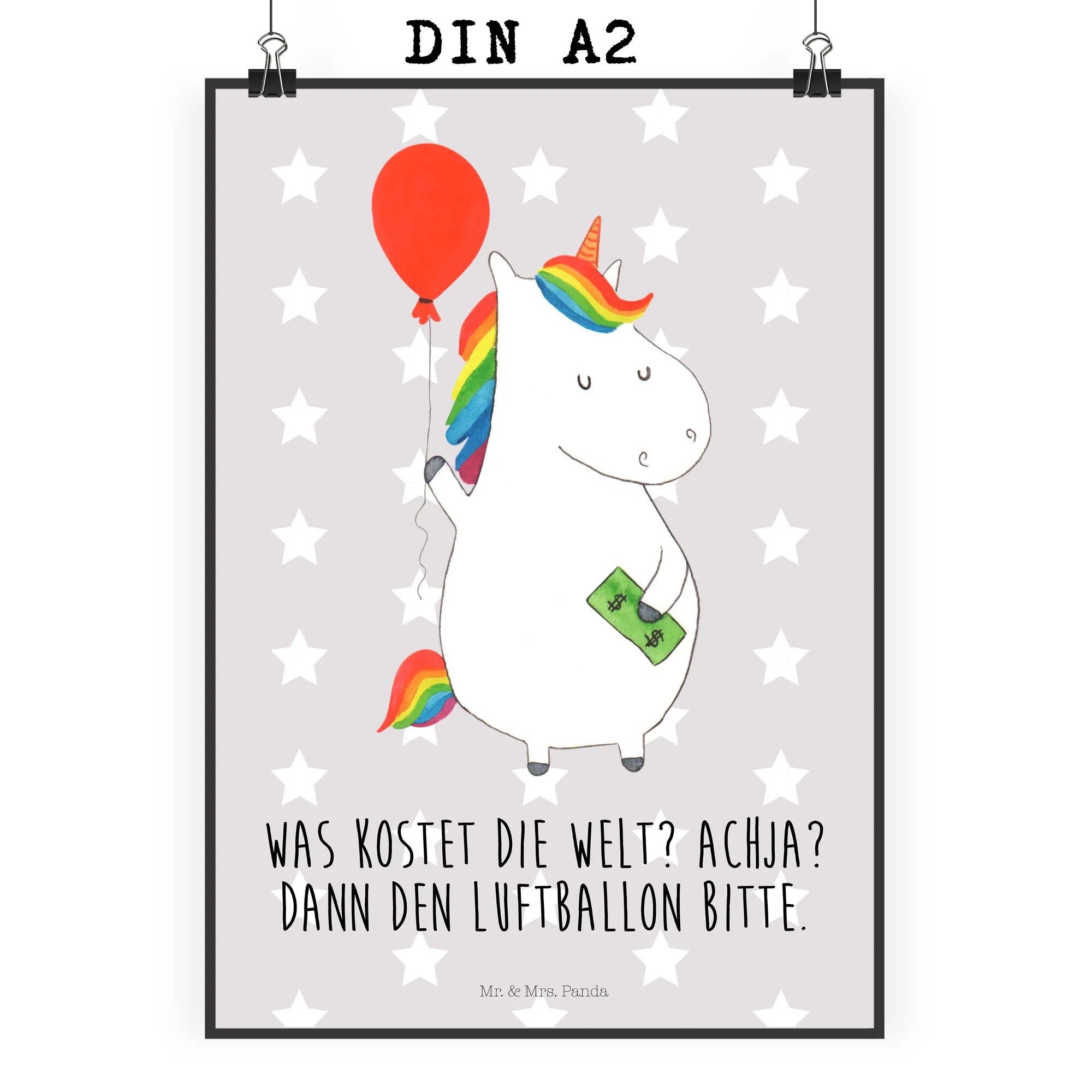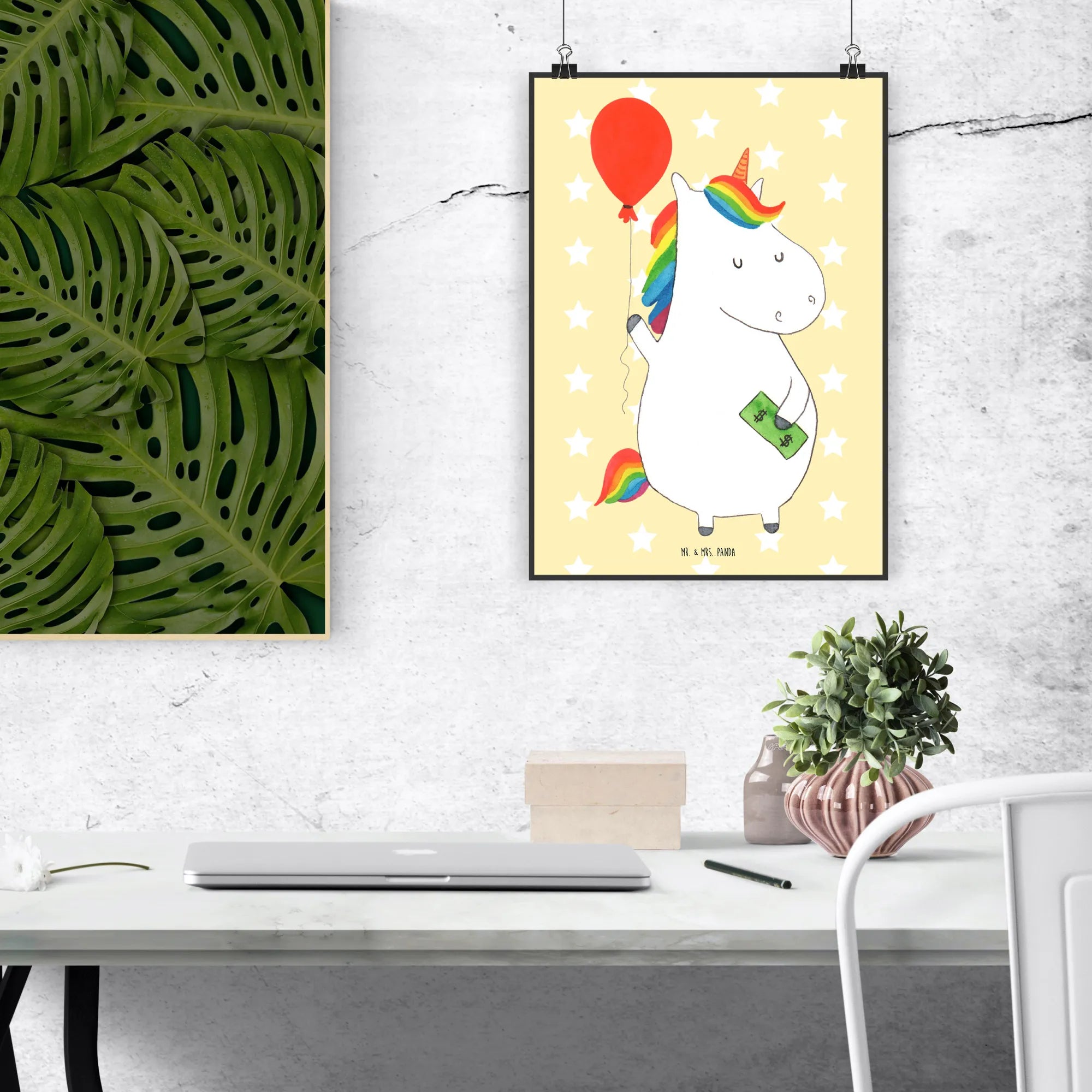 Das Einhorn Luftballon Poster aus der zauberhaften Einhorn - Kollektion von Mr. & Mrs. Panda ist das perfekte Geschenk für alle Einhornliebhaber da draußen! 🎈✨