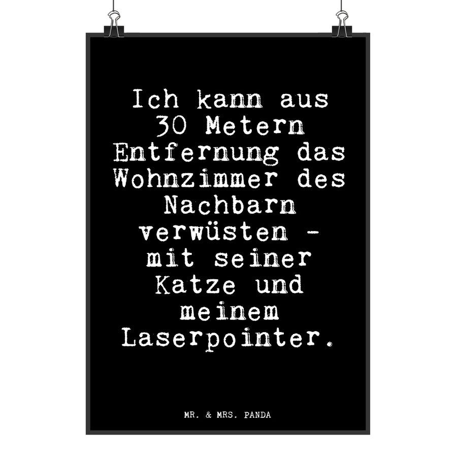 Poster Fun Talk Ich kann aus 30 Metern Entfernung das Wohnzimmer des Nachbarn verwüsten - mit seiner Katze und meinem Laserpointer. Designposter, Raumdekoration, Wanddekoration, Wanddeko, Posterdruck, Küchenposter, Mr. & Mrs. Panda Poster, Wandposter, Wanddeko Bild, Handgemaltes Poster, Kunstdruck, Poster, Bild, Kinderposter, Spruch, Sprüche, lustige Sprüche, Weisheiten, Zitate, Spruch Geschenke, Glizer Spruch Sprüche Weisheiten Zitate Lustig Weisheit Worte