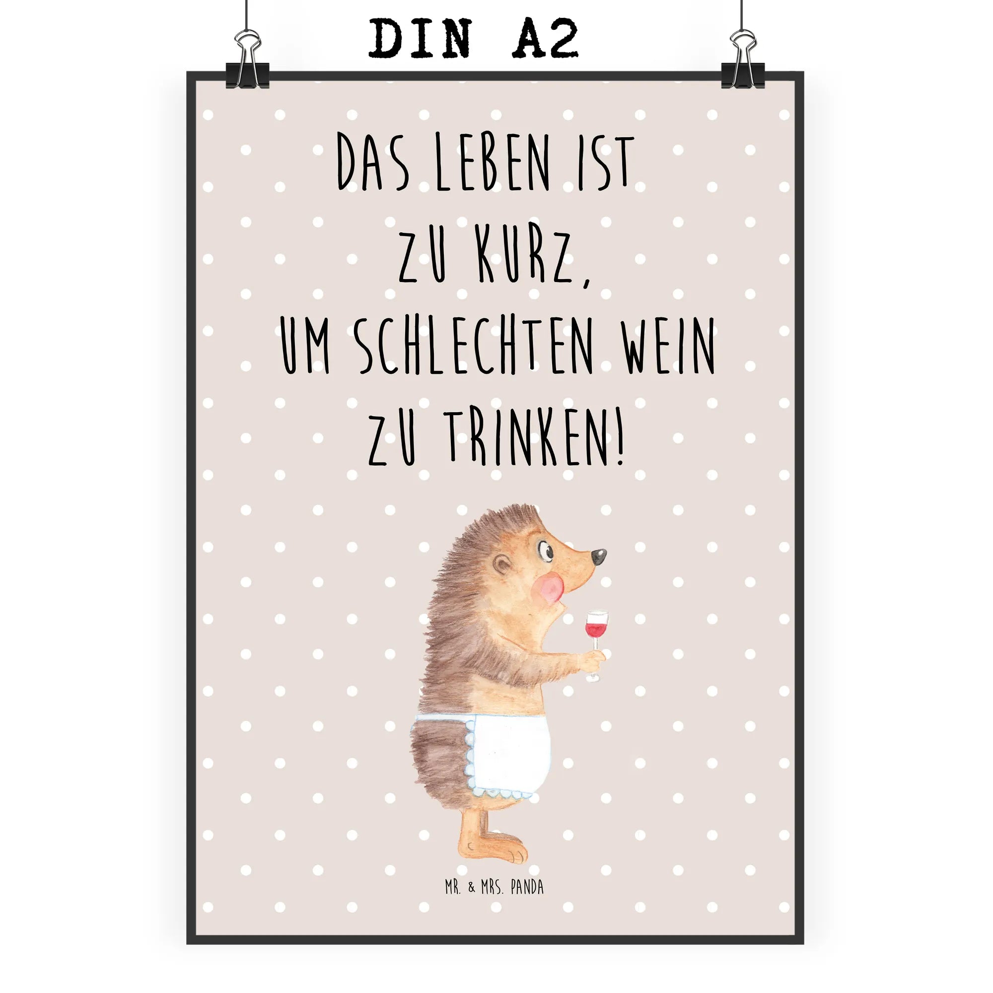 Der Spruch 'Das Leben ist zu kurz, um schlechten Wein zu trinken!' ist zwar nicht auf dem Poster, aber der Igel mit Wein bringt diesen Genussgedanken perfekt zur Geltung. Zudem ist das Poster aus stabilem Papier gefertigt, was für eine lange Lebensdauer sorgt.