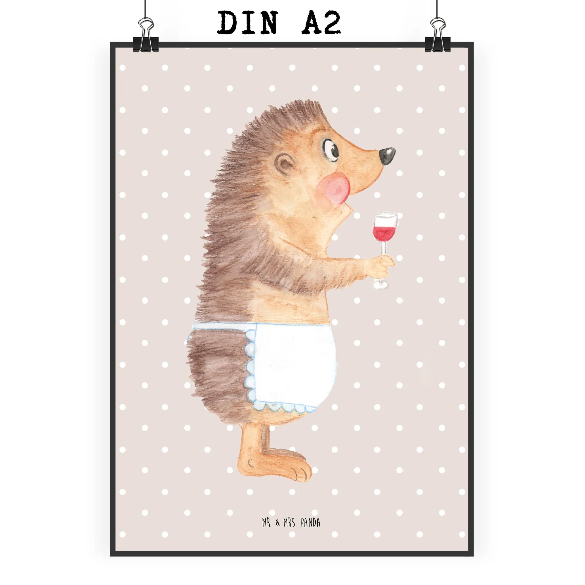 Entdecke das wundervolle Poster 'Igel mit Wein' aus der beliebten Small World Kollektion von Mr. & Mrs. Panda! Dieses handgefertigte Kunstwerk zeigt einen niedlichen Igel, der aus einem Rotweinglas schlürft und bringt ein lächelndes Gesicht in dein Zuhause.