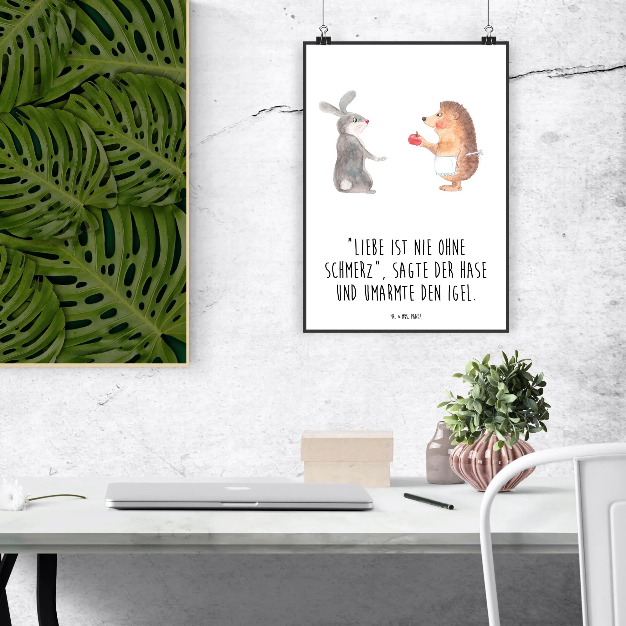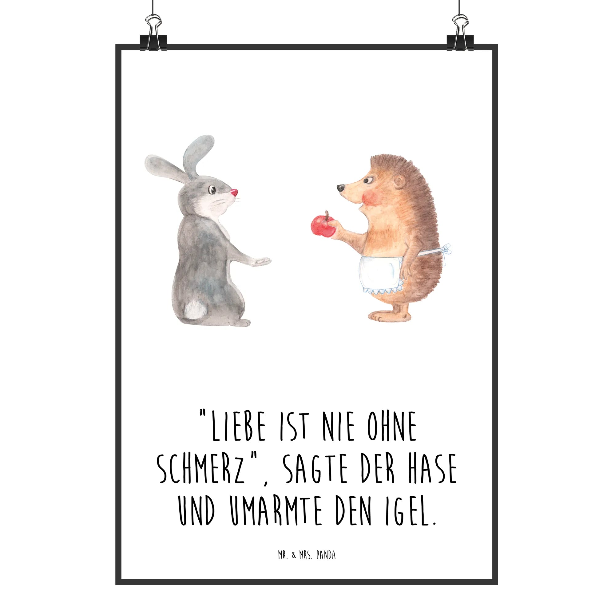 Entdecke das wunderschöne Poster "Liebe ist nie ohne Schmerz" von Mr. & Mrs. Panda. Dieses handgemalte Kunstwerk zeigt den niedlichen Hase und den süßen Igel, die sich umarmen und uns daran erinnern, dass die Liebe oft mit Herausforderungen verbunden ist. Mit dem herzerwärmenden Spruch „Liebe ist nie ohne Schmerz“, sagte der Hase und umarmte den Igel, vermittelt dieses Poster eine wertvolle Botschaft über die Höhen und Tiefen der romantischen Beziehungen.