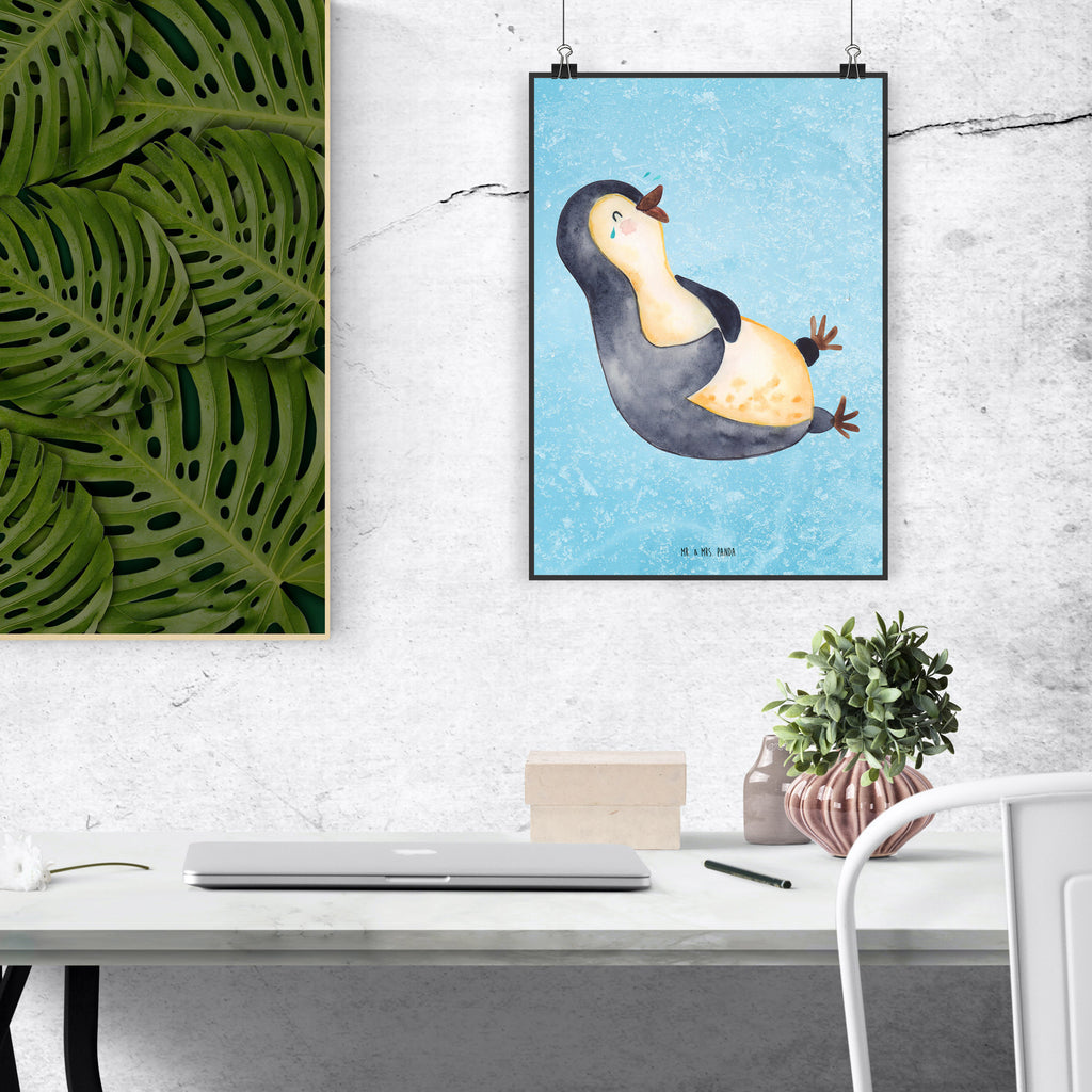 Poster Pinguin Lachen - DIN A3 - mit Spruch - Weiß