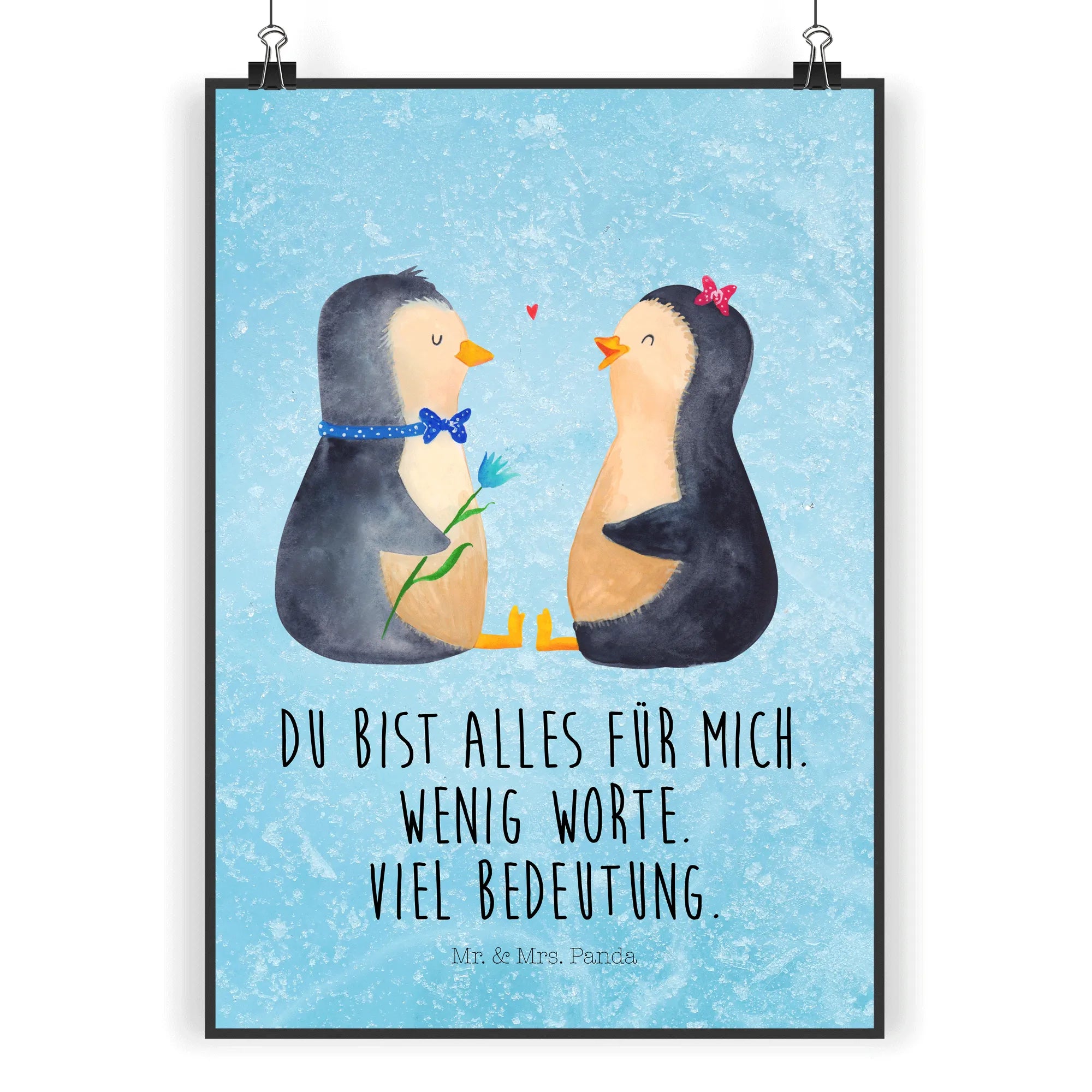 Verschenke Zärtlichkeit und ein Lächeln mit dem Pinguin Pärchen von Mr. & Mrs. Panda – ein liebevolles Motiv, das jede Wand aufwertet und an besondere Momente erinnert.