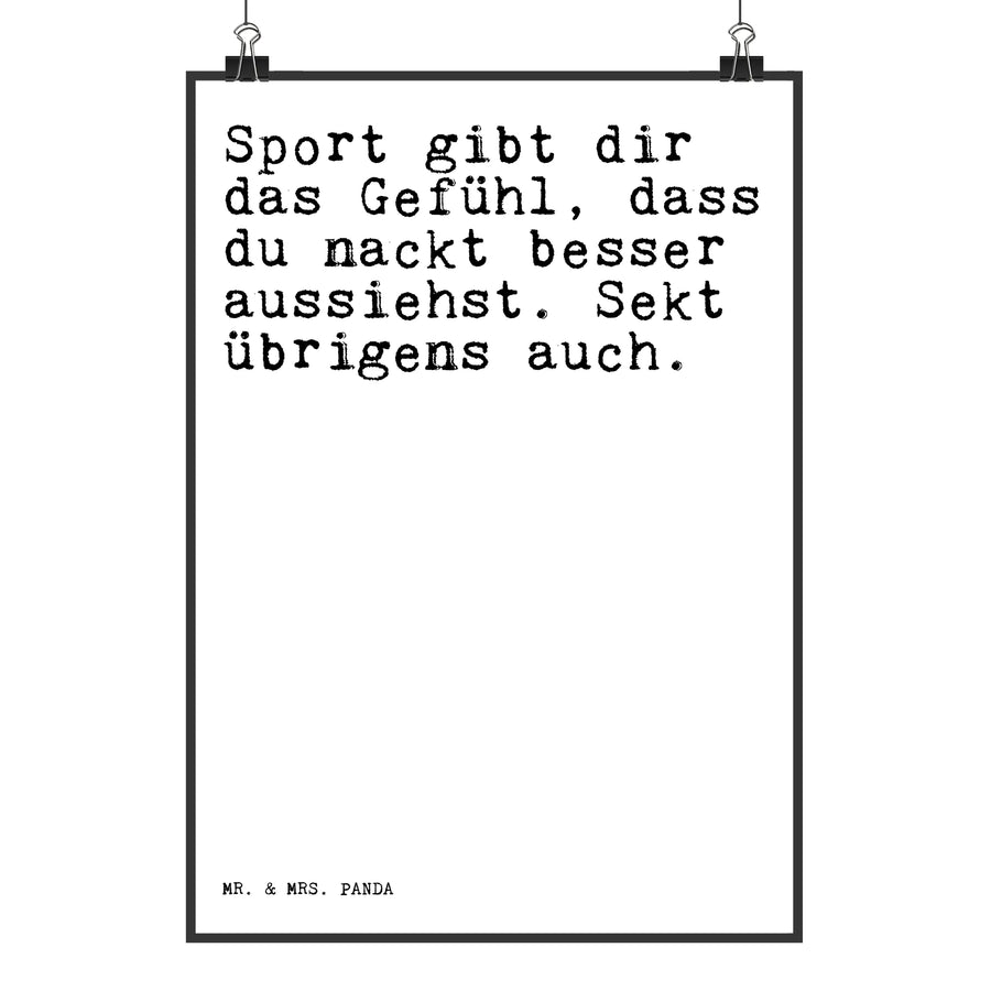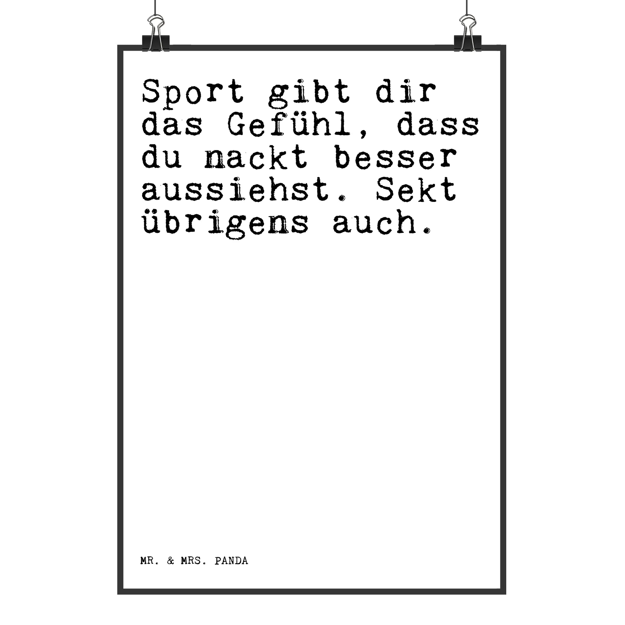 Ein wunderschönes und edles Poster von Mr. & Mrs. Panda, das für alle Sportliebhaber und Humorbegeisterten ein perfektes Geschenk darstellt! Mit dem witzigen Spruch "Sport gibt dir das Gefühl, dass du nackt besser aussiehst. Sekt übrigens auch." bringt dieses Poster nicht nur Farbe in dein Zuhause, sondern auch eine große Portion Spaß in jedes Zimmer. Ob in der eigenen Wohnung, im Kinderzimmer oder sogar im Klassenzimmer - dieses Poster ist eine großartige Wanddeko, die für Lacher sorgt und gleichzeitig zum Schmunzeln anregt.