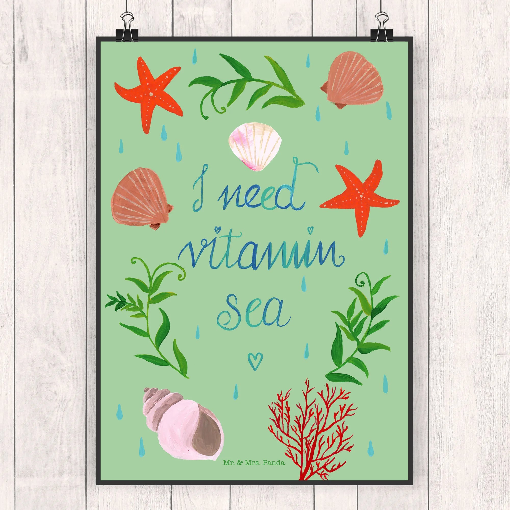 Bist du auf der Suche nach dem perfekten Geschenk für Naturliebhaber, Strandurlauber oder einfach für jemanden, der die maritime Atmosphäre liebt? Dann ist das wunderschöne Poster "Vitamin Sea" aus der exklusiven Wild & Free Kollektion von Mr. & Mrs. Panda genau das Richtige für dich! Mit dem eingängigen Spruch "I need vitamin sea" bringt dieses handgemalte Poster frischen Wind in jedes Zuhause.