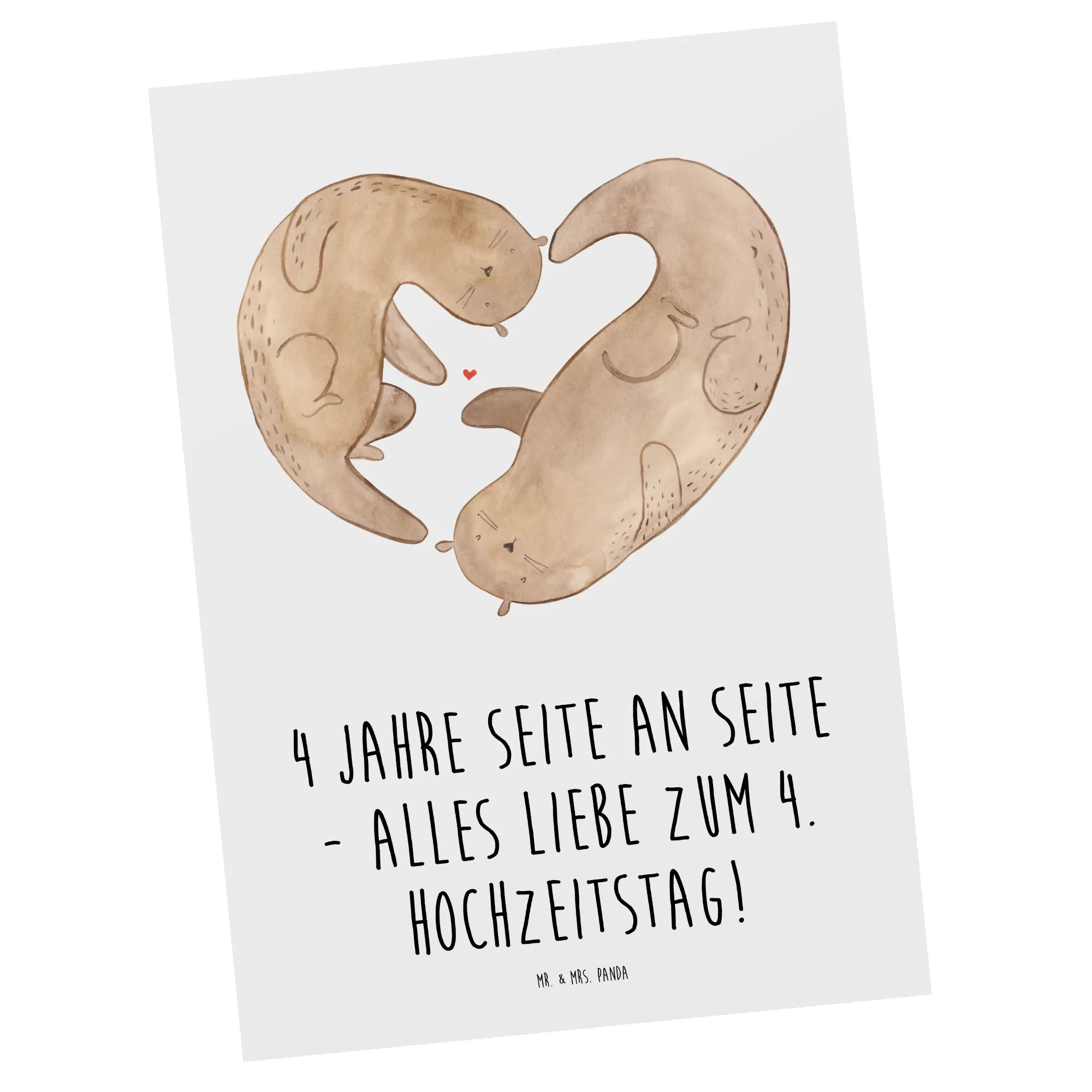 Mit dieser Postkarte machst du jedem Brautpaar, ob frisch verheiratet oder seit Jahren harmonisch miteinander, eine Freude. Entdecke die zauberhafte Hochzeitskollektion von Mr. & Mrs. Panda und finde das ideale Geschenk zum 4. Hochzeitstag oder für ähnliche Anlässe. Jedes Motiv erzählt eine Geschichte und trägt zur Feier eurer Liebe bei. Überrasche deine Liebsten mit dieser herzlichen Geste der Wertschätzung und Freude!