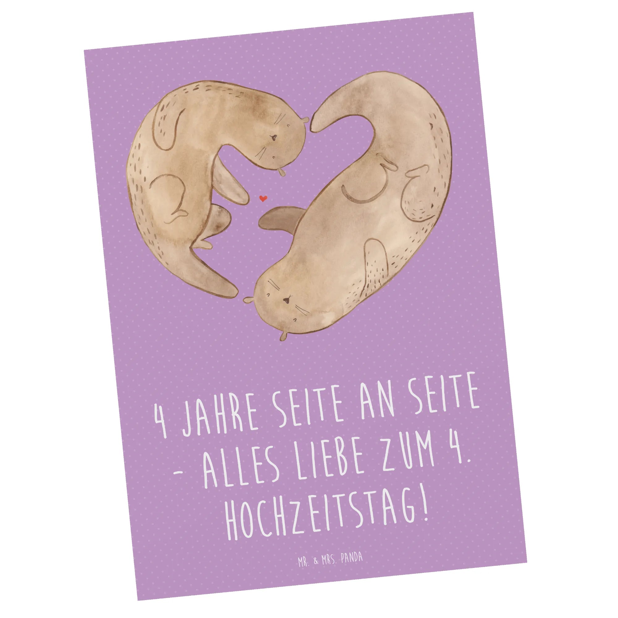 Die Postkarte "4. Hochzeitstag Seidenhochzeit" von Mr. & Mrs. Panda ist das perfekte Geschenk, um diesen besonderen Anlass zu feiern! Ob du sie für deinen Partner oder ein befreundetes Ehepaar auswählst, diese Karte bringt nicht nur Freude, sondern auch eine Portion Romantik in den Alltag. Die Karte ist mit dem liebevollen Spruch "4 Jahre Seite an Seite - alles Liebe zum 4. Hochzeitstag!" versehen und greift das wunderschöne Motiv der Seidenhochzeit auf. Diese kunstvoll gestaltete Postkarte ist einzigartig und wird sicherlich das Herz des Empfängers erwärmen.