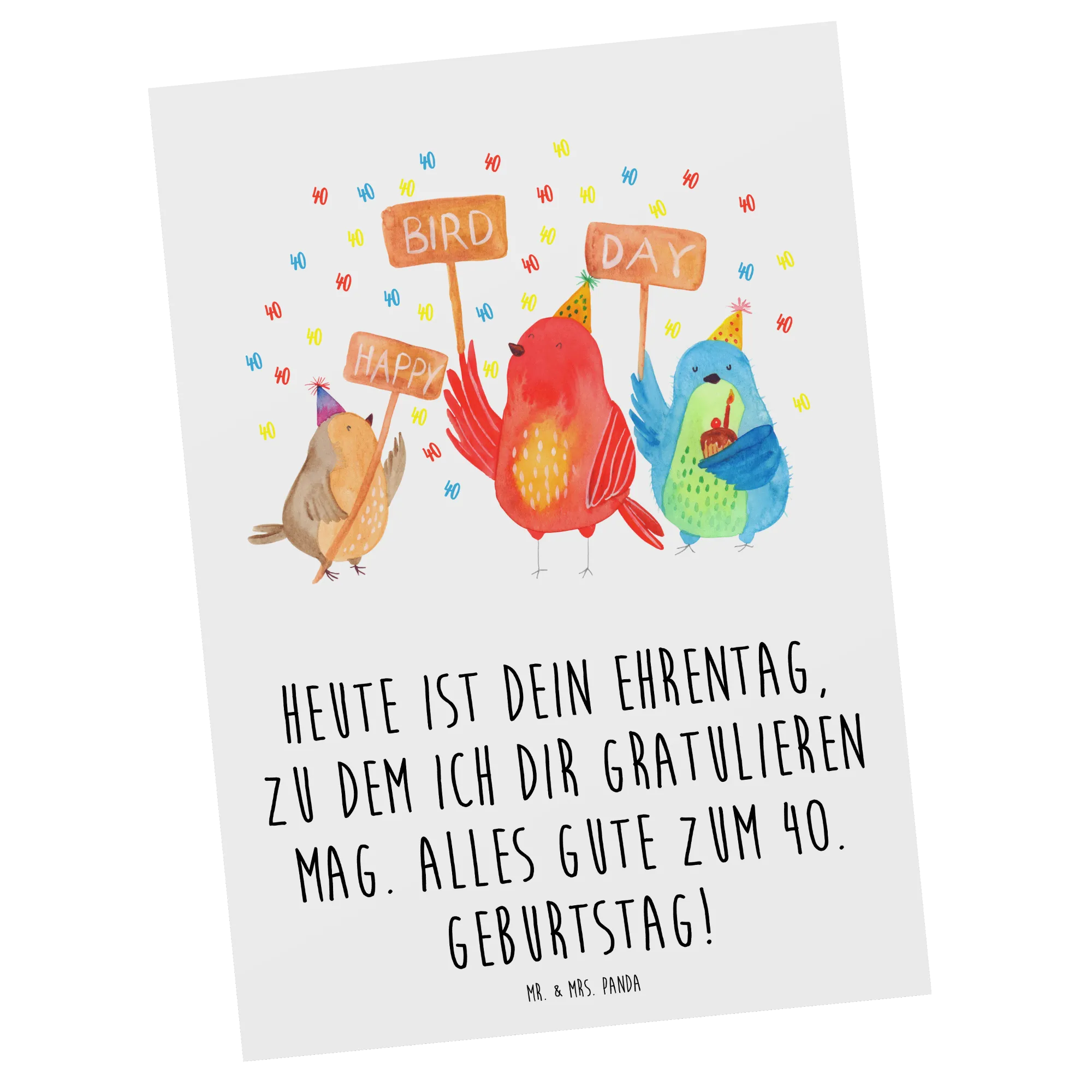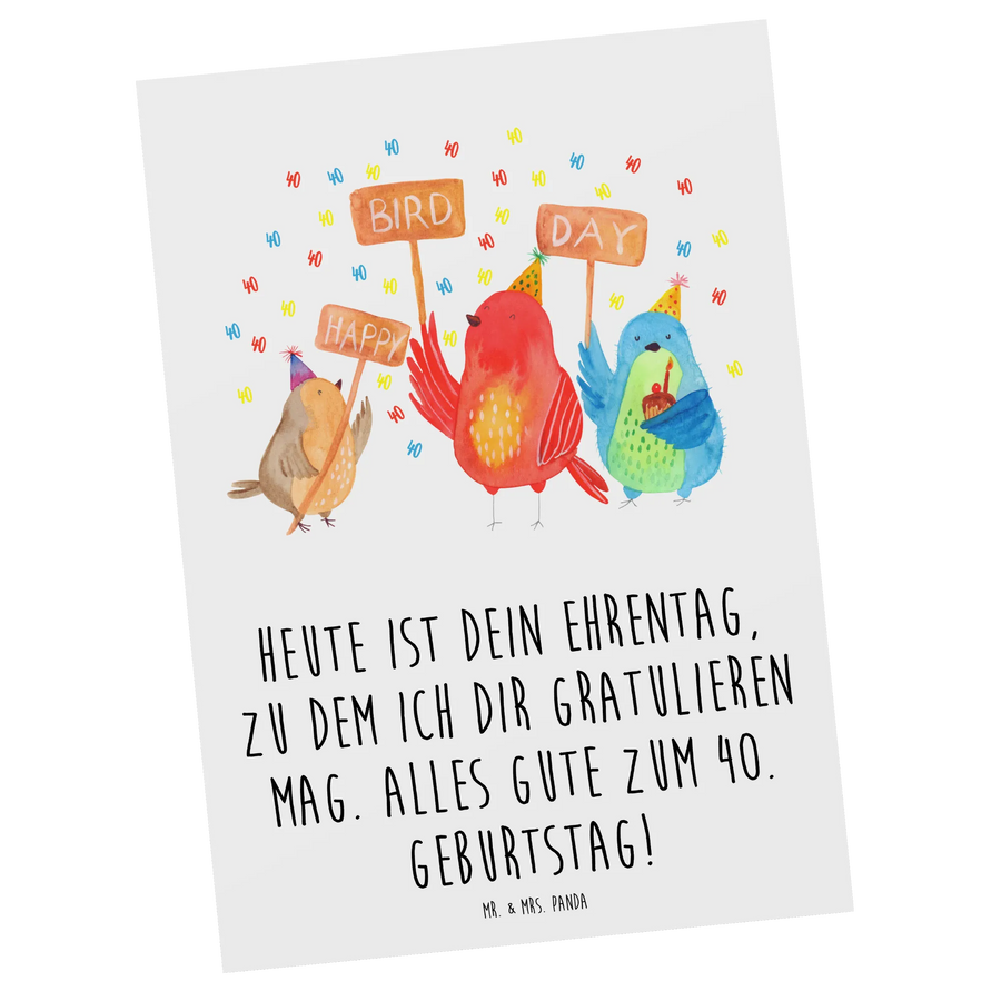 Postkarte 40. Geburtstag Happy Bird Day - mit Spruch