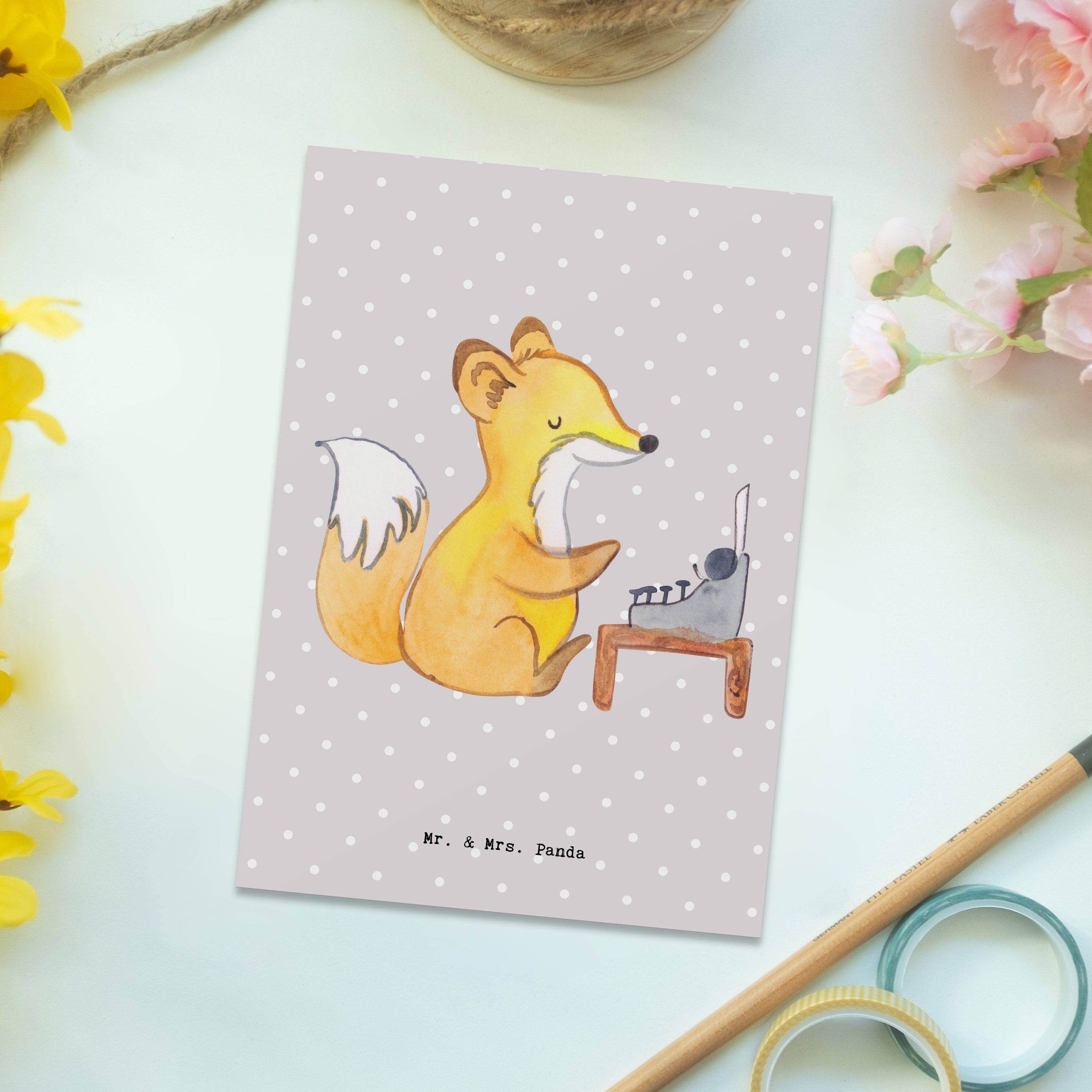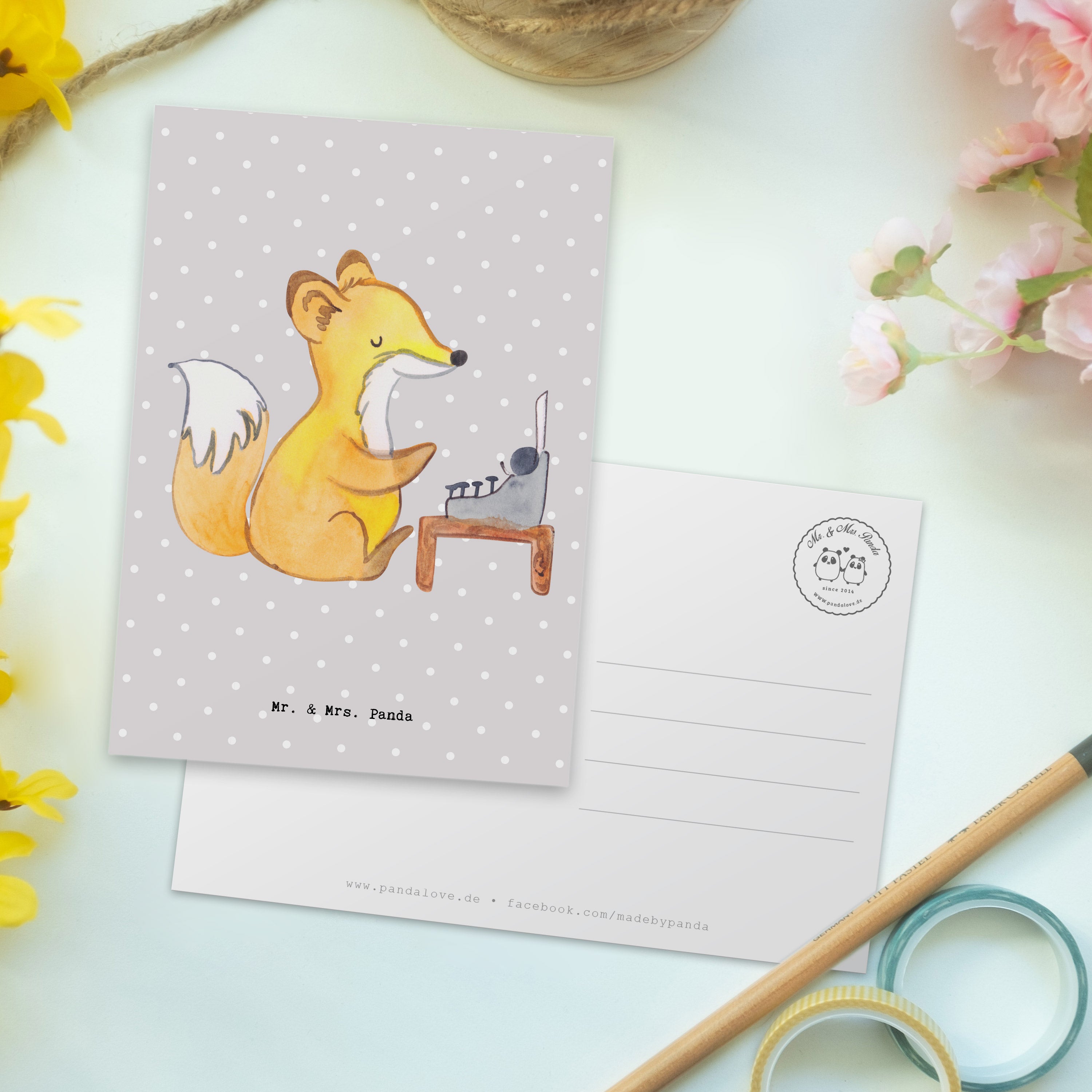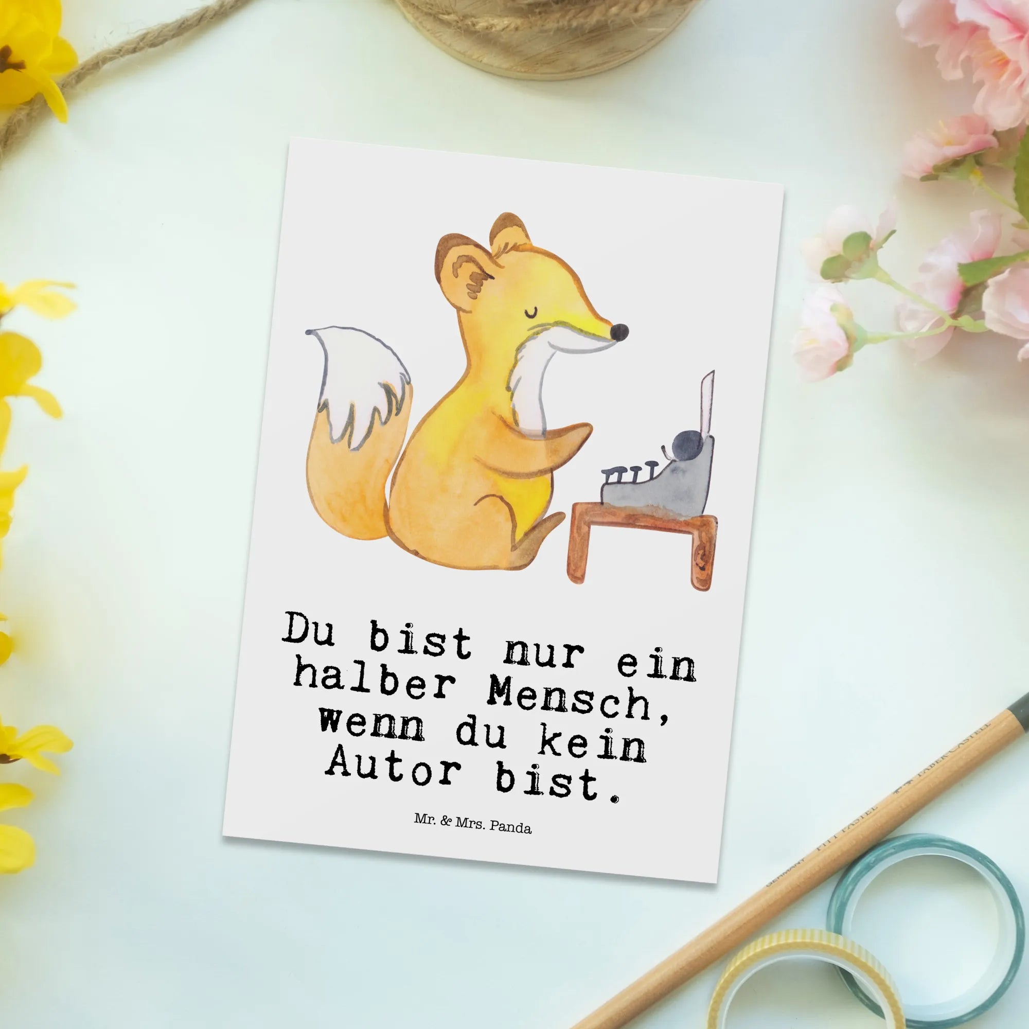 Die Postkarte "Autor mit Herz" von Mr. & Mrs. Panda ist nicht nur ein einfacher Gruß, sondern ein liebevolles Geschenk für jeden leidenschaftlichen Schriftsteller oder Hobbyautor! Mit ihrem charmanten Design, das einen süßen Fuchs an einer Schreibmaschine zeigt, vermittelt sie die Freude und das Engagement des Schreibens. Diese besondere Karte gehört zur kreativen Berufe Kollektion, die dafür geschaffen wurde, den Menschen in deinem Leben zu sagen, wie wichtig ihr Beruf für sie ist.