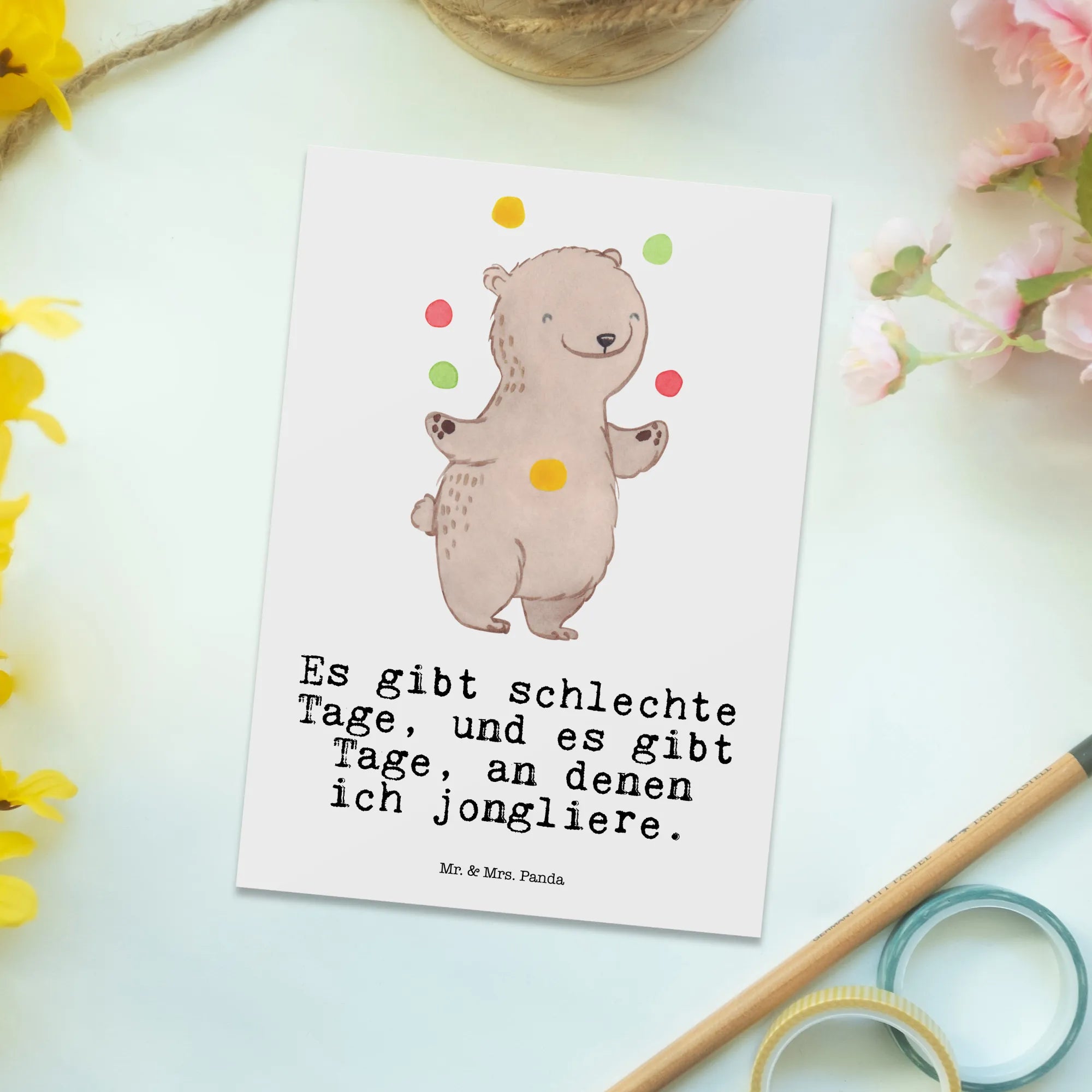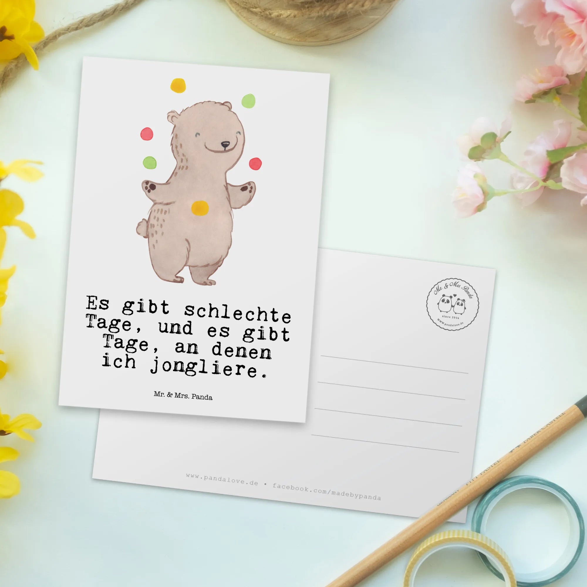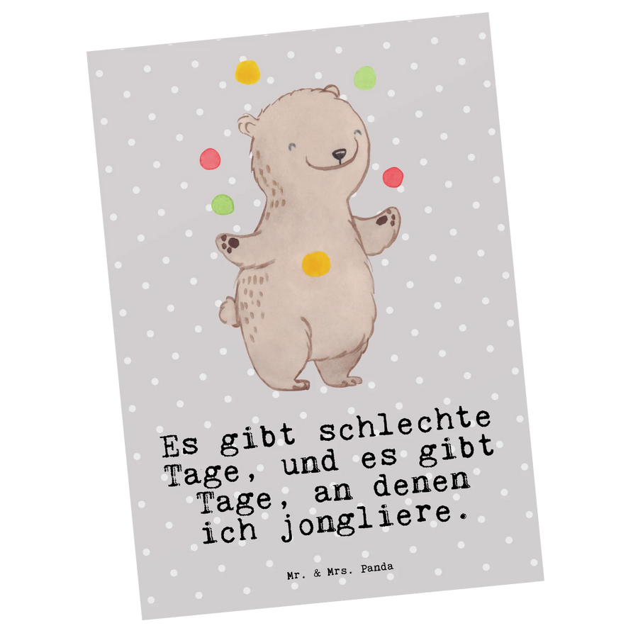 Bist du auf der Suche nach einem besonderen Geschenk für einen Sportbegeisterten oder einen Hobby Fan? Dann ist die Postkarte "Bär Jonglieren Tage" aus der Kollektion Hobby & Sport von Mr. & Mrs. Panda genau das Richtige für dich!