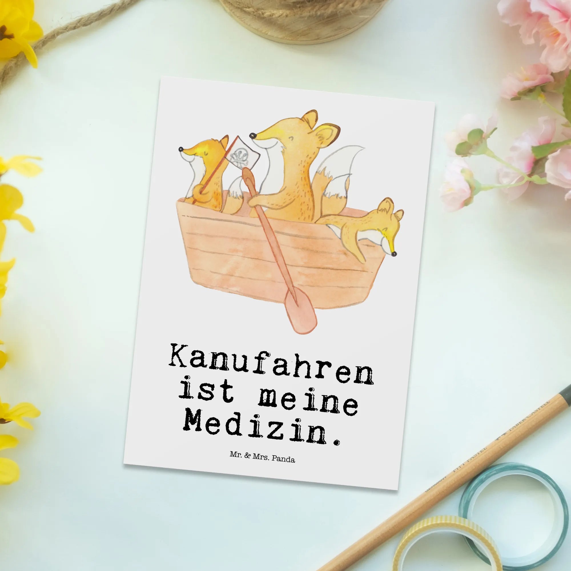Diese einzigartige Postkarte aus der Kollektion "Hobby & Sport" von Mr. & Mrs. Panda wird von Hand mit viel Liebe zum Detail illustriert. Die Kollektion umfasst über 200 liebevoll gestaltete Motive, die perfekt geeignet sind, um die Freude am Sport und an Hobbys zu teilen. Wenn du also jemanden kennst, der die Natur liebt, gerne Kanu fährt oder einfach nur ein kleines Dankeschön verdient hat, dann ist diese Karte genau das Richtige!