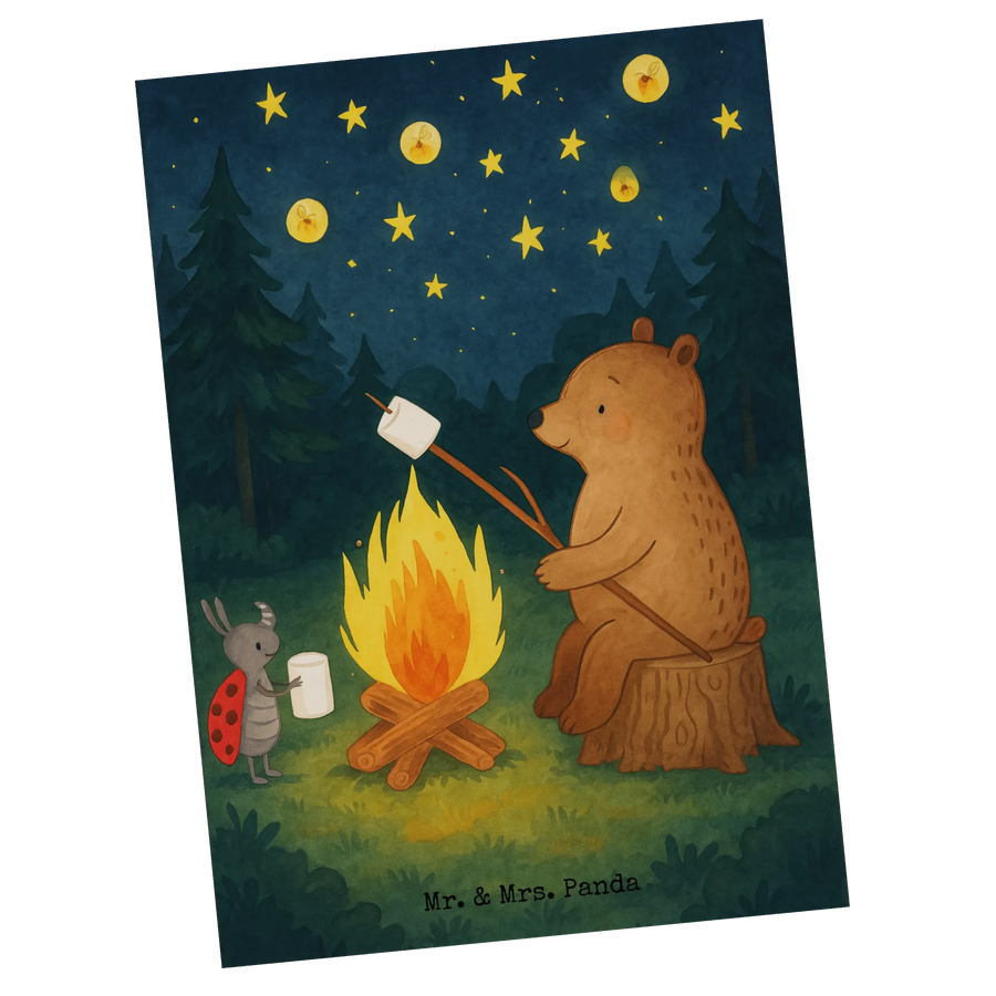 Postkarte Bär & Marienkäfer Lagerfeuer Design