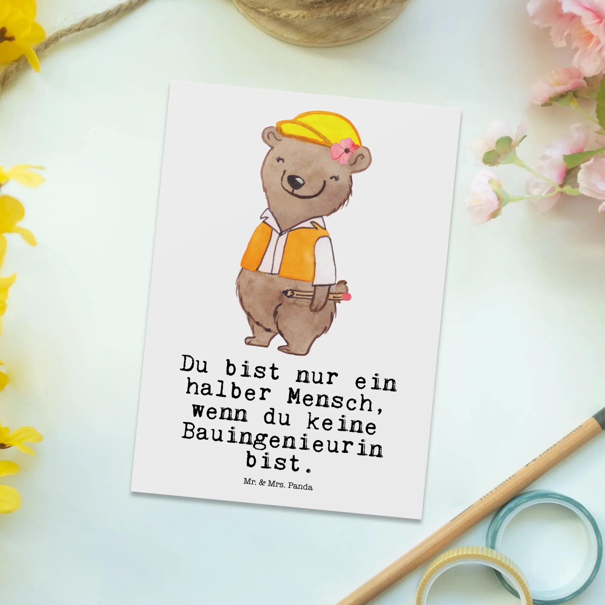 Bauingenieurin mit Herz – süßer Ingenieurin-Bär im Bauhelm, Geschenkidee für Ingenieurinnen