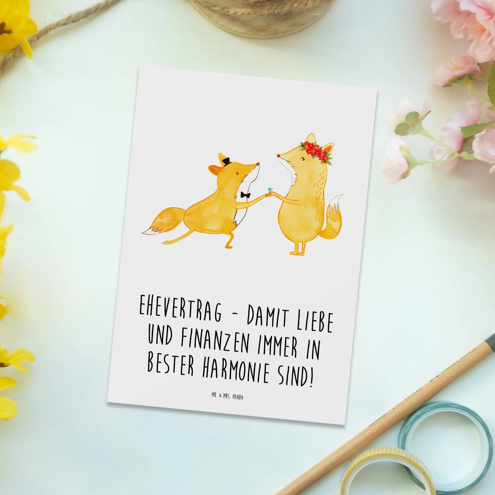 Entdecke die zauberhafte Postkarte "Ehevertrag - Damit Liebe und Finanzen immer in bester Harmonie sind!" von Mr. & Mrs. Panda. Diese einzigartige Karte ist nicht nur ein perfektes Gimmick für den schönsten Tag im Leben eines Paares, sondern auch ein herzerwärmendes Geschenk zur Hochzeit, zur Verlobung oder zum Jahrestag.