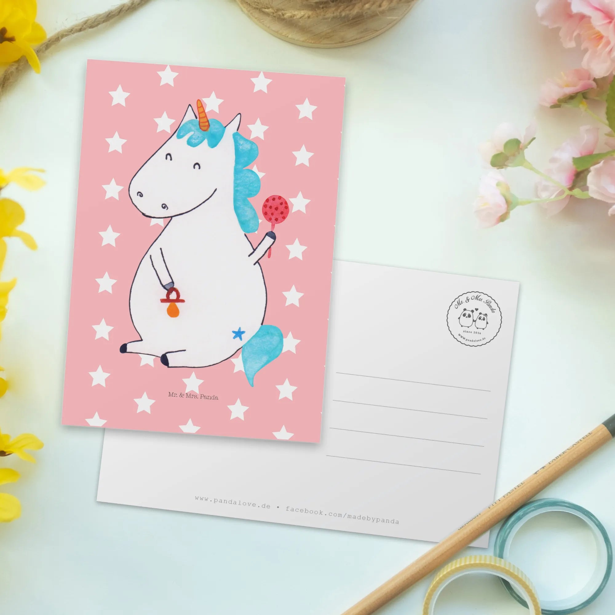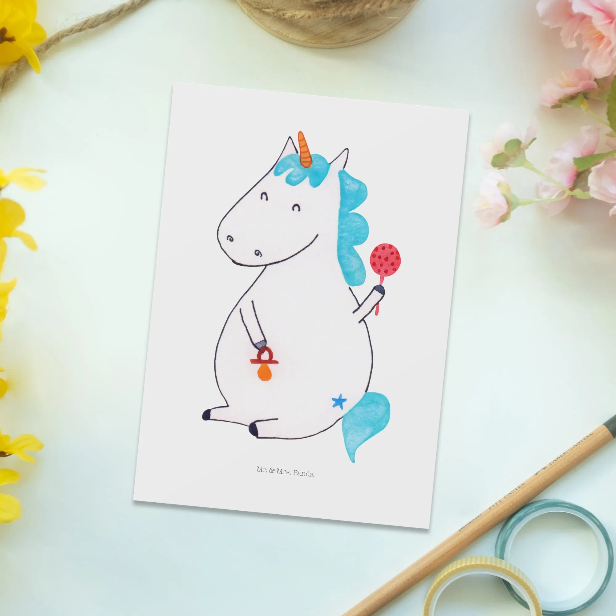 Nutze die Gelegenheit, um das Babyglück und die Magie der Einhörner zu feiern – mit der Einhorn Baby Postkarte von Mr. & Mrs. Panda wird jeder Moment besonders! Lass die ungezwungenen und kunterbunten Einhorn-Motive die Herzen deiner Freunde und Familie berühren und feiere die Anlässe, die das Leben schöner machen.