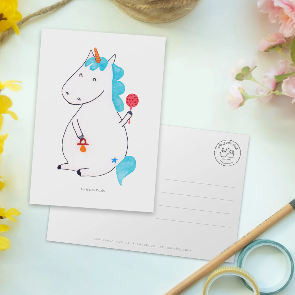 Suchst du nach dem perfekten Geschenk für frisch gebackene Eltern oder einen kleinen Geburtstag? Unsere zauberhafte Postkarte Einhorn Baby aus der einzigartigen Einhorn - Kollektion ist genau das, was du brauchst! Mit einem süßen Baby-Einhorn, das einen Schnuller hält, bringt diese Karte ein Lächeln auf jedes Gesicht und zaubert einen Hauch von Einhornzauber in jeden Anlass.