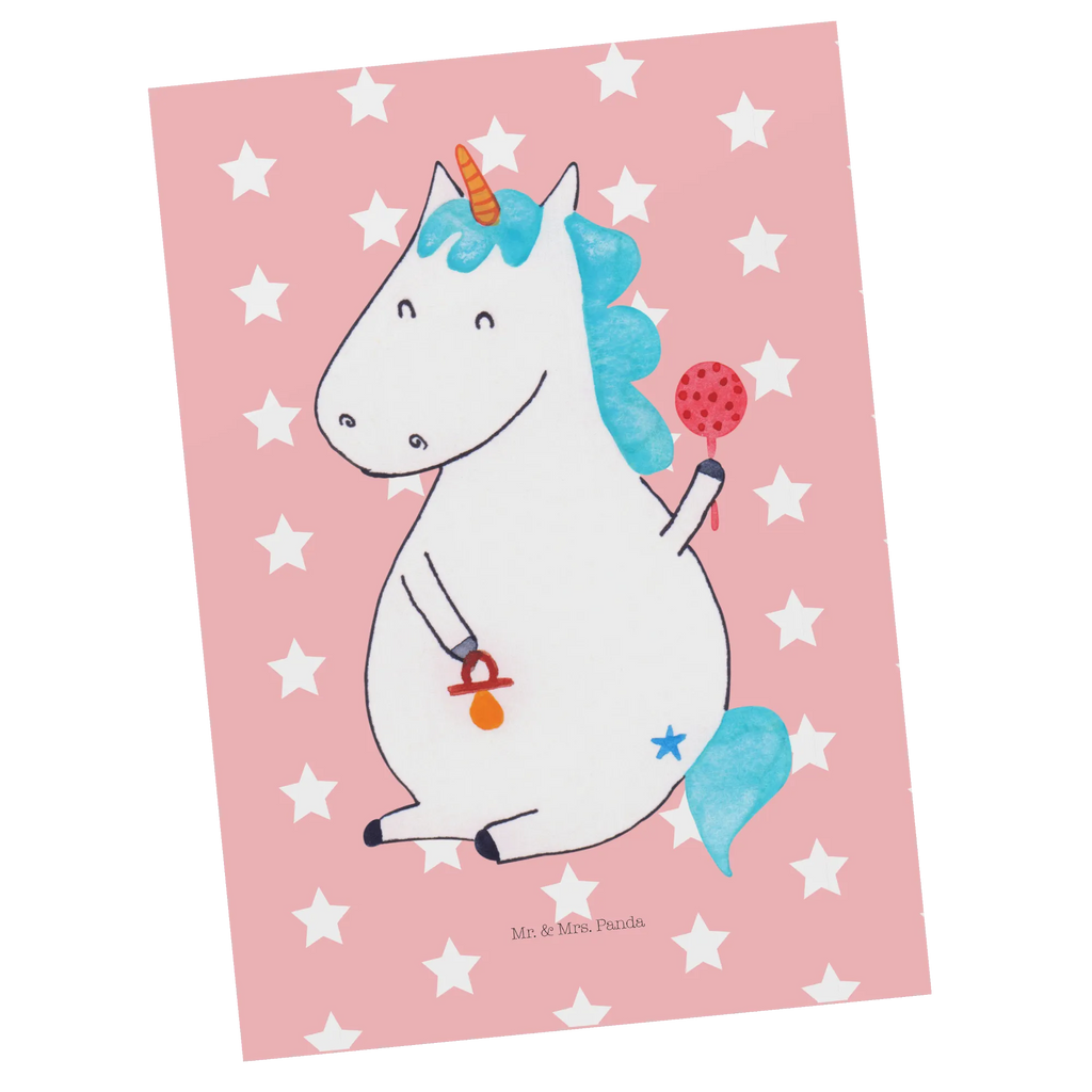 Postkarte Einhorn Baby - mit Spruch - Rot Pastell
