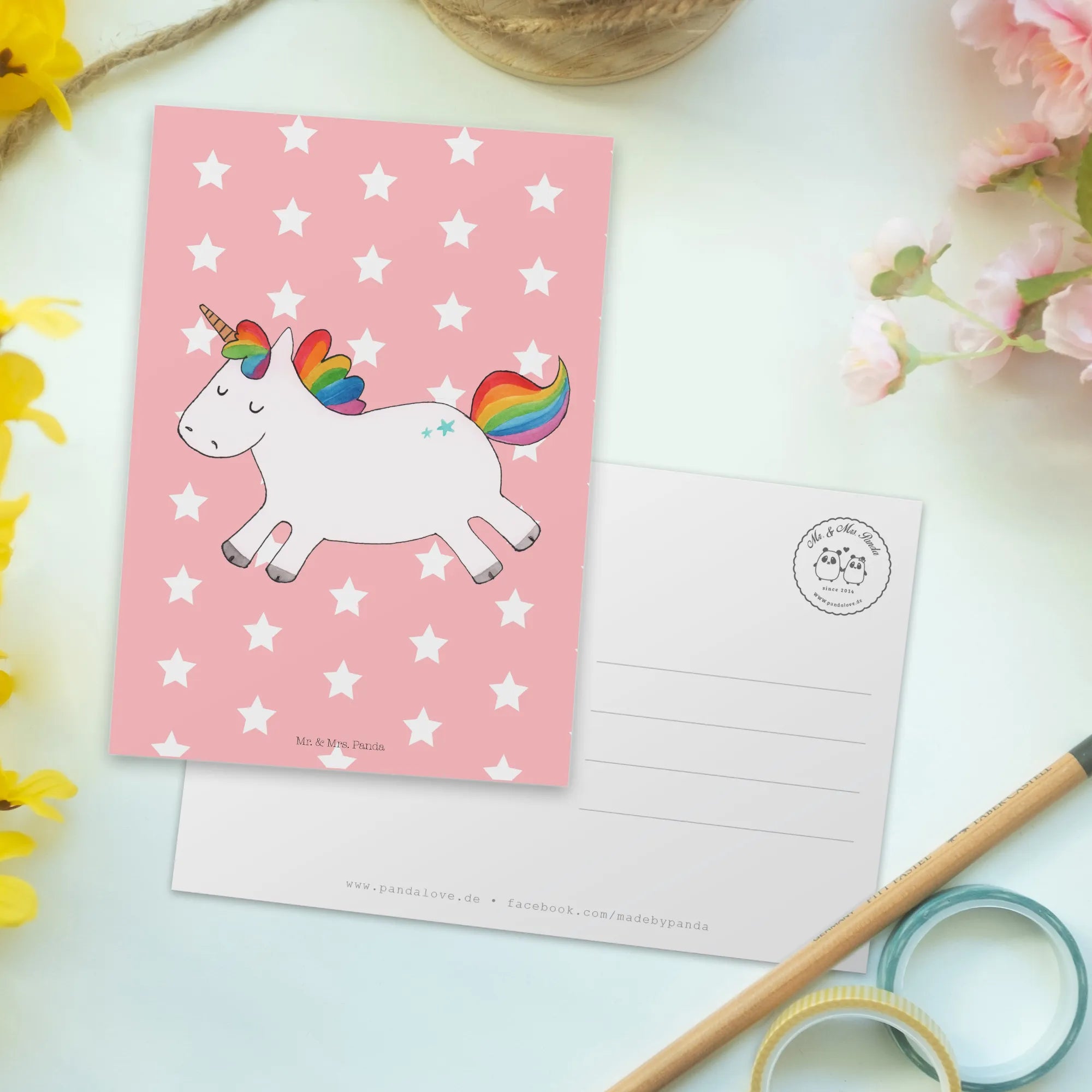 Diese Karte ist nicht nur ein Gruß, sondern ein Stück Lebensfreude, ideal für all jene, die ihr Leben bunt und fröhlich gestalten möchten. Verschenke das Glück, teile die Freude - mit der Einhorn Happy Postkarte von Mr. & Mrs. Panda!