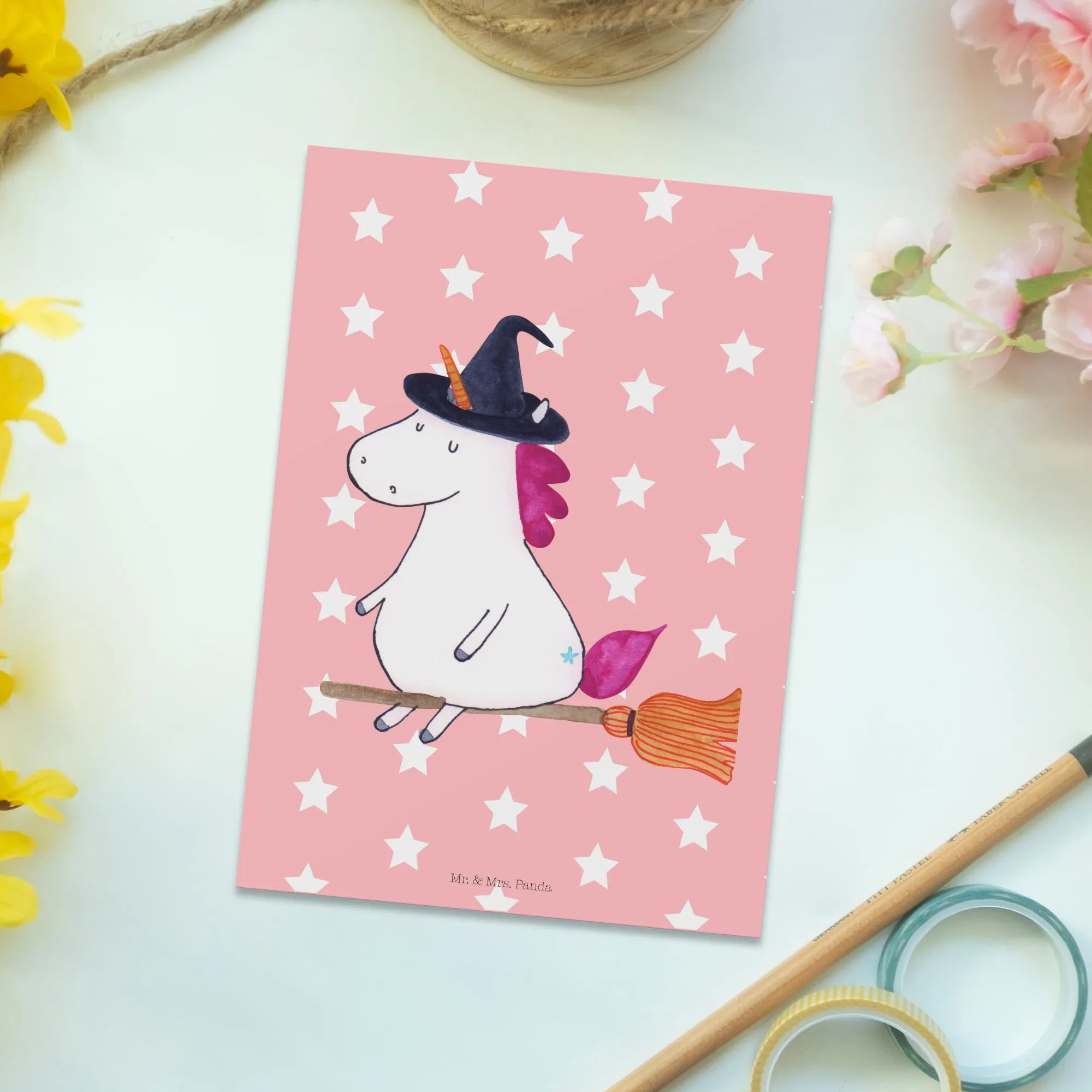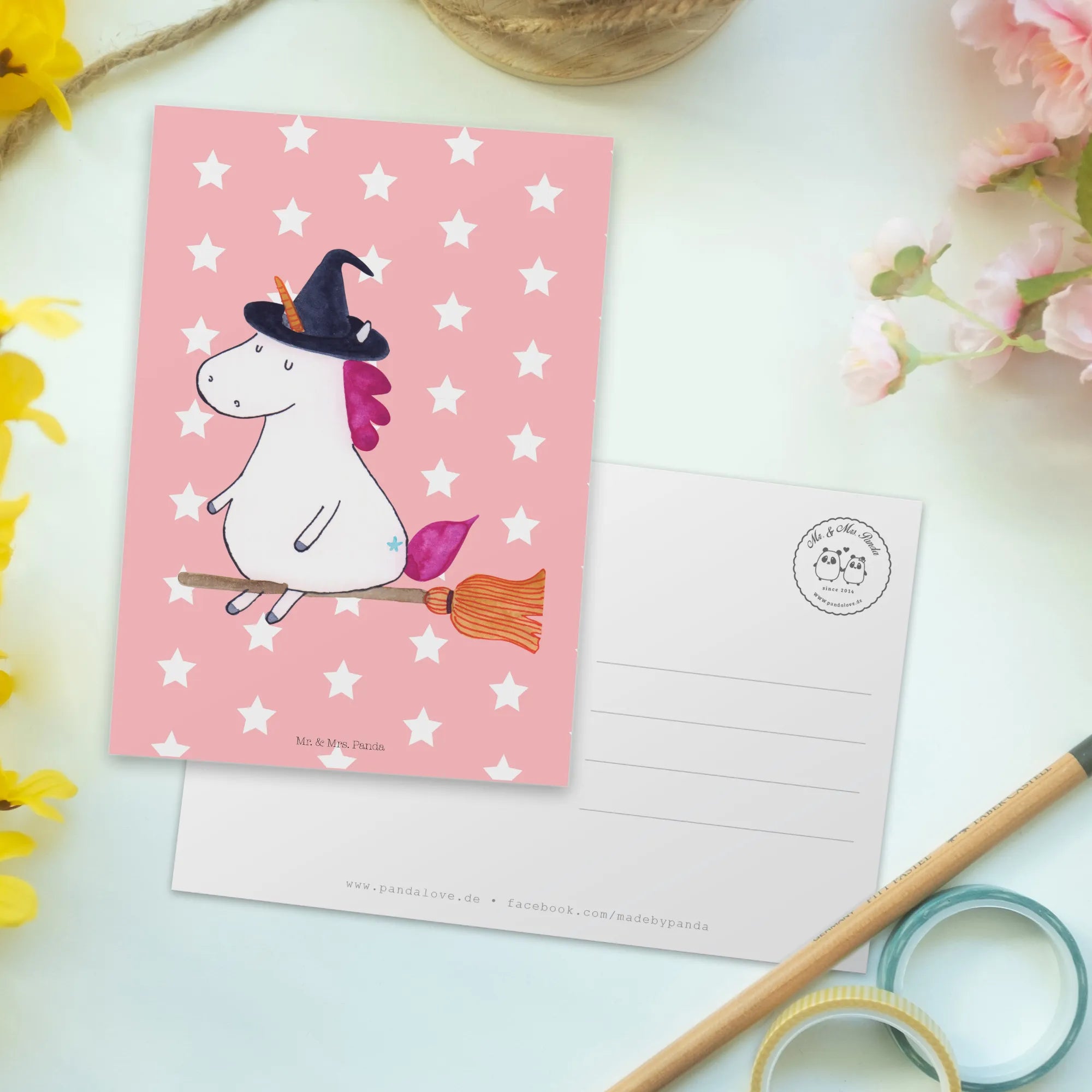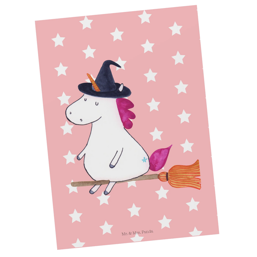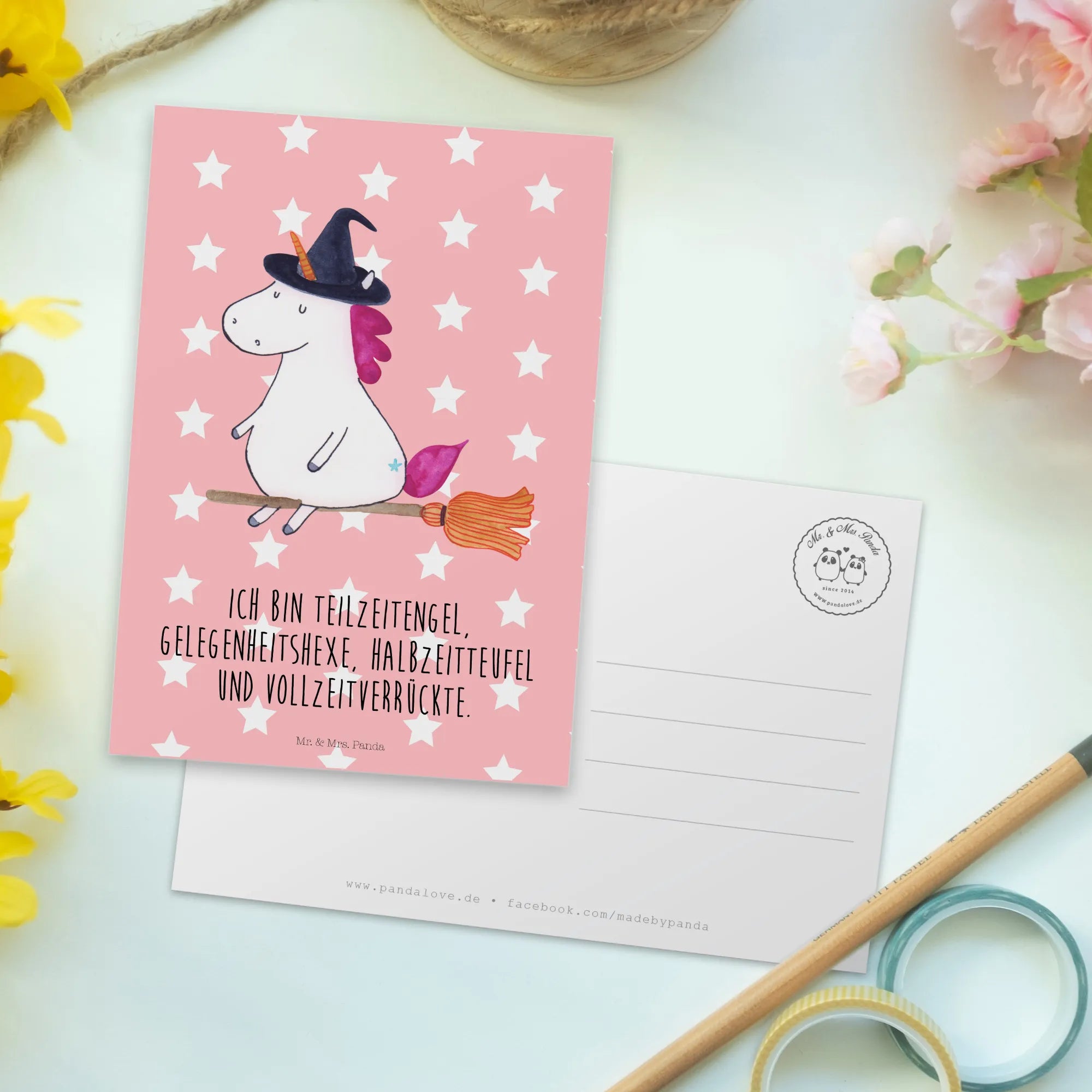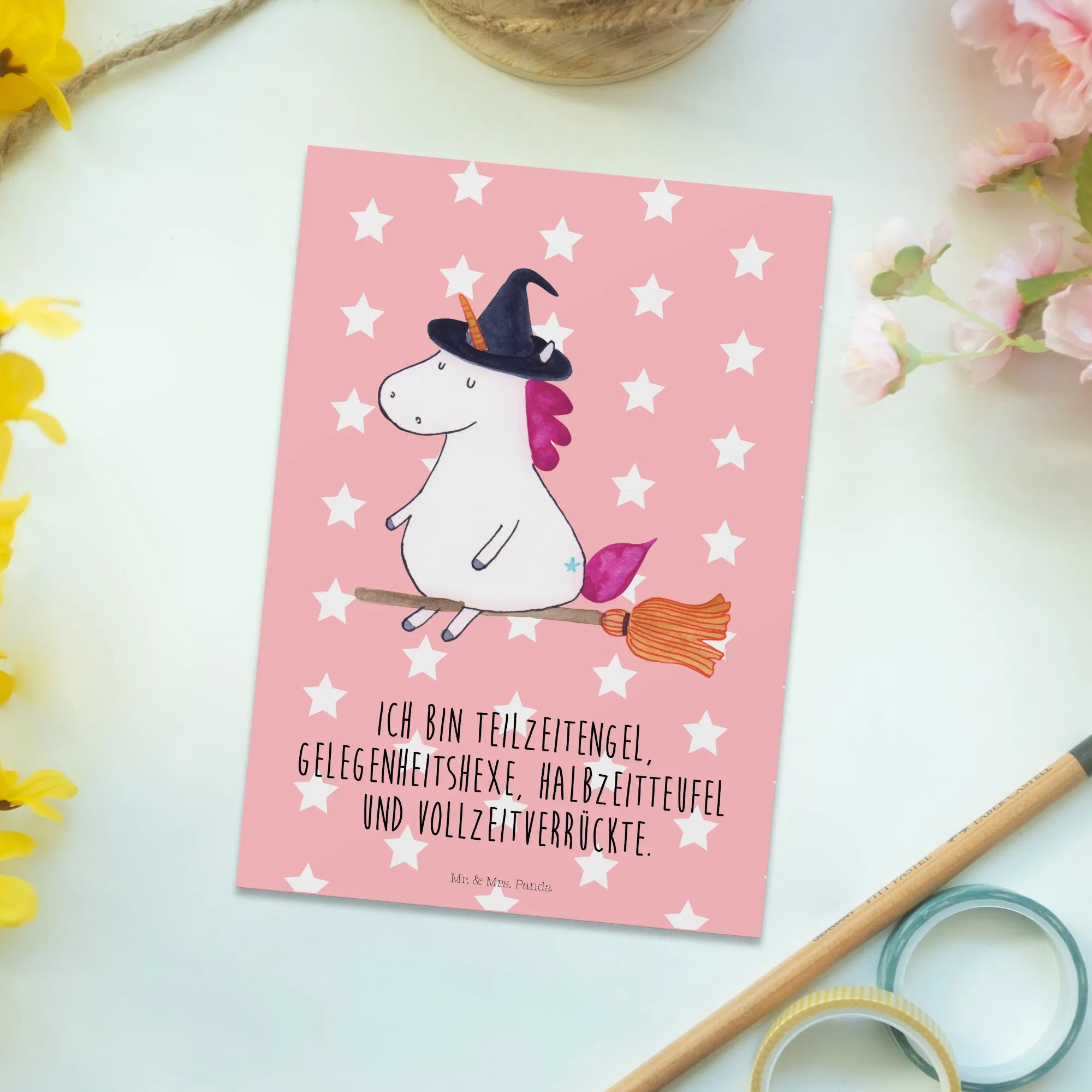Du liebst Einhörner und alles, was magisch und ein bisschen verrückt ist? Dann ist die Postkarte "Einhorn Hexe" aus der zauberhaften Einhorn-Kollektion von Mr. & Mrs. Panda genau das Richtige für dich!