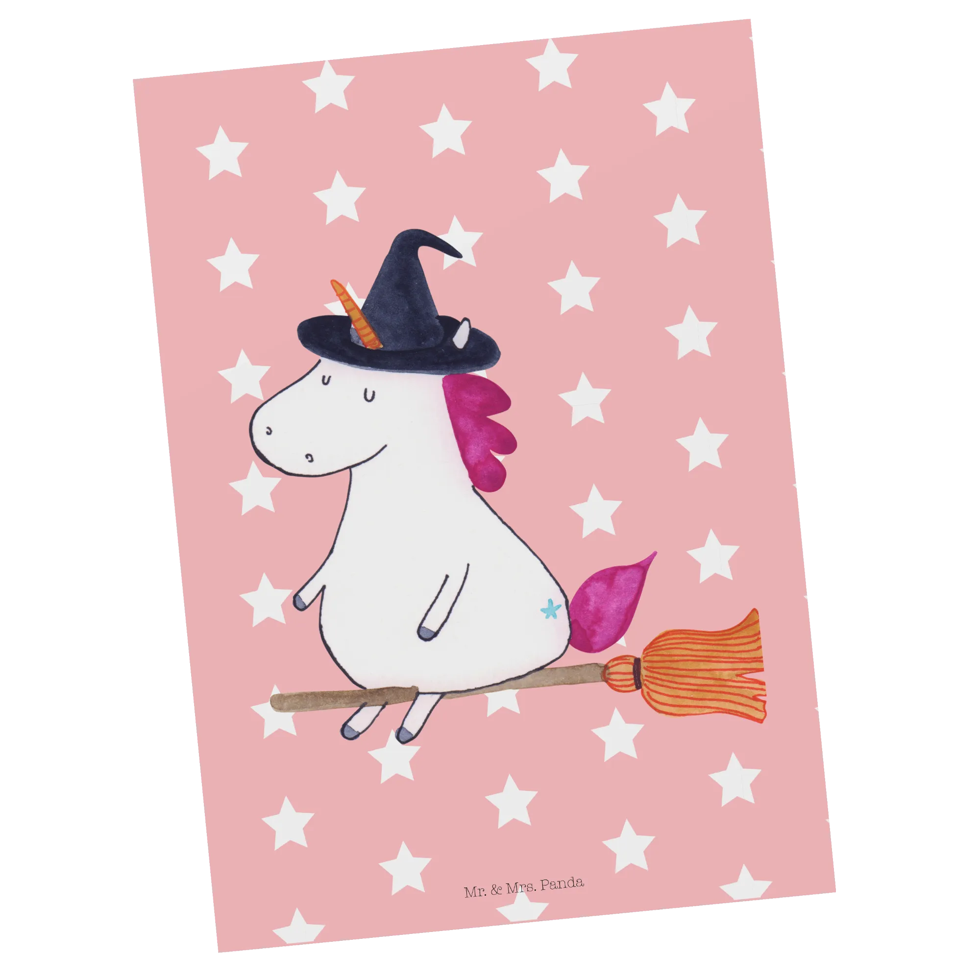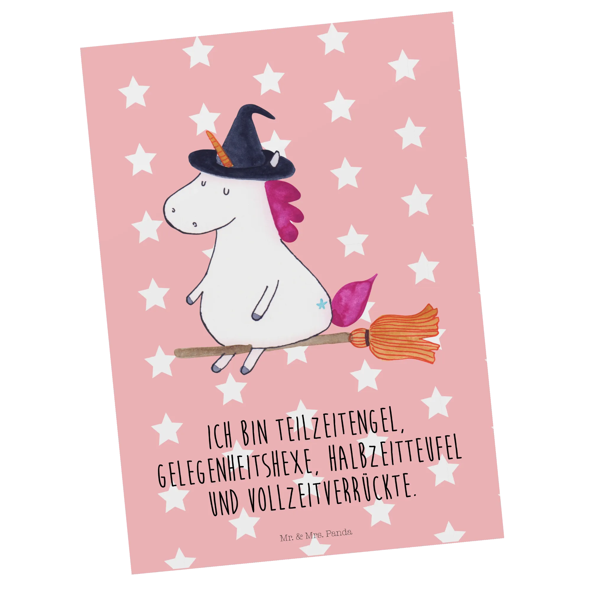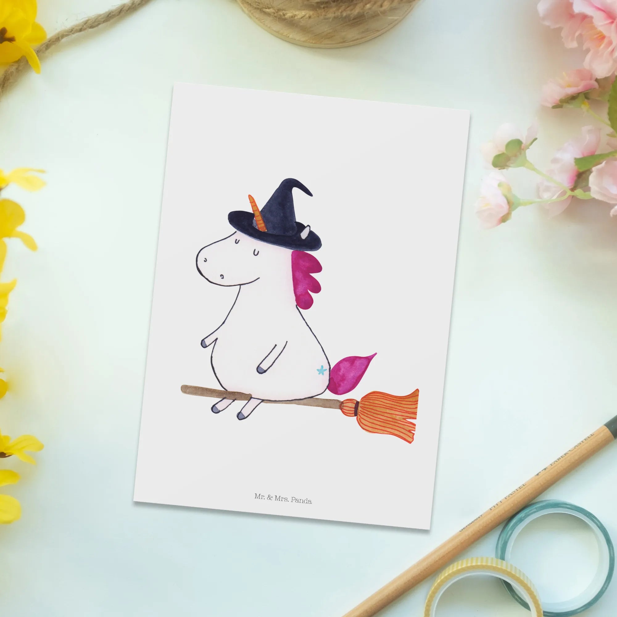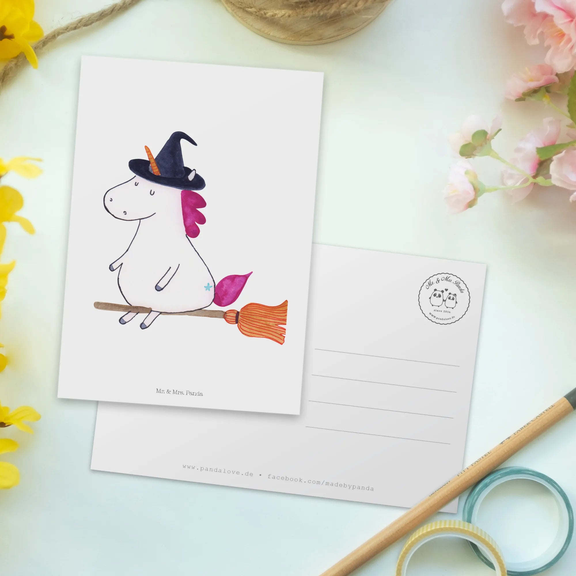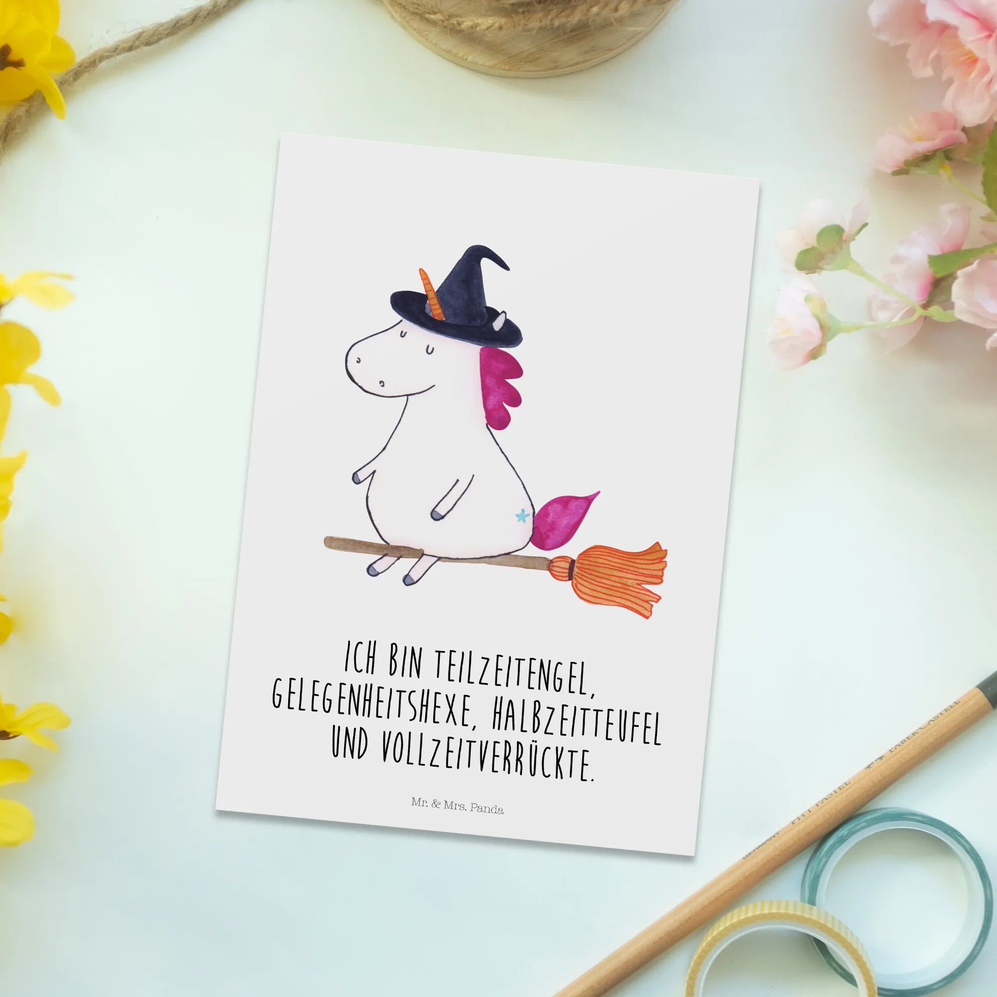 Du liebst Einhörner und alles, was magisch und ein bisschen verrückt ist? Dann ist die Postkarte "Einhorn Hexe" aus der zauberhaften Einhorn-Kollektion von Mr. & Mrs. Panda genau das Richtige für dich!