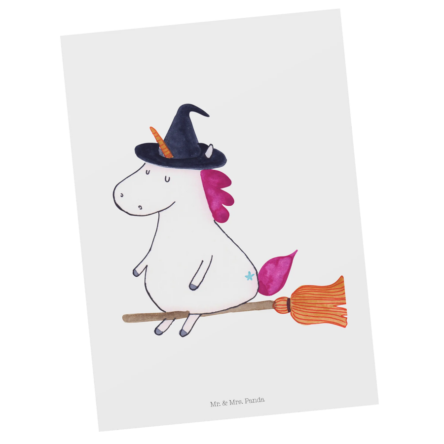 Du liebst Einhörner und alles, was magisch und ein bisschen verrückt ist? Dann ist die Postkarte "Einhorn Hexe" aus der zauberhaften Einhorn-Kollektion von Mr. & Mrs. Panda genau das Richtige für dich!