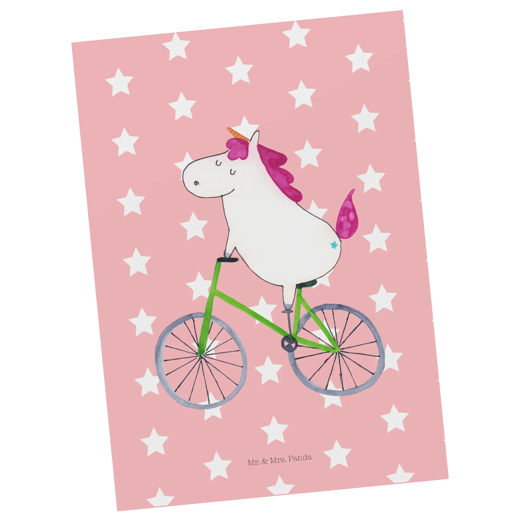 Freunde von Einhörnern, Radfahrern und der bunten Welt der Fantasie werden begeistert sein! Hergestellt aus hochwertigem 300 Gramm Karton, überzeugt die Postkarte nicht nur durch ihr niedliches Design, sondern auch durch die hohe Qualität. Jedes Detail wurde von Mrs. Panda handgezeichnet, was die Karte zu einem echten Unikat macht.