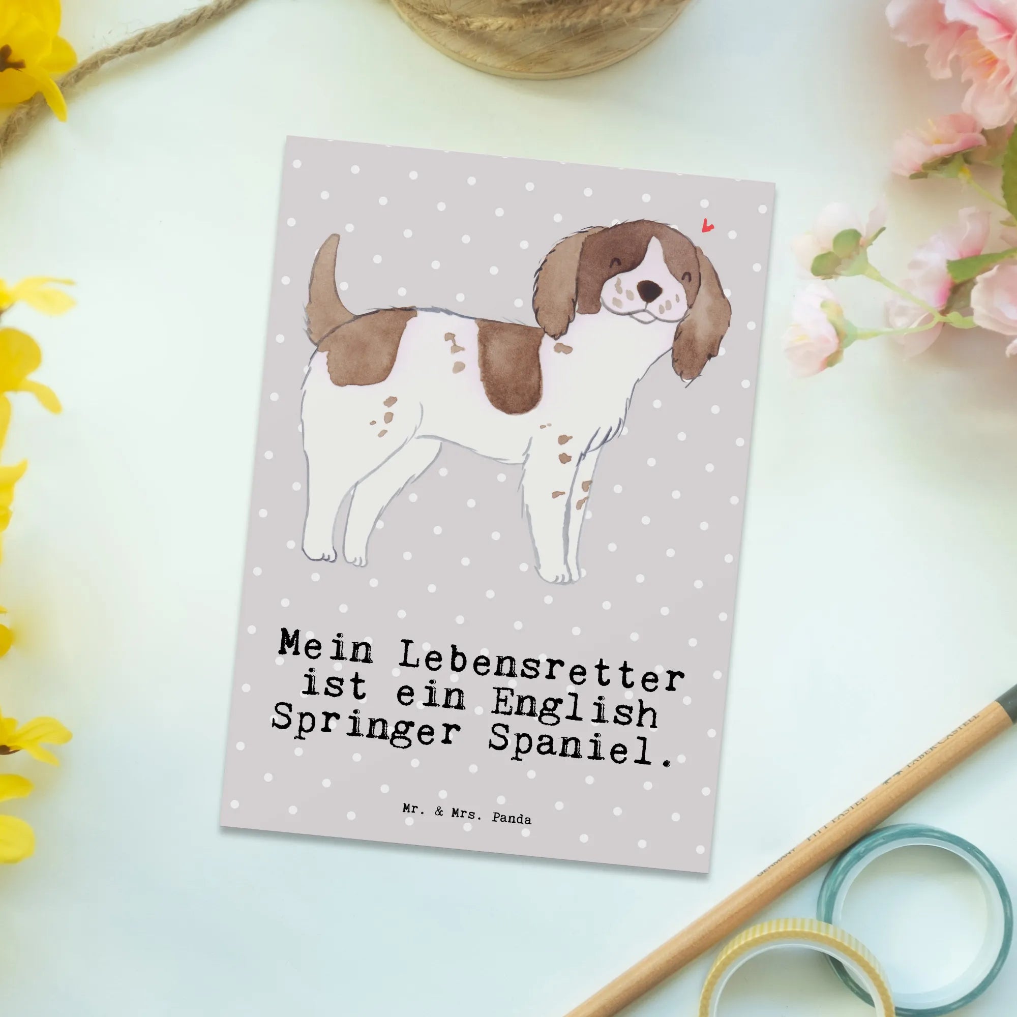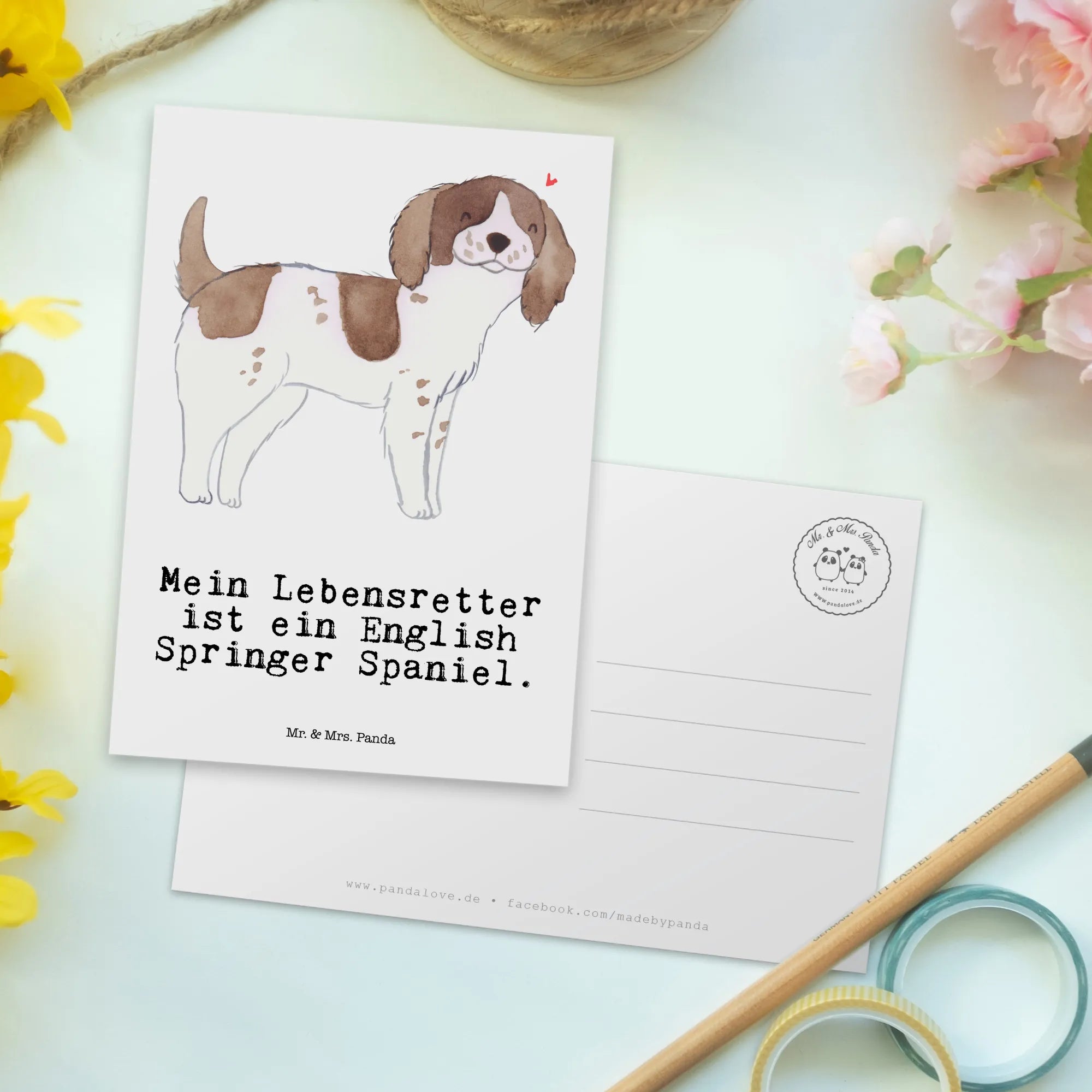 Postkarte English Springer Spaniel Lebensretter - mit Spruch - Weiß