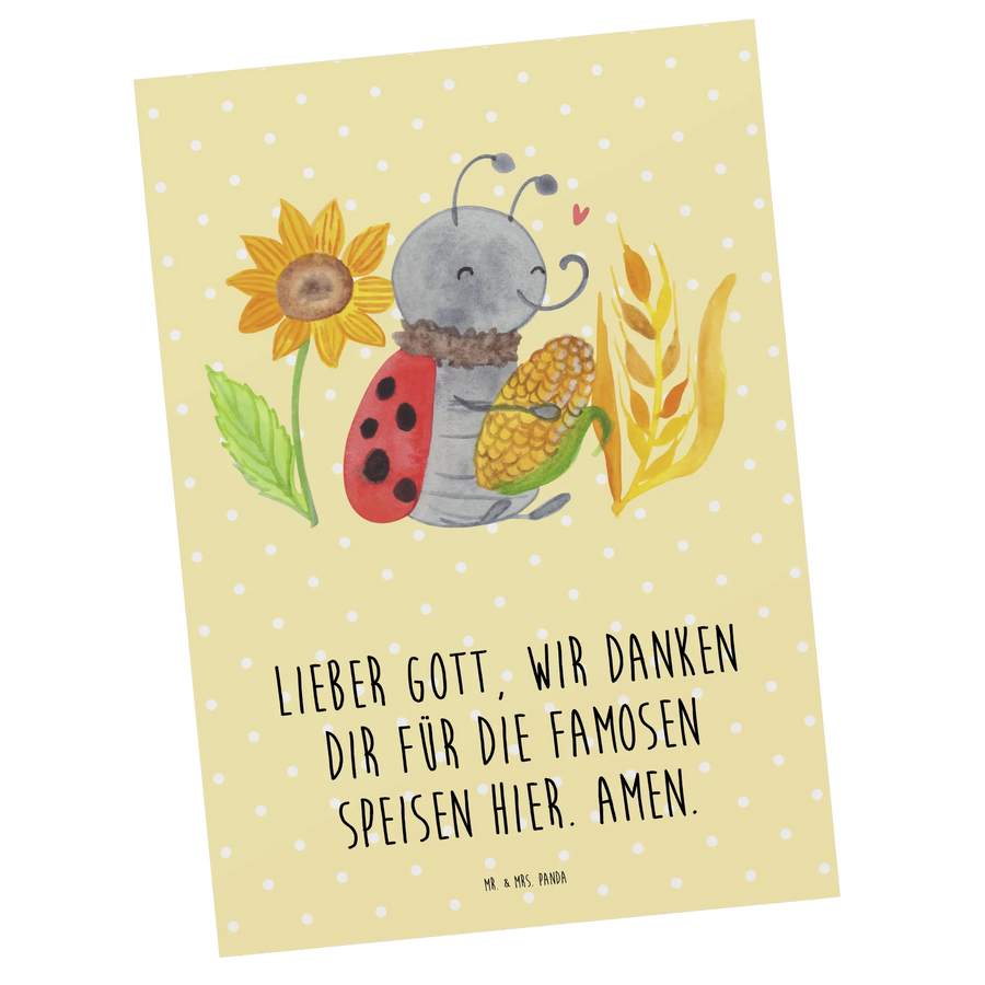 Die Erntedank Smörle Postkarte von Mr. & Mrs. Panda ist das perfekte Geschenk für all jene, die die Schönheit der herbstlichen Erntezeit zum Ausdruck bringen möchten. Mit einem liebevoll handgezeichneten Motiv eines zufriedenen Marienkäfers, der einen Maiskolben umarmt, und strahlenden Sonnenblumen, bringt diese Postkarte ein Stück Natur direkt zu dir nach Hause. Die Farben sind lebendig und einladend, perfekt für den großen Tag des Erntedankfestes oder einfach nur, um jemanden Dankbarkeit zu zeigen.