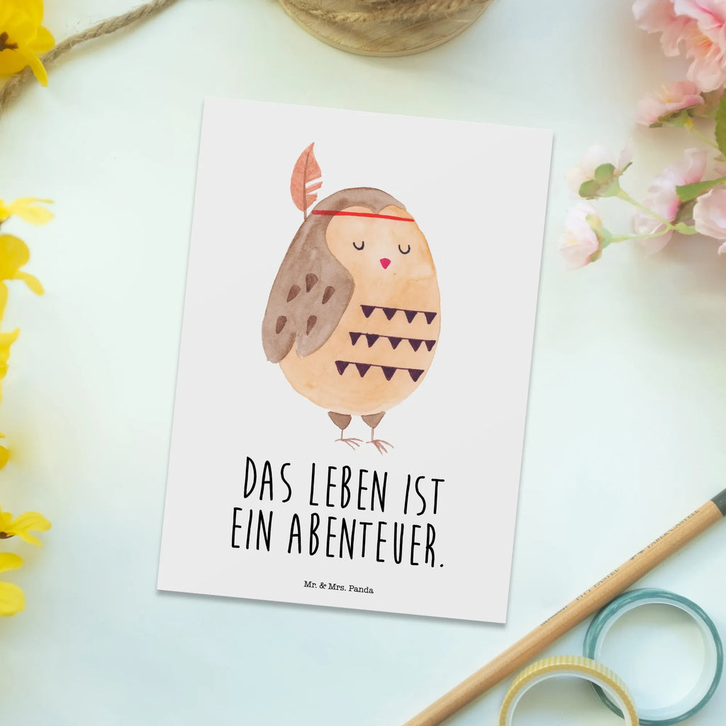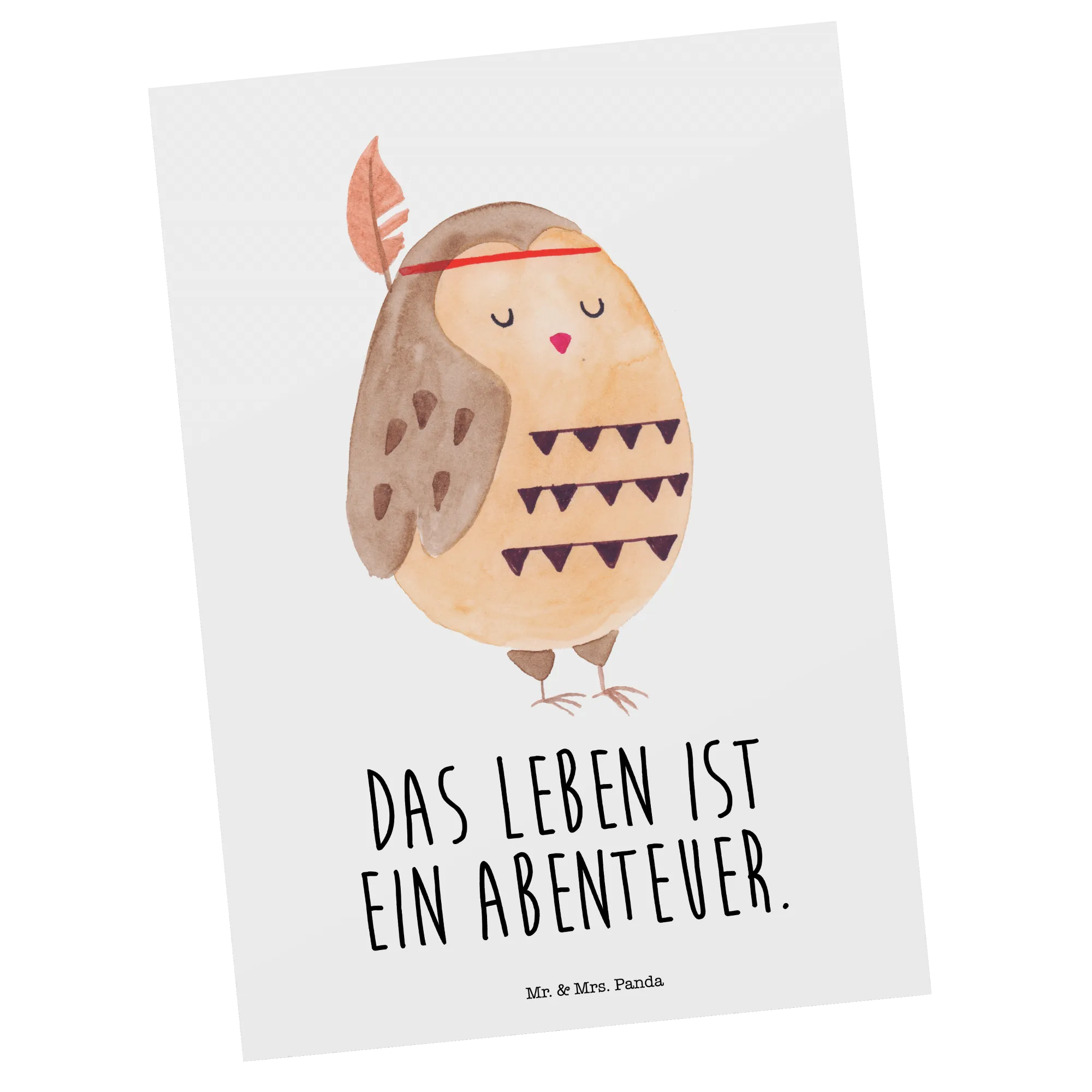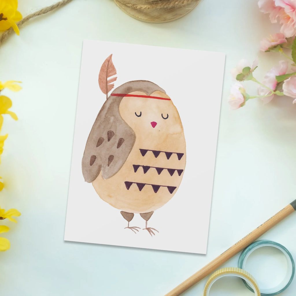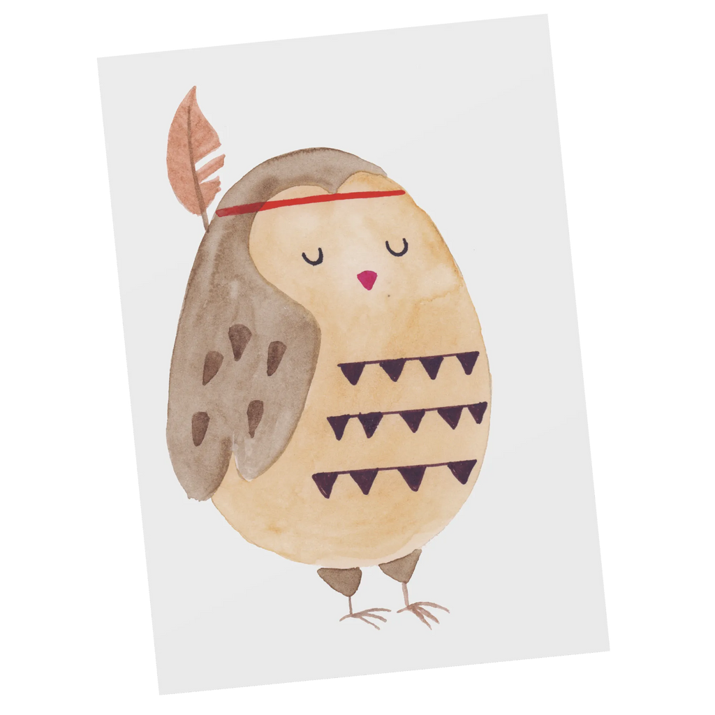 Postkarte Eule Federschmuck - mit Spruch - Weiß