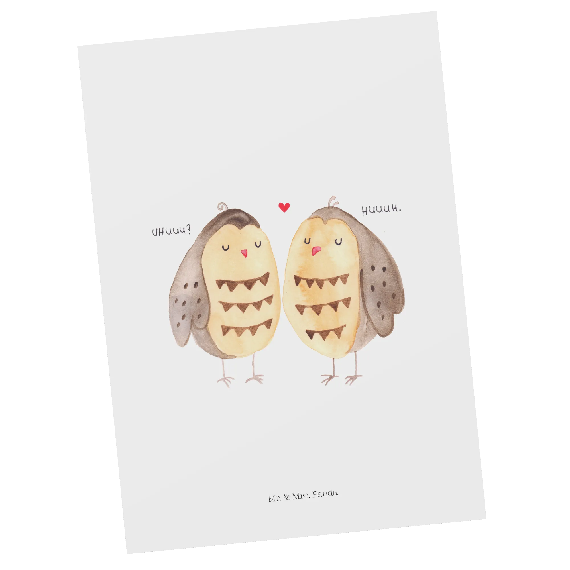 Postkarte Eulen Liebe - mit Spruch - Weiß