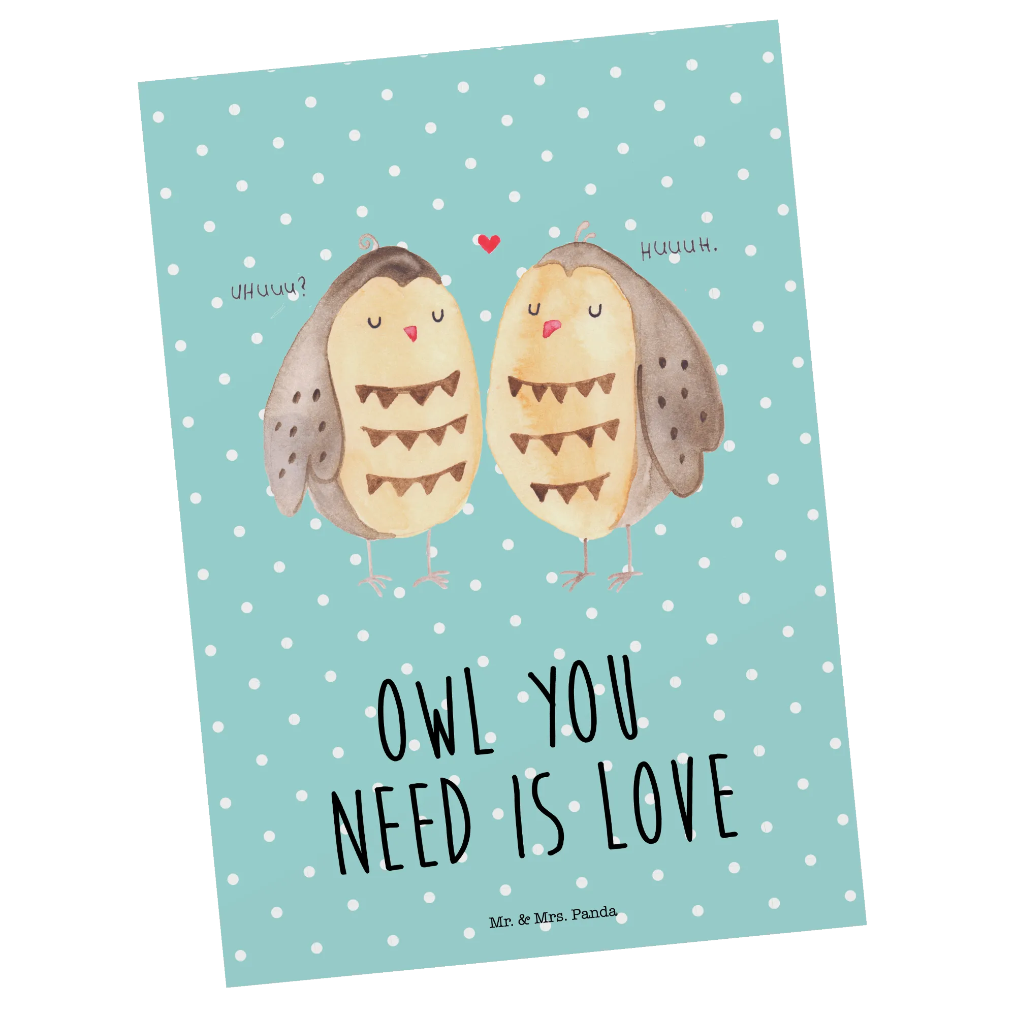 Die wunderschöne Postkarte mit dem Motiv Eule Liebe von Mr. & Mrs. Panda ist das perfekte Geschenk für alle, die Zuneigung und Liebe auf eine süße und kreative Weise ausdrücken möchten. Mit dem süßen Slogan 'Owl you need is love' zaubert diese Karte jedem ein Lächeln ins Gesicht. Diese Postkarte ist nicht nur ein schöner Gruß, sondern auch eine wunderbare Möglichkeit, um zu zeigen, wie viel dir eine Person bedeutet. Egal ob zu Geburtstagen, Hochzeiten oder einfach nur so - sie ist vielseitig einsetzbar und ein echtes Highlight unter den Grußkarten.