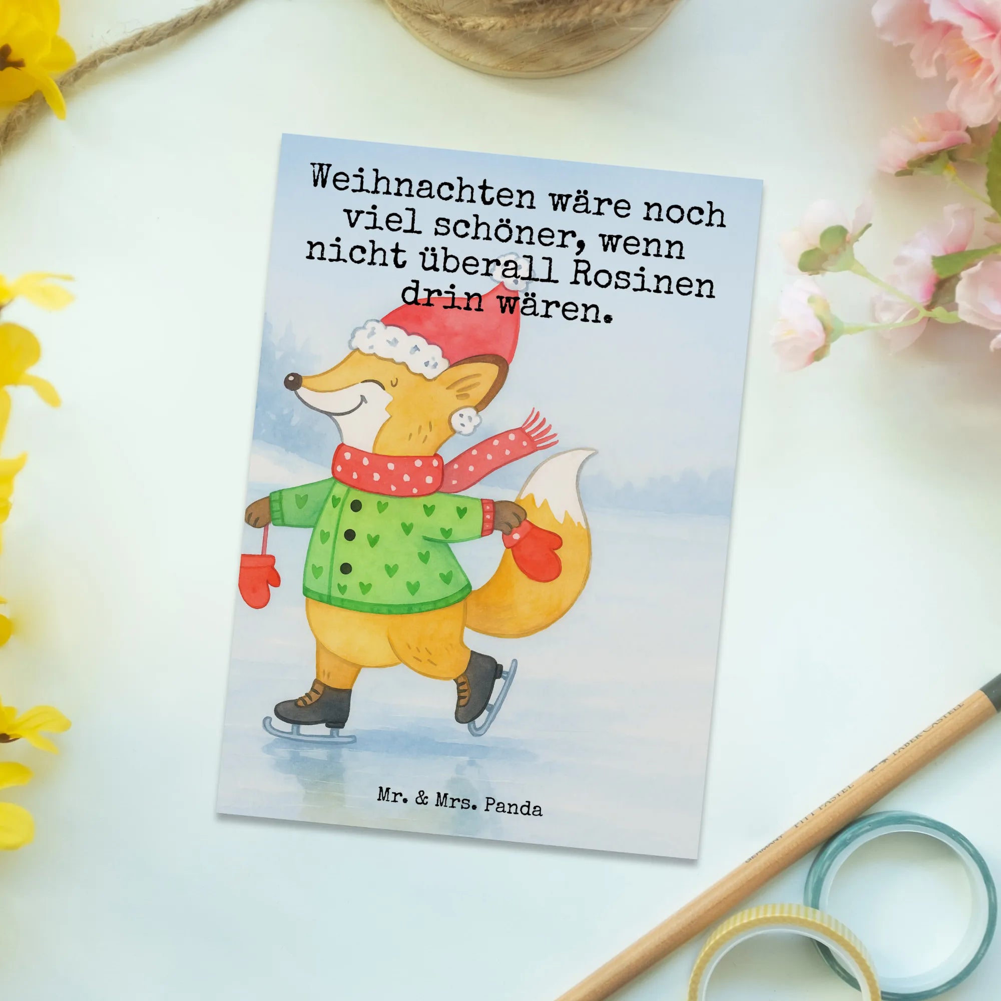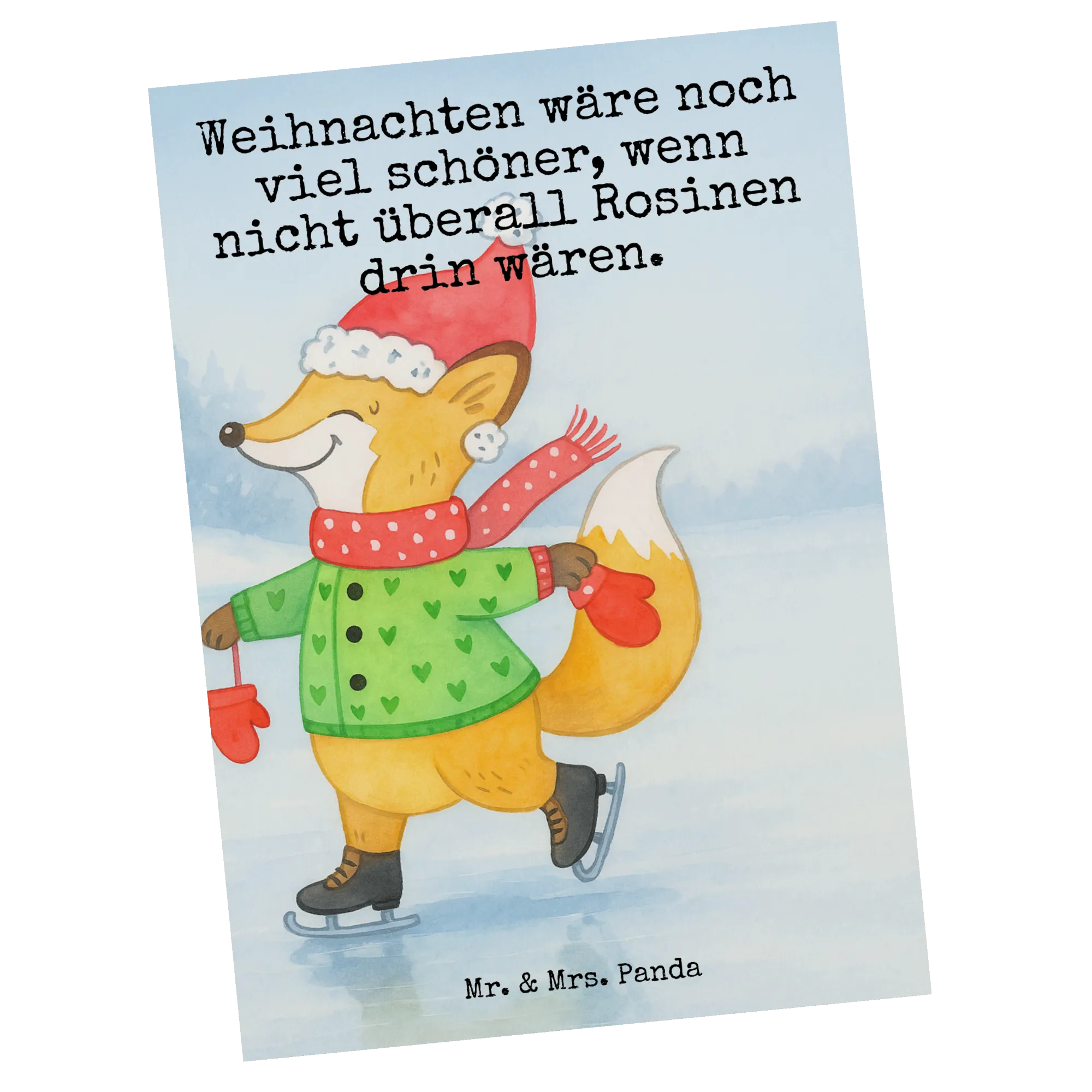 Juhuu – die Winter Kollektion ist da! Unsere Postkarte "Fuchs Schlittschuhe" von Mr. & Mrs. Panda bringt dir ein kleines Stück Weihnachtszauber direkt in den Briefkasten. Der fröhliche Fuchs auf Schlittschuhen trägt einen grünen Mantel mit Herzchen, einen roten Schal mit weißen Punkten und eine passende Mütze. Kleine rote Fäustlinge baumeln an seiner Pfote und sein Gesicht strahlt pure Weihnachtsfreude. 🎄