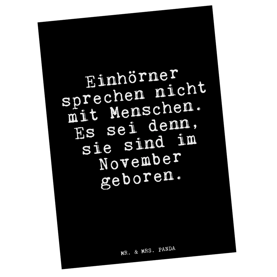 Postkarte Fun Talk Einhörner sprechen nicht mit Menschen. Es sei denn, sie sind im November geboren.