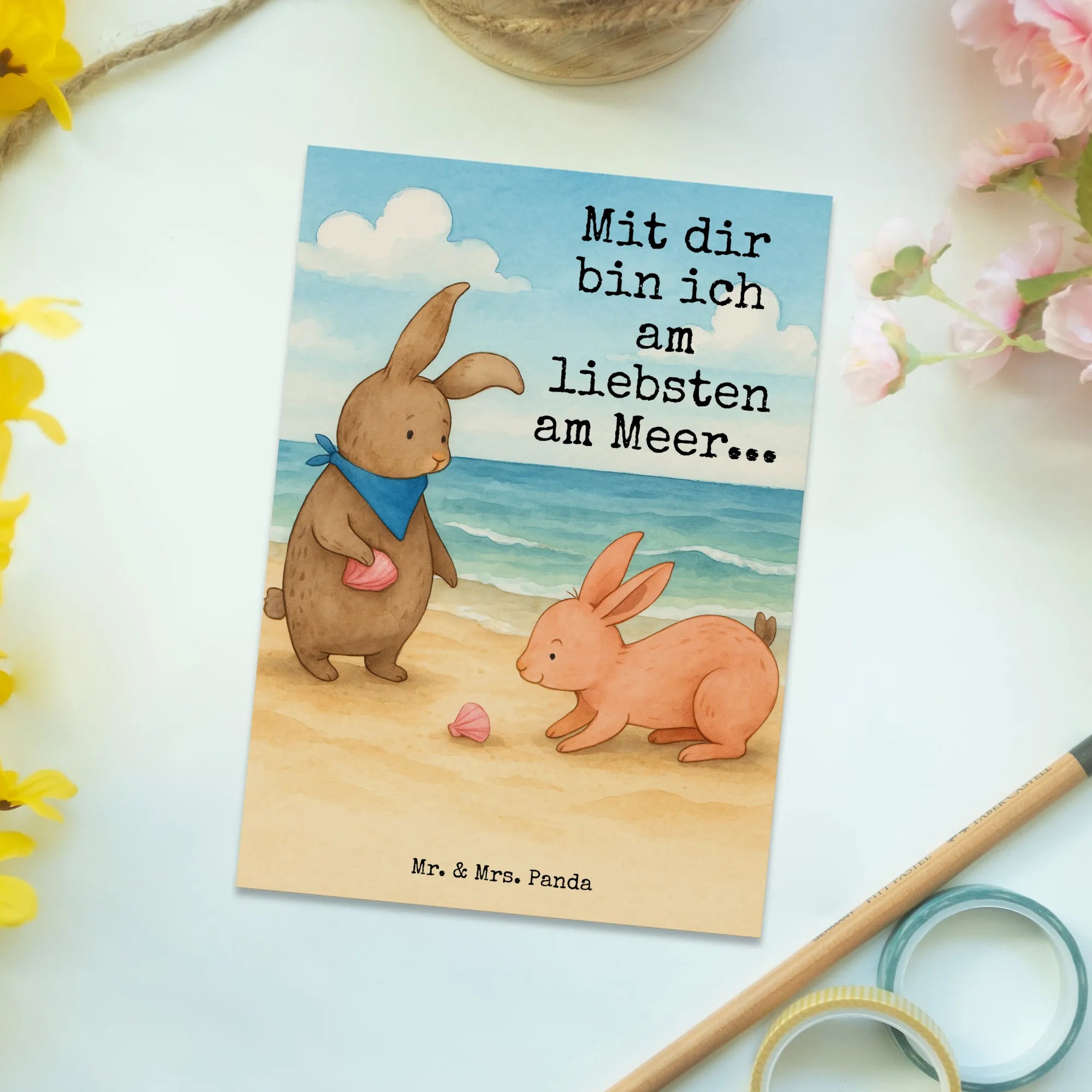 Verschenke ein Lächeln und ein Stück Meer – mit der Postkarte Hasen Muschel von Mr. & Mrs. Panda. 🌊🐰💌