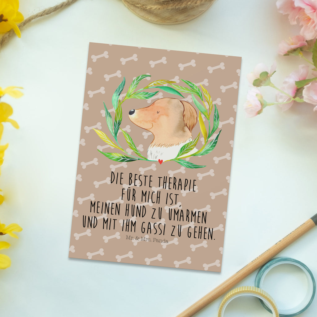 Die Postkarte mit dem liebevollen Motiv "Hund Ranke" von Mr. & Mrs. Panda ist der perfekte Gruß für alle Hunde-Liebhaber! Egal, ob Du sie zum Geburtstag, als Dankeskarte oder einfach so versenden möchtest, diese Karte bringt Freude in jeden Briefkasten. Das niedliche Design zeigt einen kleinen Hund mit einer Blume und darunter den spritzigen Spruch: "Die beste Therapie für mich ist, meinen Hund zu umarmen und mit ihm Gassi zu gehen." Mit dieser Karte zeigst Du Deine Liebe zu Hunden und Deiner besten Freundin oder Freund, die selbst Hunde besitzen.
