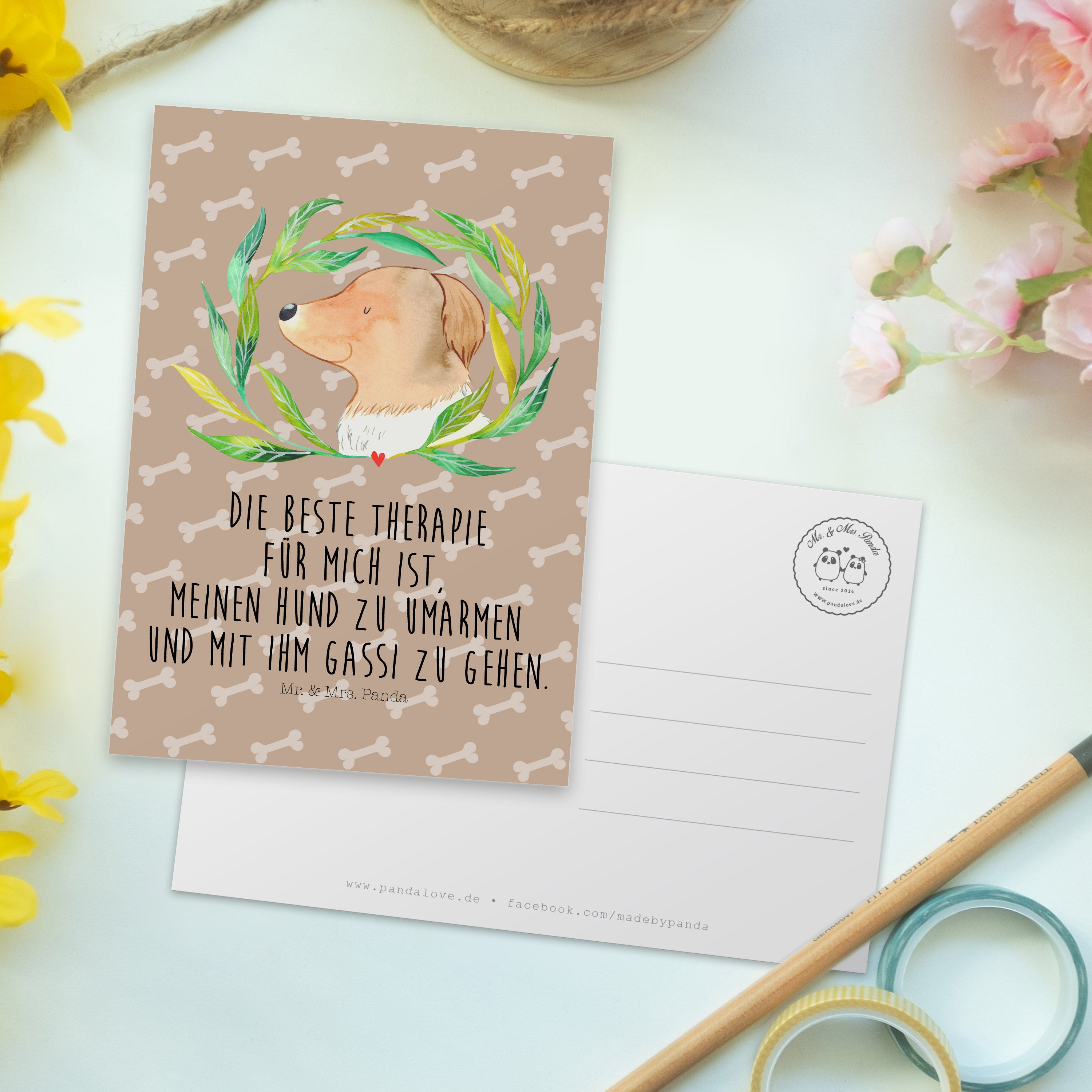 Schenke Freude, Wärme und die Liebe für Hunde mit der Postkarte von Mr. & Mrs. Panda. Perfekt auch als kleines Mitbringsel oder um Deine Dankbarkeit zu zeigen. Also, mach Dich auf den Weg, um Freude zu verbreiten und Deinen liebsten Menschen ein Stück Hundeglück zukommen zu lassen!