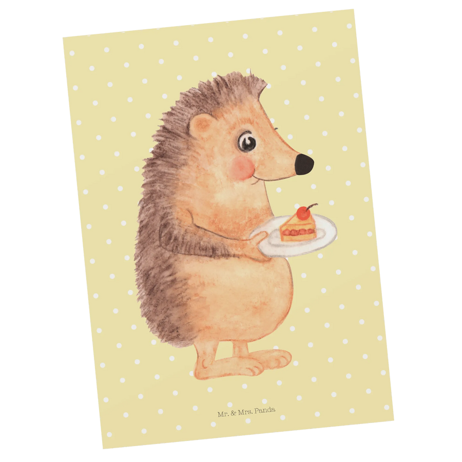 Postkarte Igel Kuchenstück - ohne Spruch - Gelb Pastell