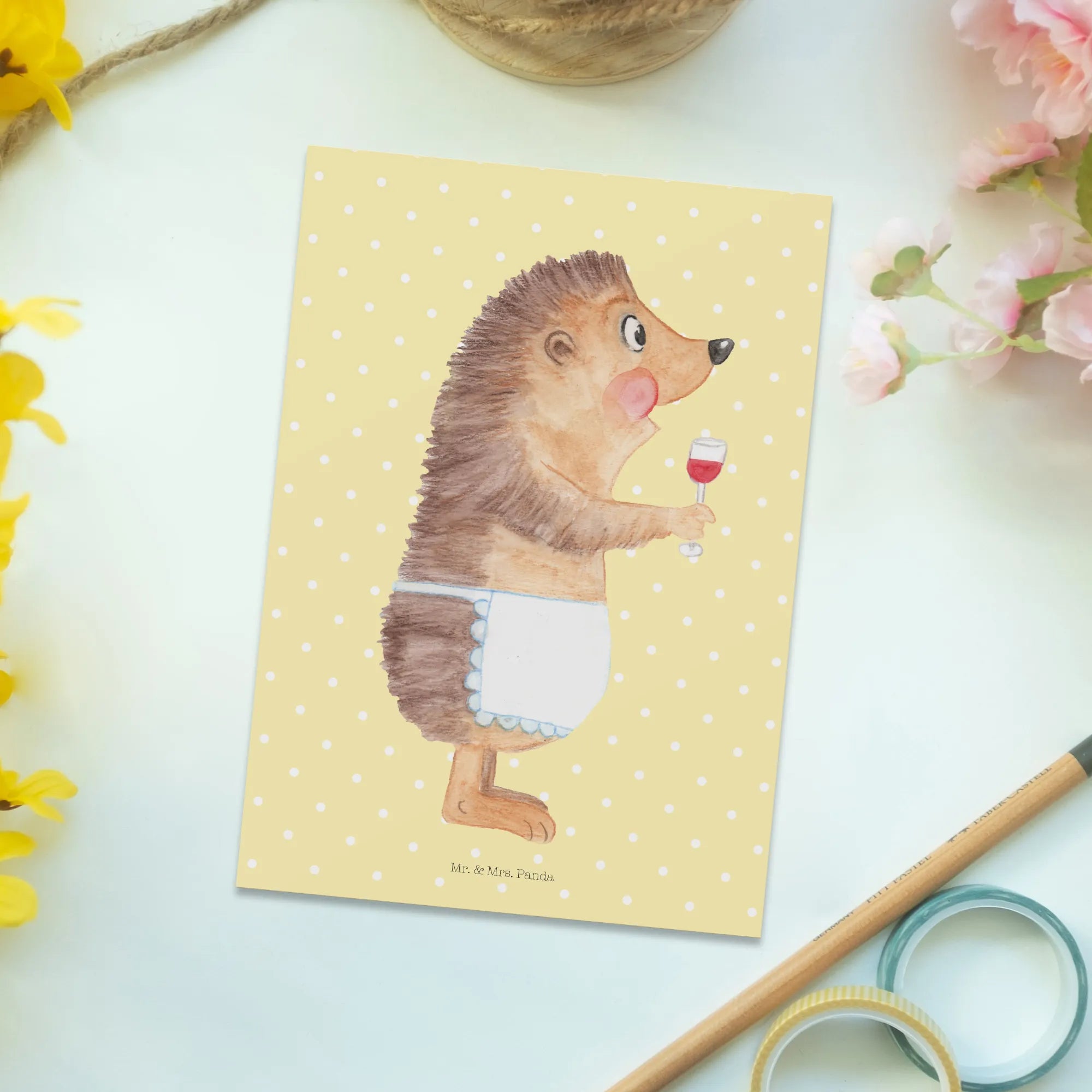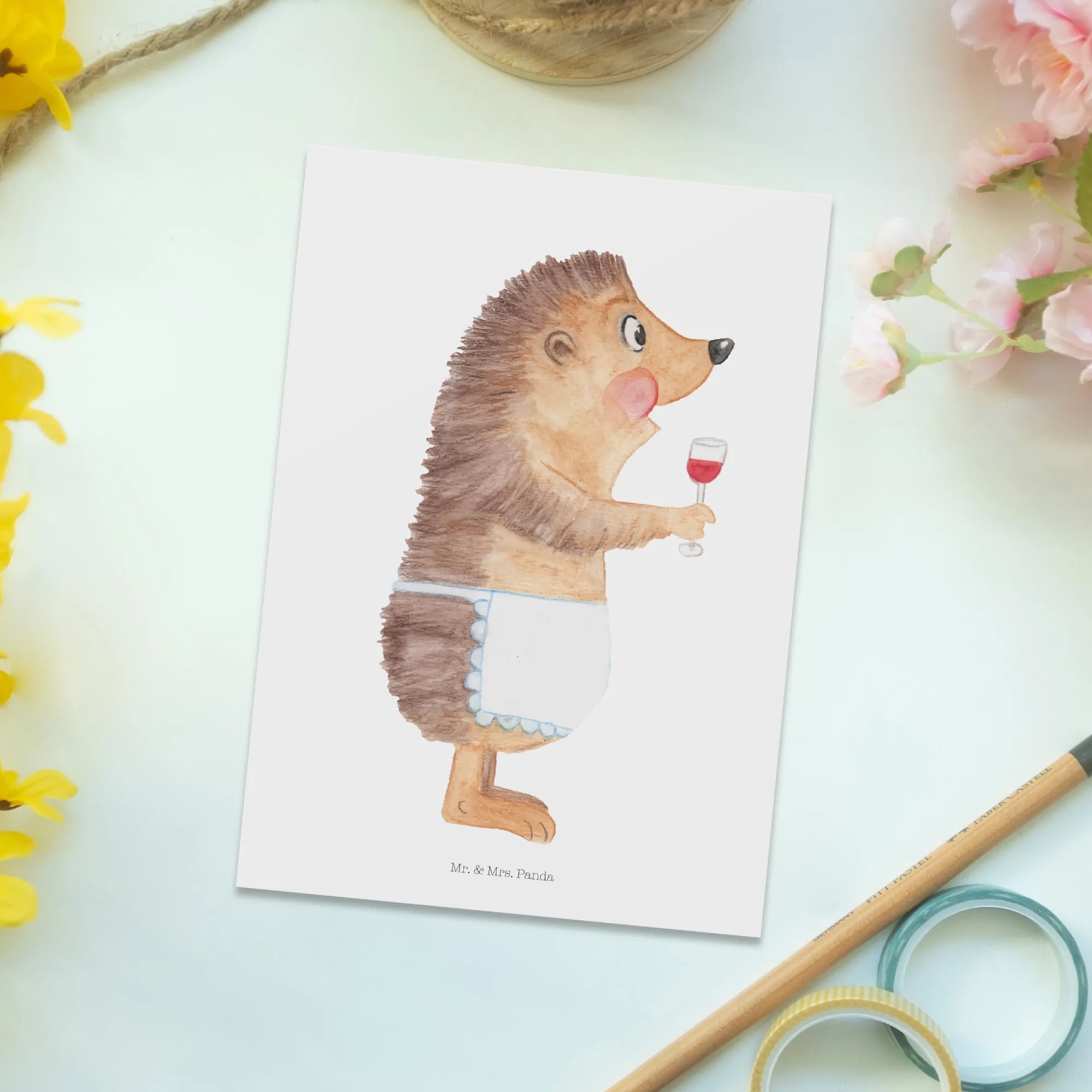 Postkarte „Igel mit Wein“ – Small World Kollektion von Mr. & Mrs. Panda
