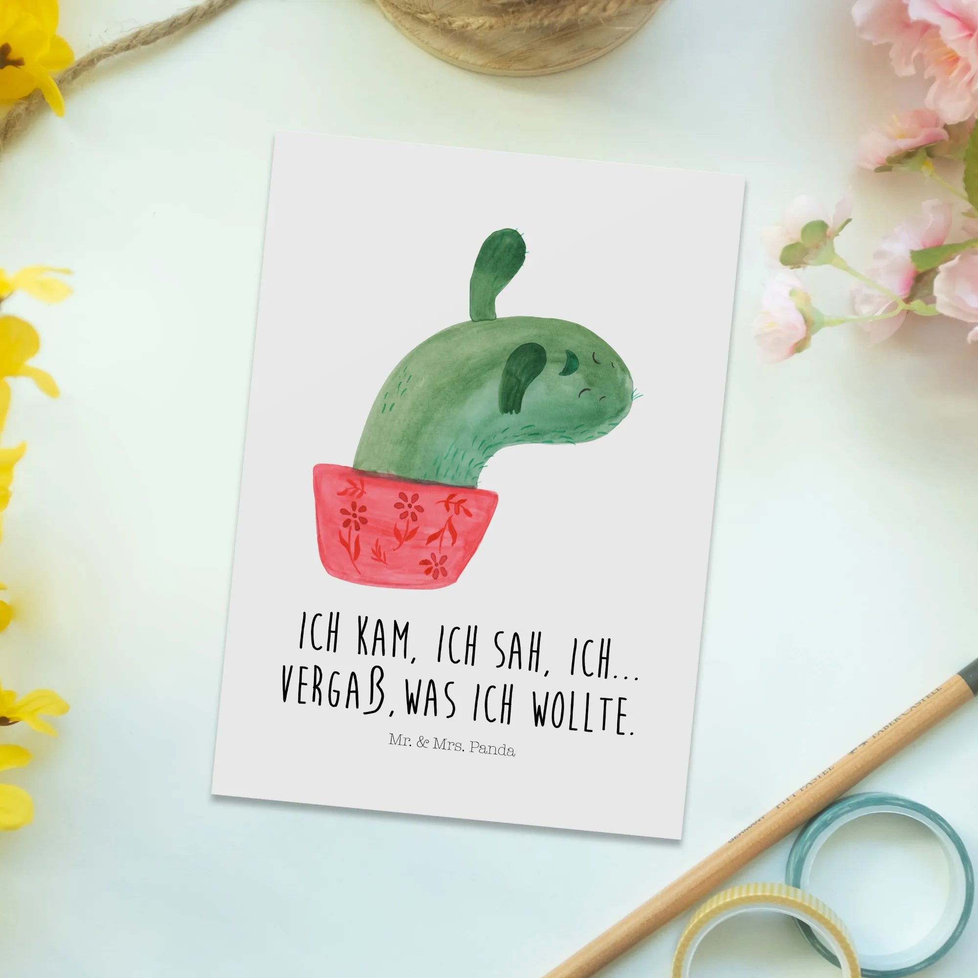 Die Postkarte "Kaktus Mamamia" aus der Kaktus - Kollektion von Mr. & Mrs. Panda ist das perfekte Geschenk für Freunde und Familie, die ein Lächeln brauchen! Mit ihrem fröhlichen, handgezeichneten Kaktus-Motiv und dem witzigen Spruch "Ich kam, ich sah, ich… vergaß, was ich wollte" bringt sie einen Hauch von Lebensfreude in jeden Briefkasten.