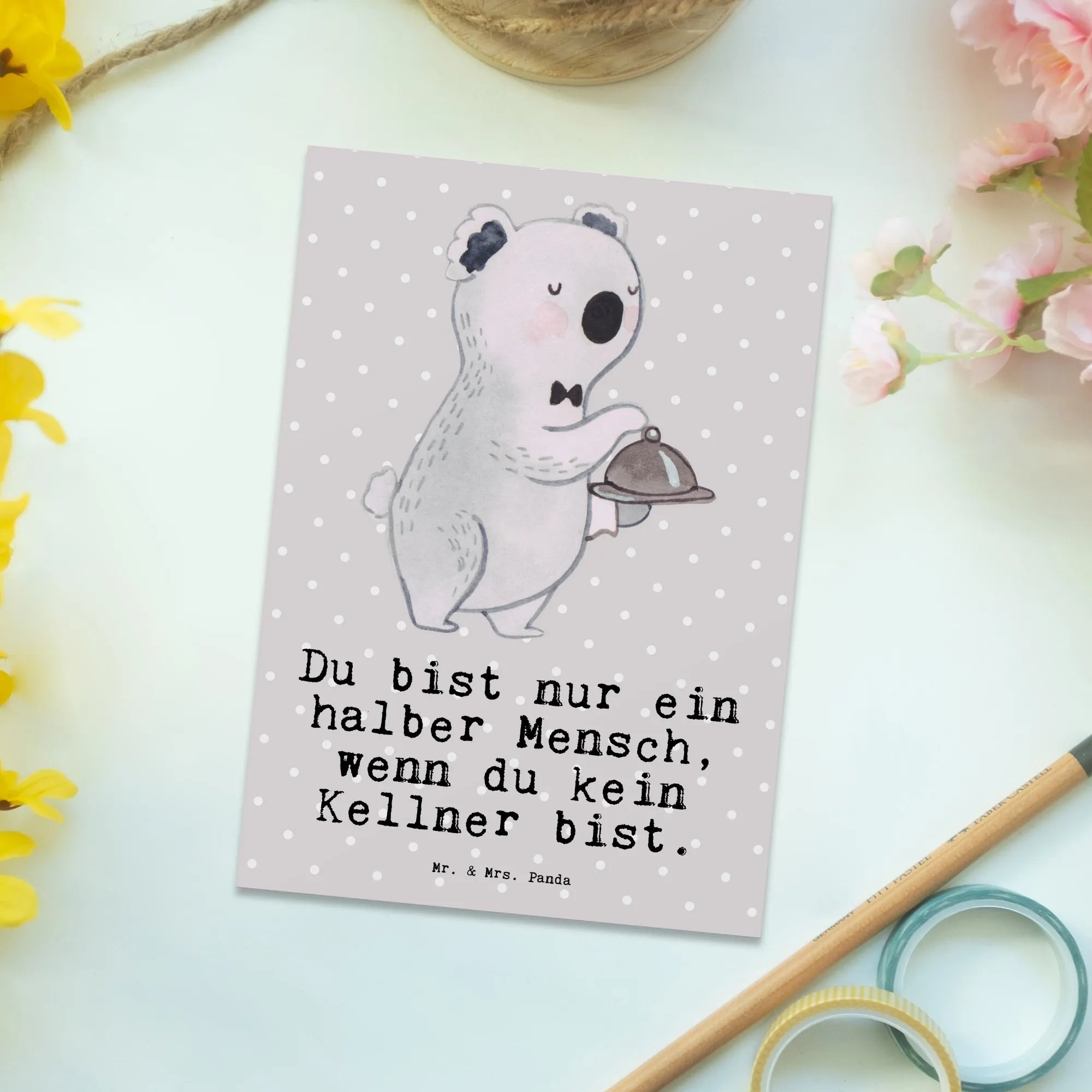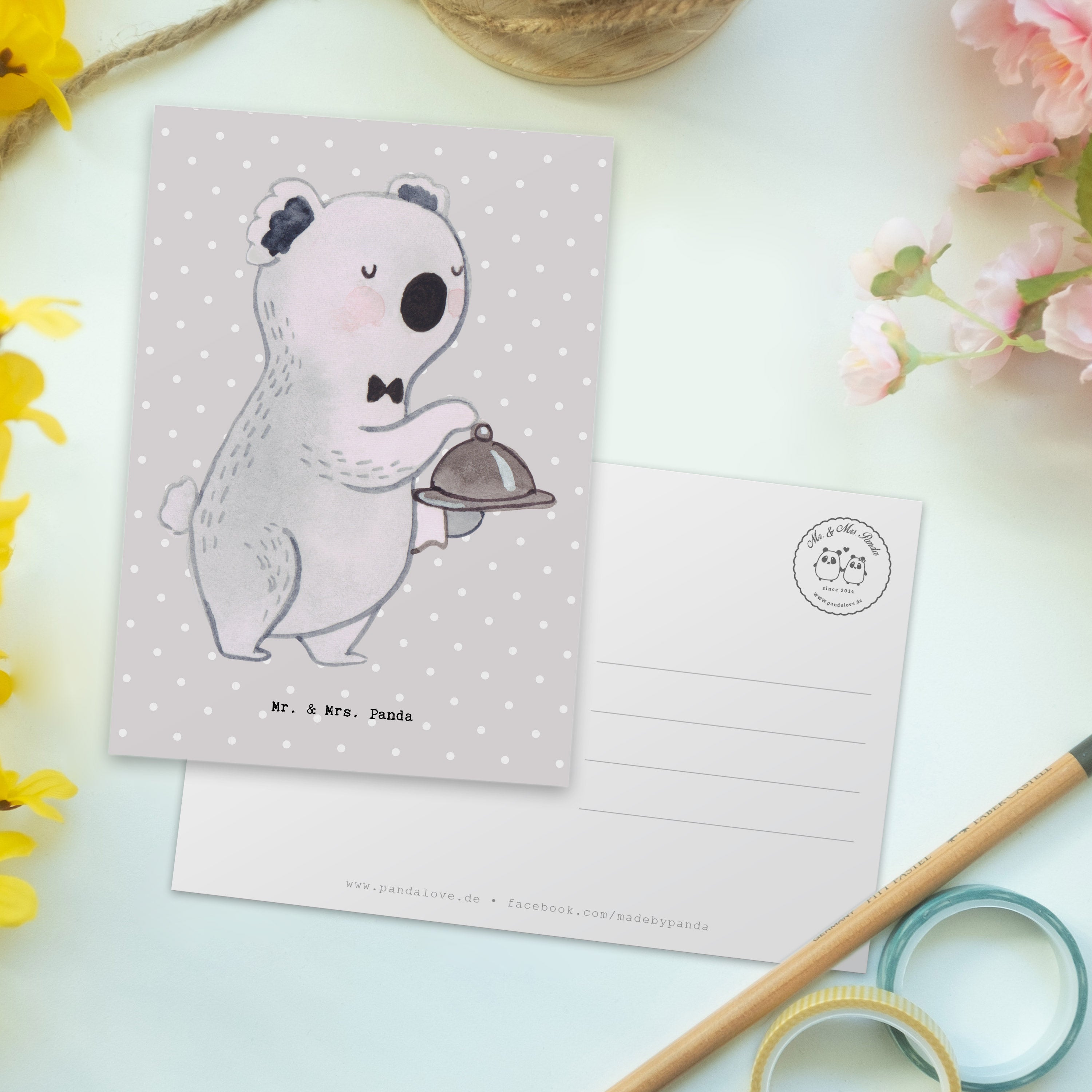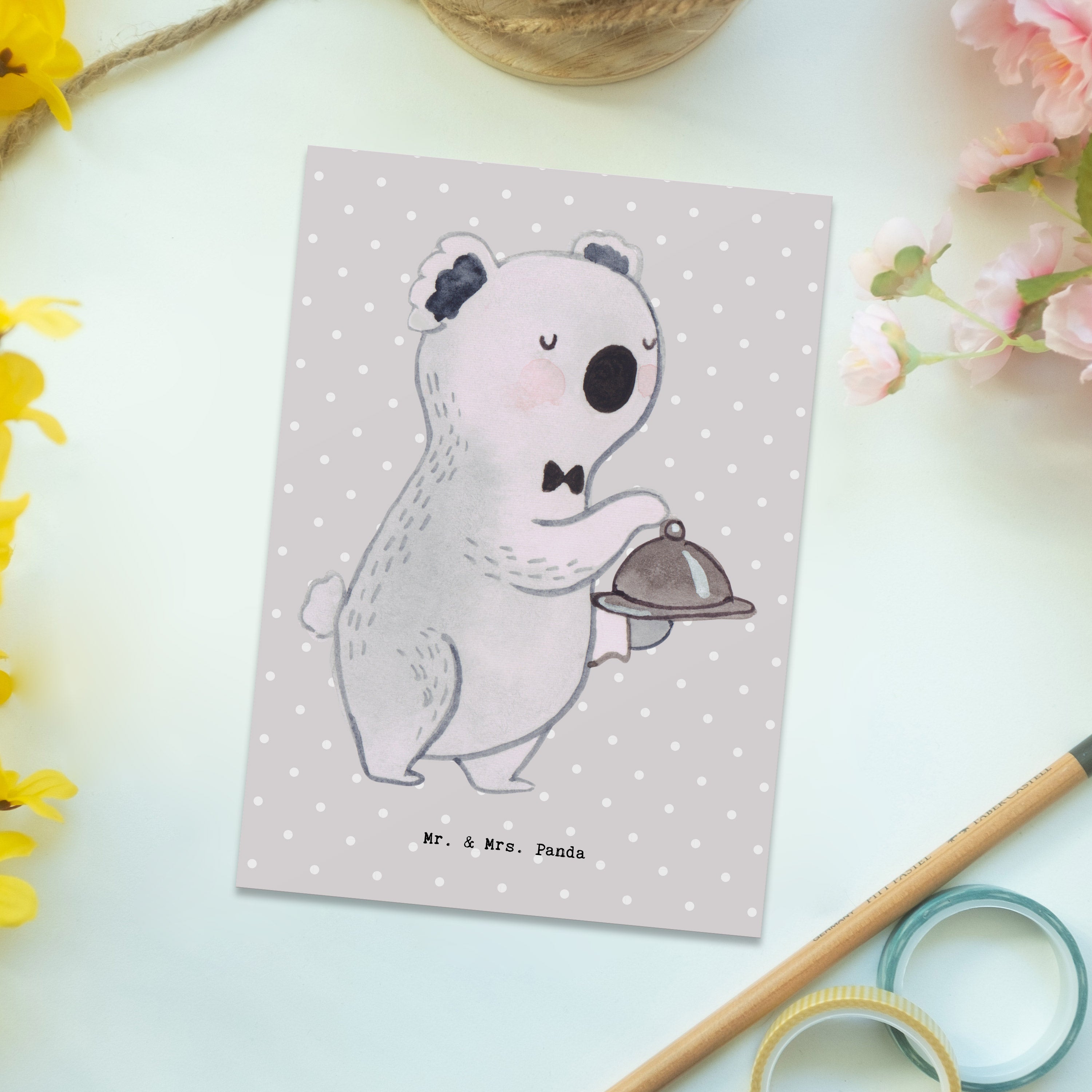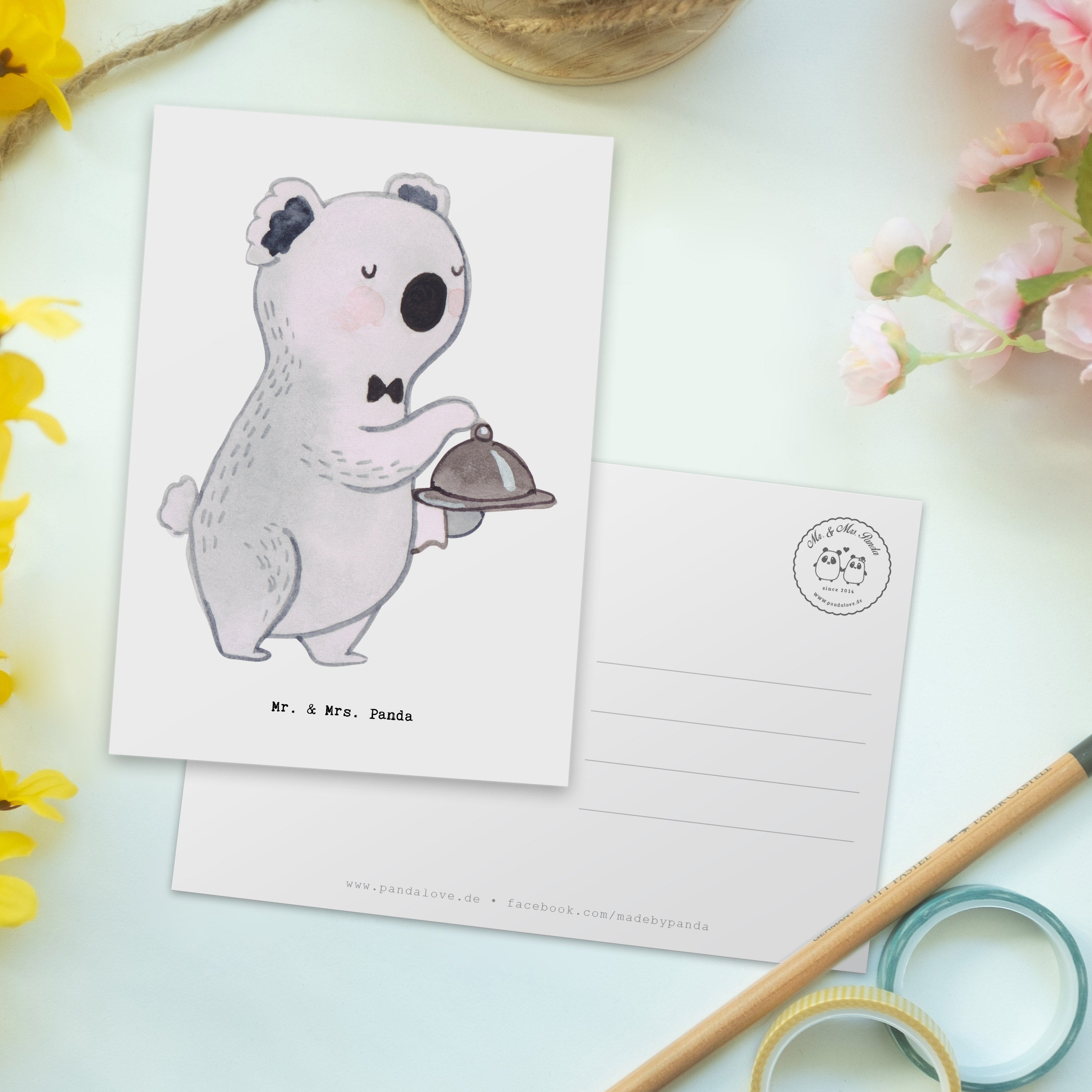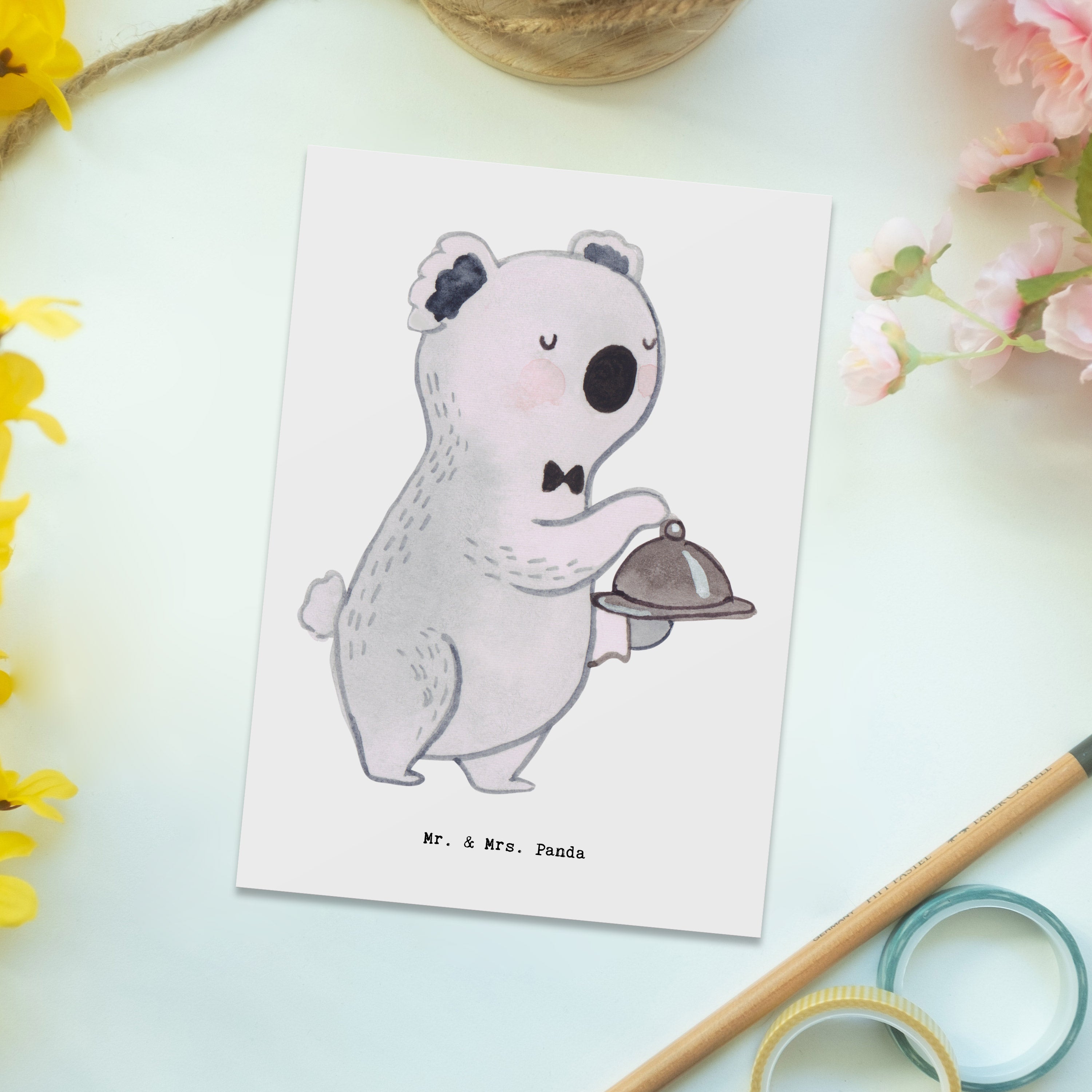 Postkarte Kellner mit Herz – Mr. & Mrs. Panda
