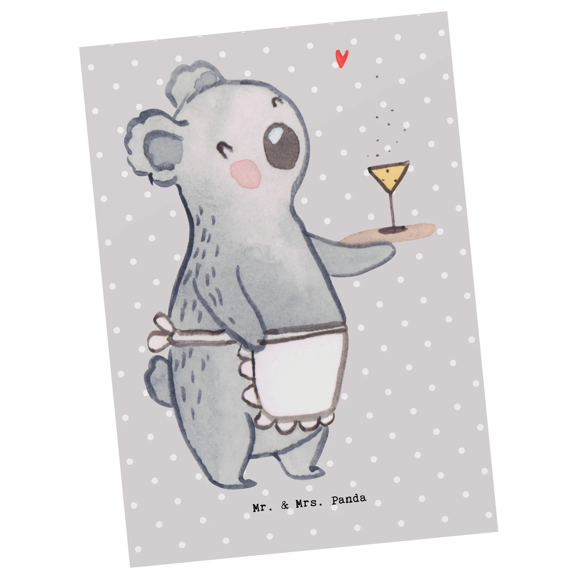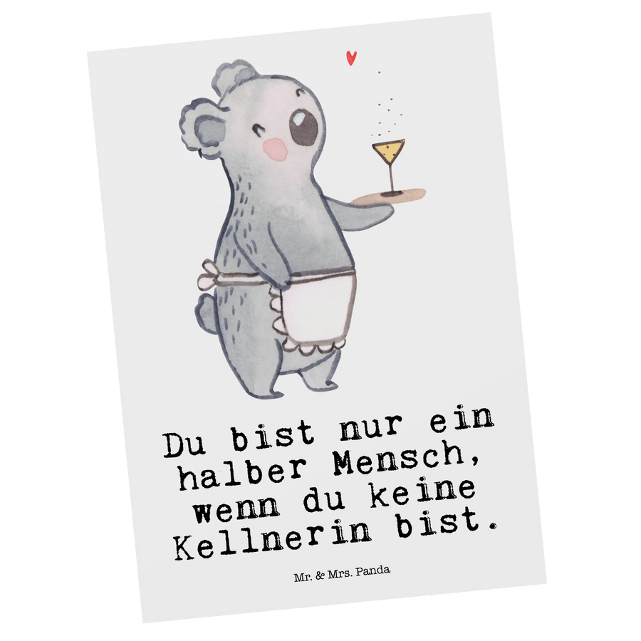 Postkarte Kellnerin mit Herz - mit Spruch - Weiß