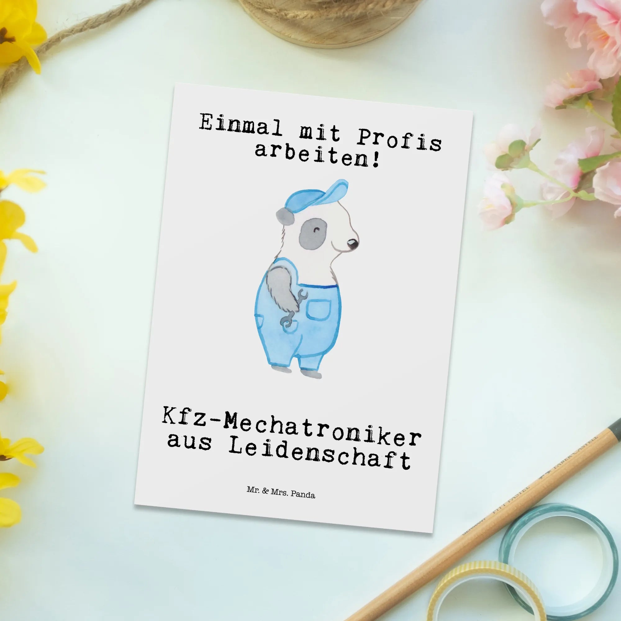 Postkarte Kfz-Mechatroniker aus Leidenschaft – Mr. & Mrs. Panda