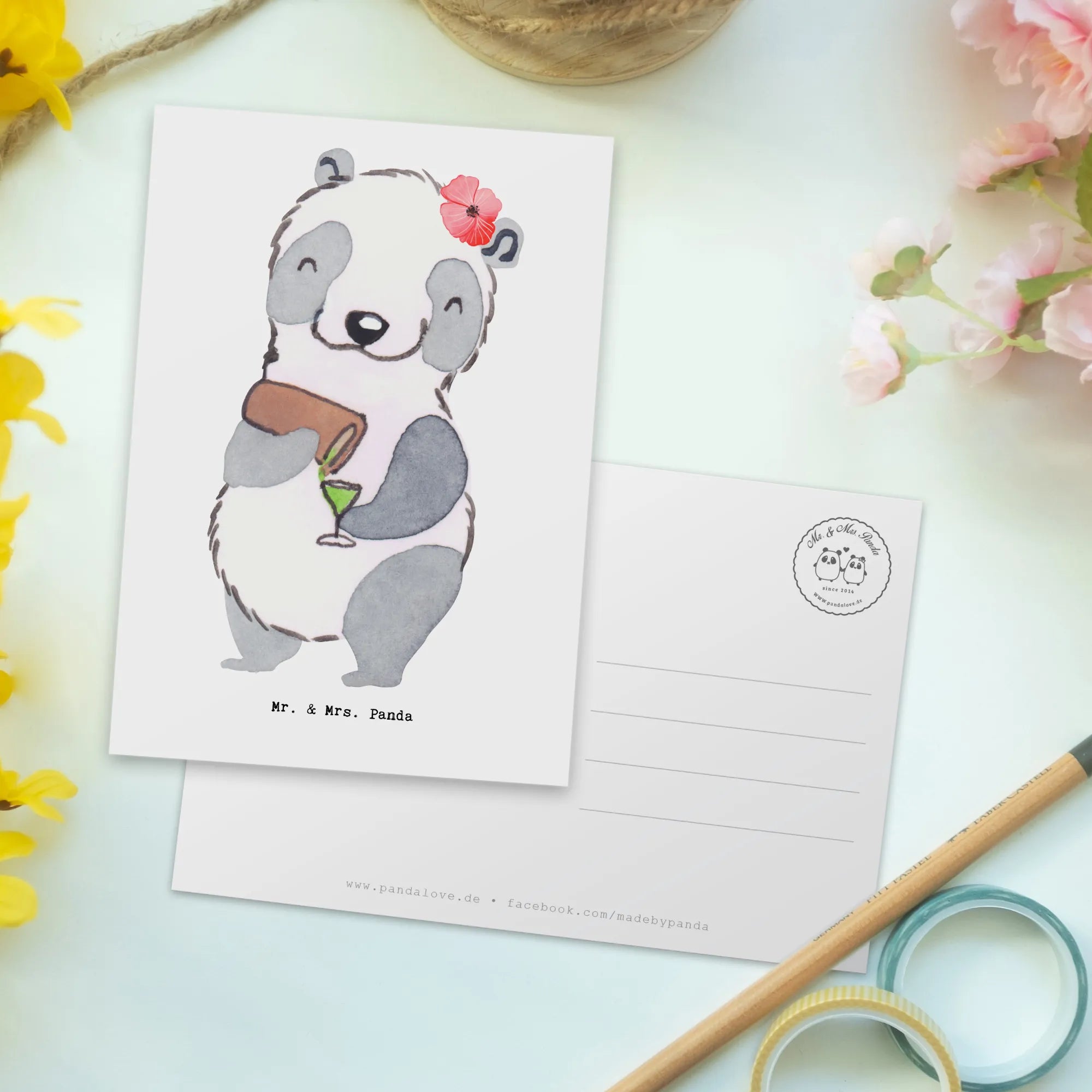 Postkarte „Kneipenwirtin mit Herz“ – aus der charmanten Berufe-Kollektion von Mr. & Mrs. Panda. Dieses liebevoll von Mrs. Panda handgezeichnete Aquarell zeigt unsere freundliche Panda-Kneipenwirtin mit einer Flasche in der Hand. Die Karte wird ohne aufgedruckten Spruch geliefert (Ohne Text), sodass Du Deinen ganz persönlichen Gruß schreiben kannst. 🎨